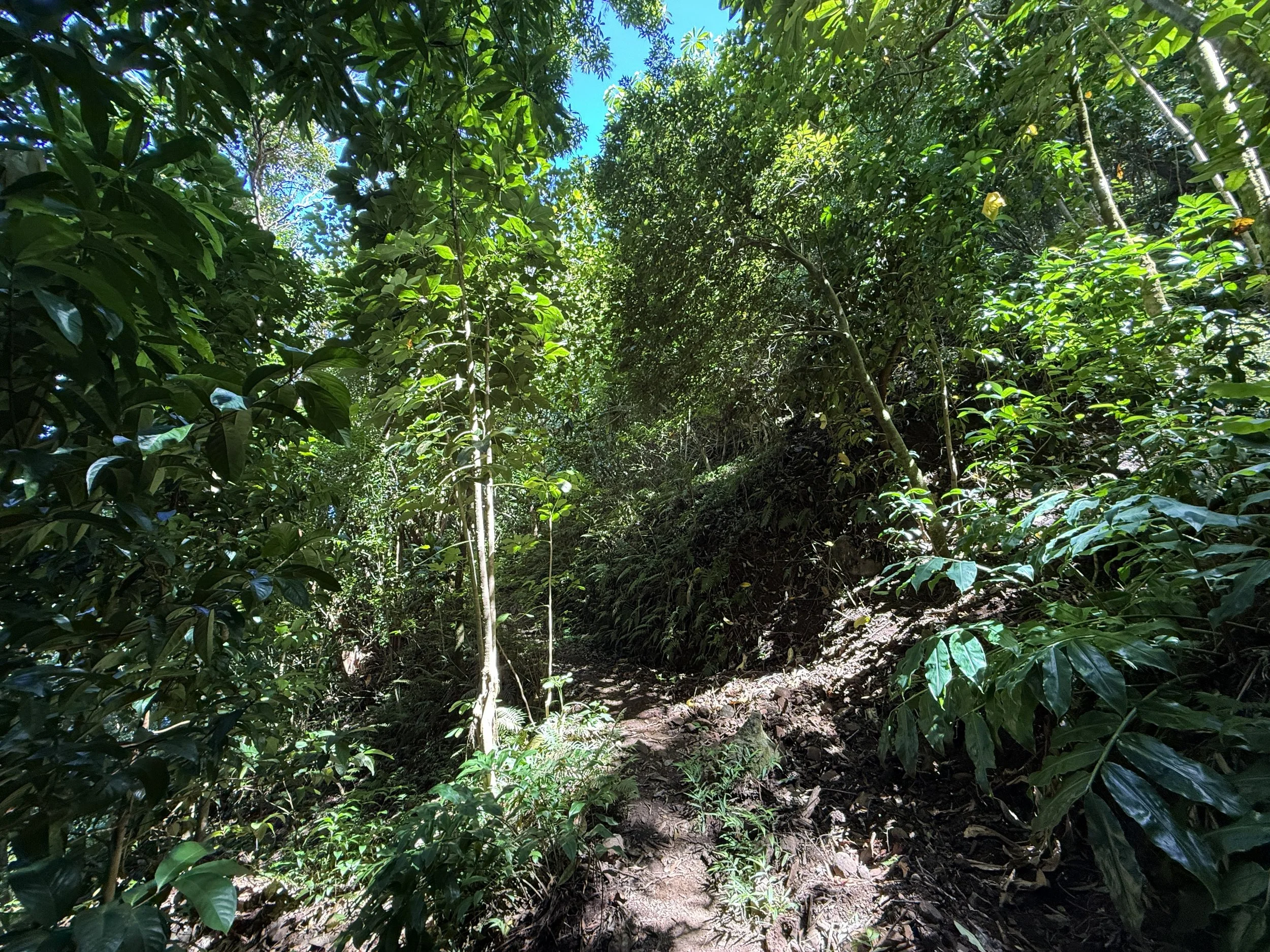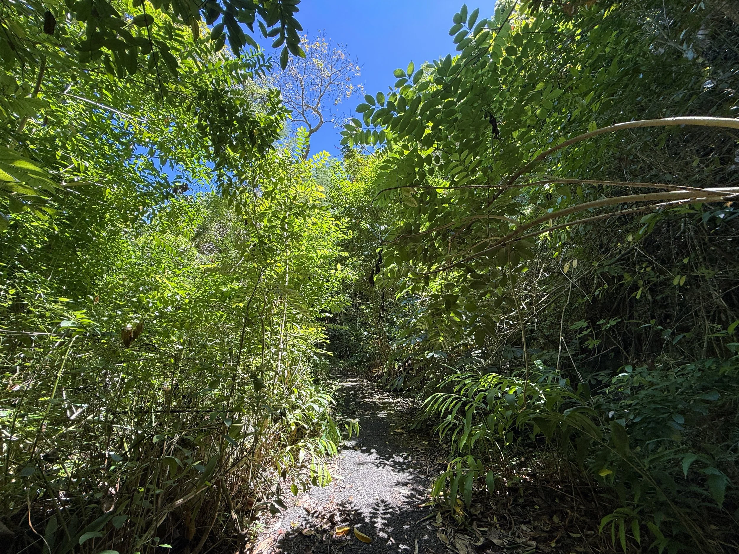 Initially, the Maunawili Falls Trail will descend a short but steep hill to the hidden road below.