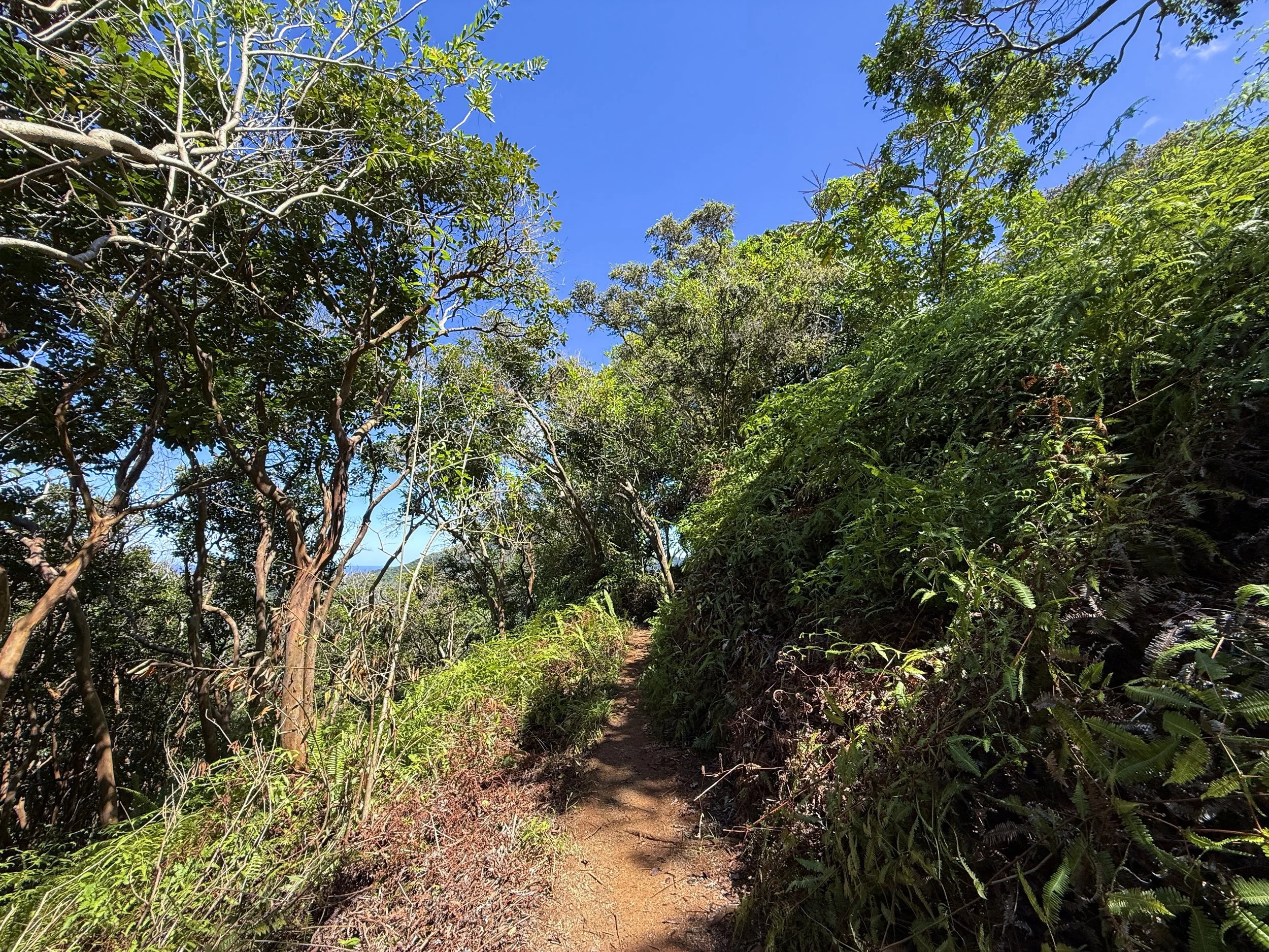 However, this section—now seen as a connector trail—is all but forgotten, as the original Demonstration Trailhead, which once began at the Nuʻuanu Pali Lookout, was moved to the hairpin turn off the Pali Highway, leaving this section in the condition we see today.