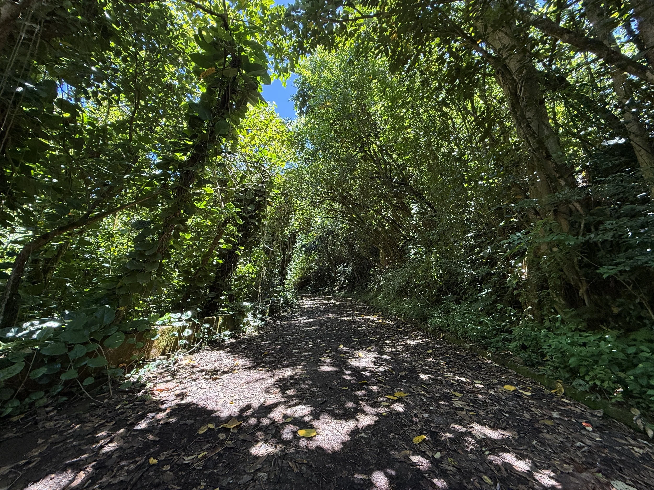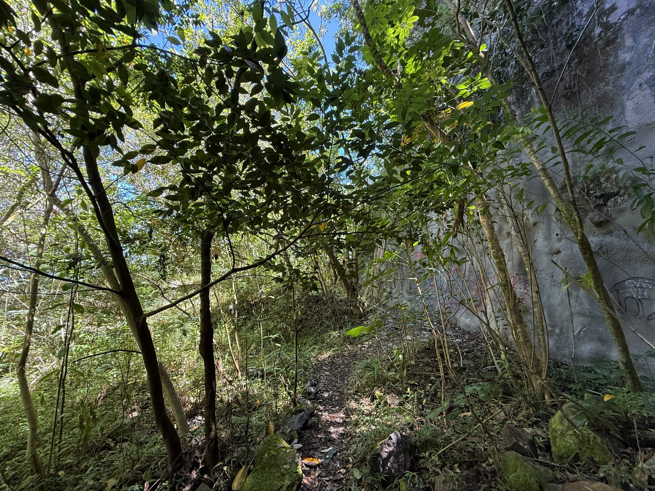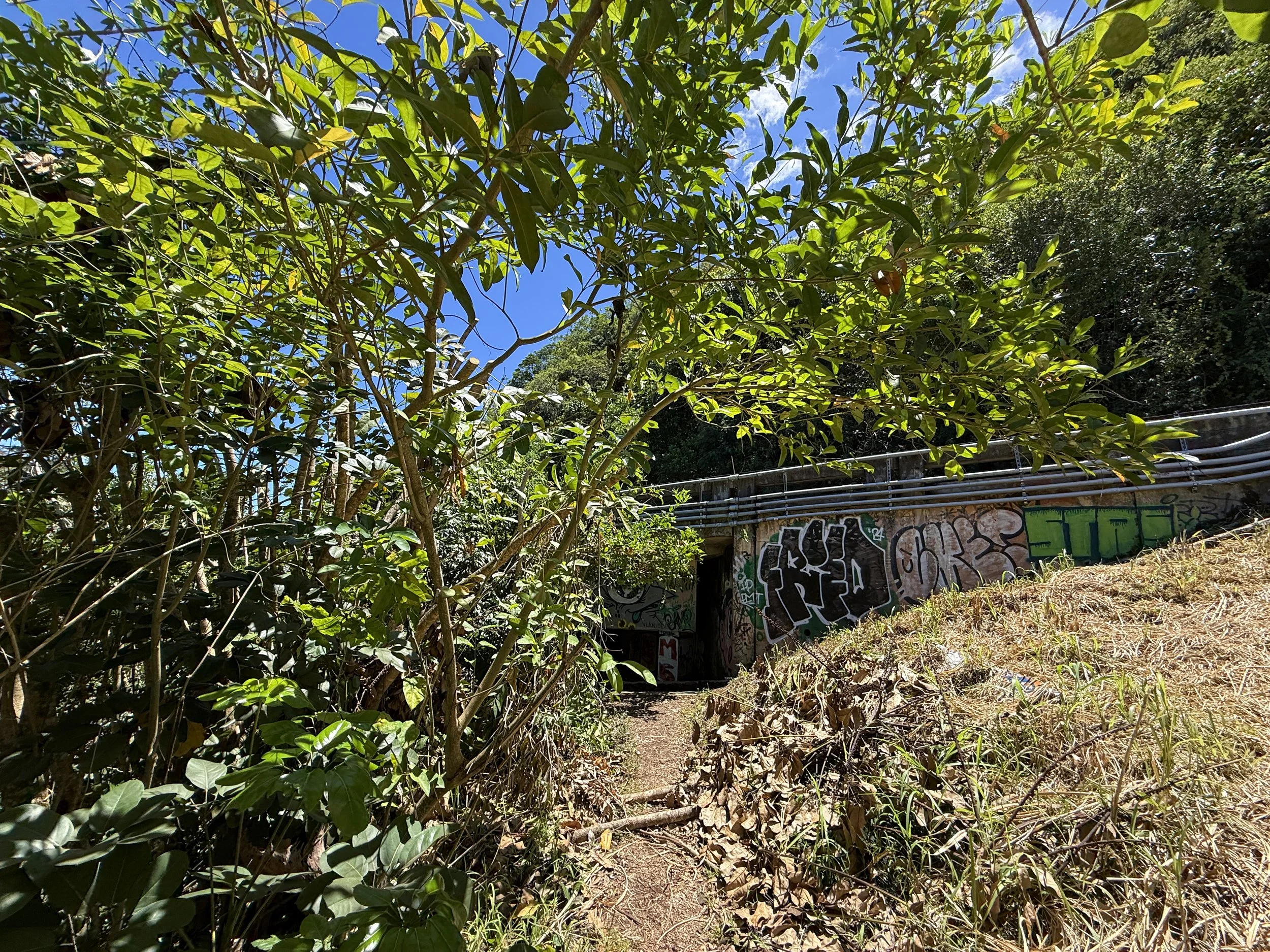 As the Old Pali Road approaches the current Pali Highway, it passes beneath the highway for a short stretch, before reaching one of the most unique parts of the hike shortly thereafter.