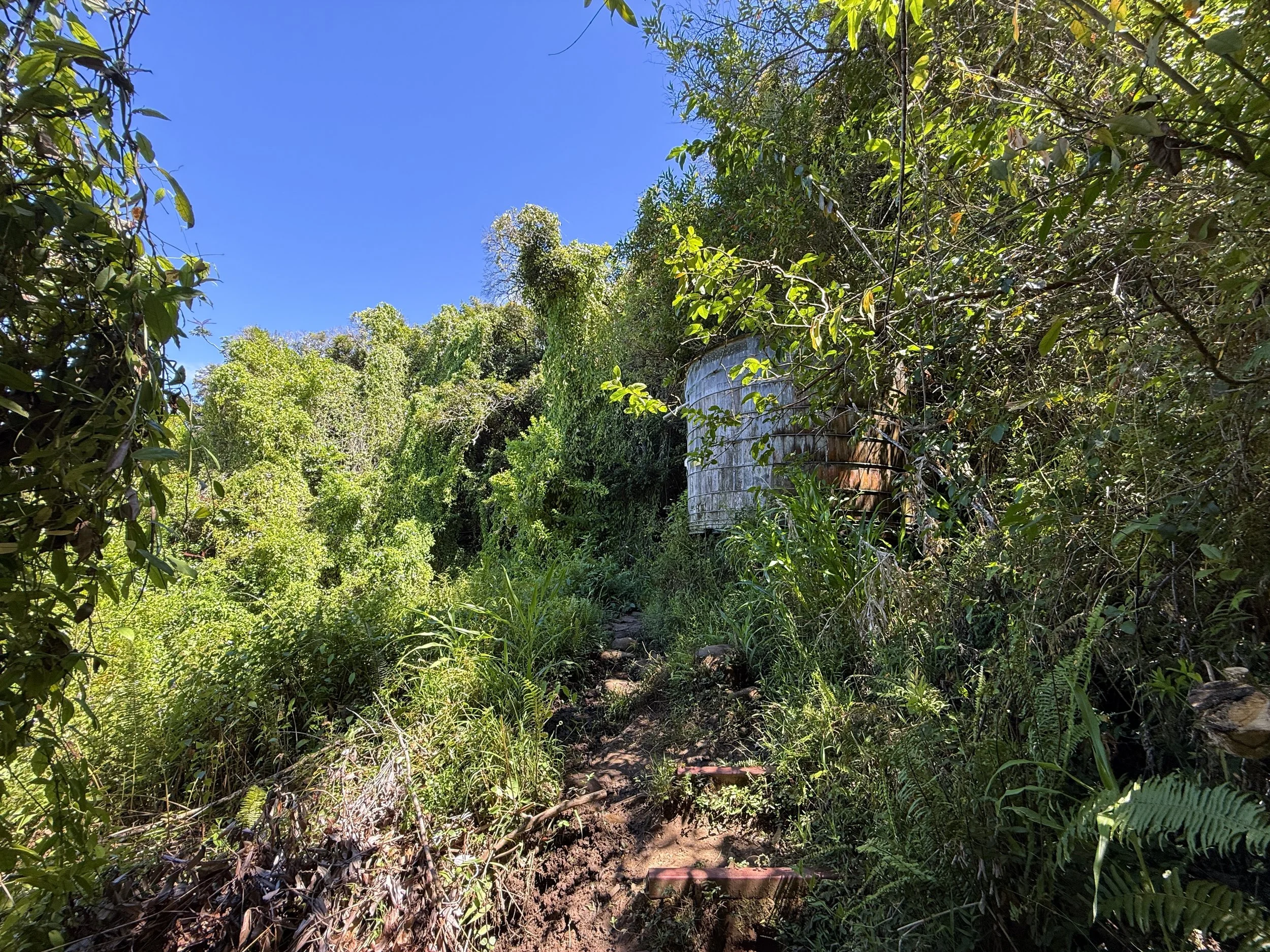 The seemingly random water tank on the Maunawili Demonstration Trail is an old rainwater collection tank for Saint Stephen Diocesan Center, just down the hill.