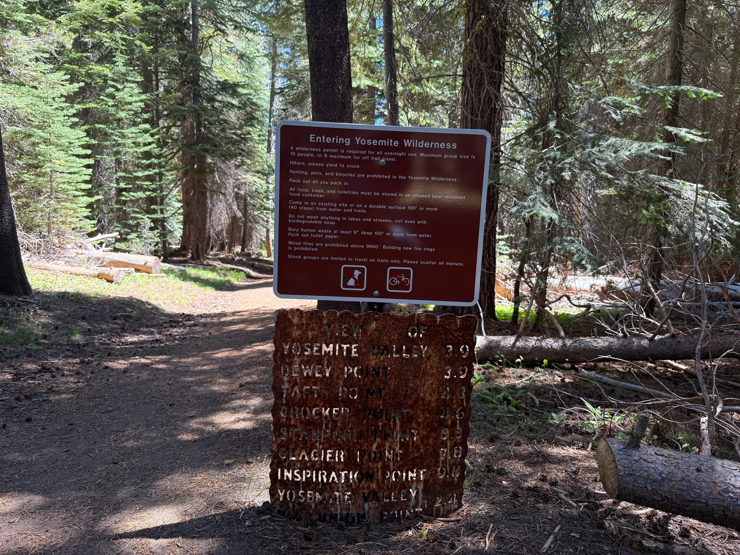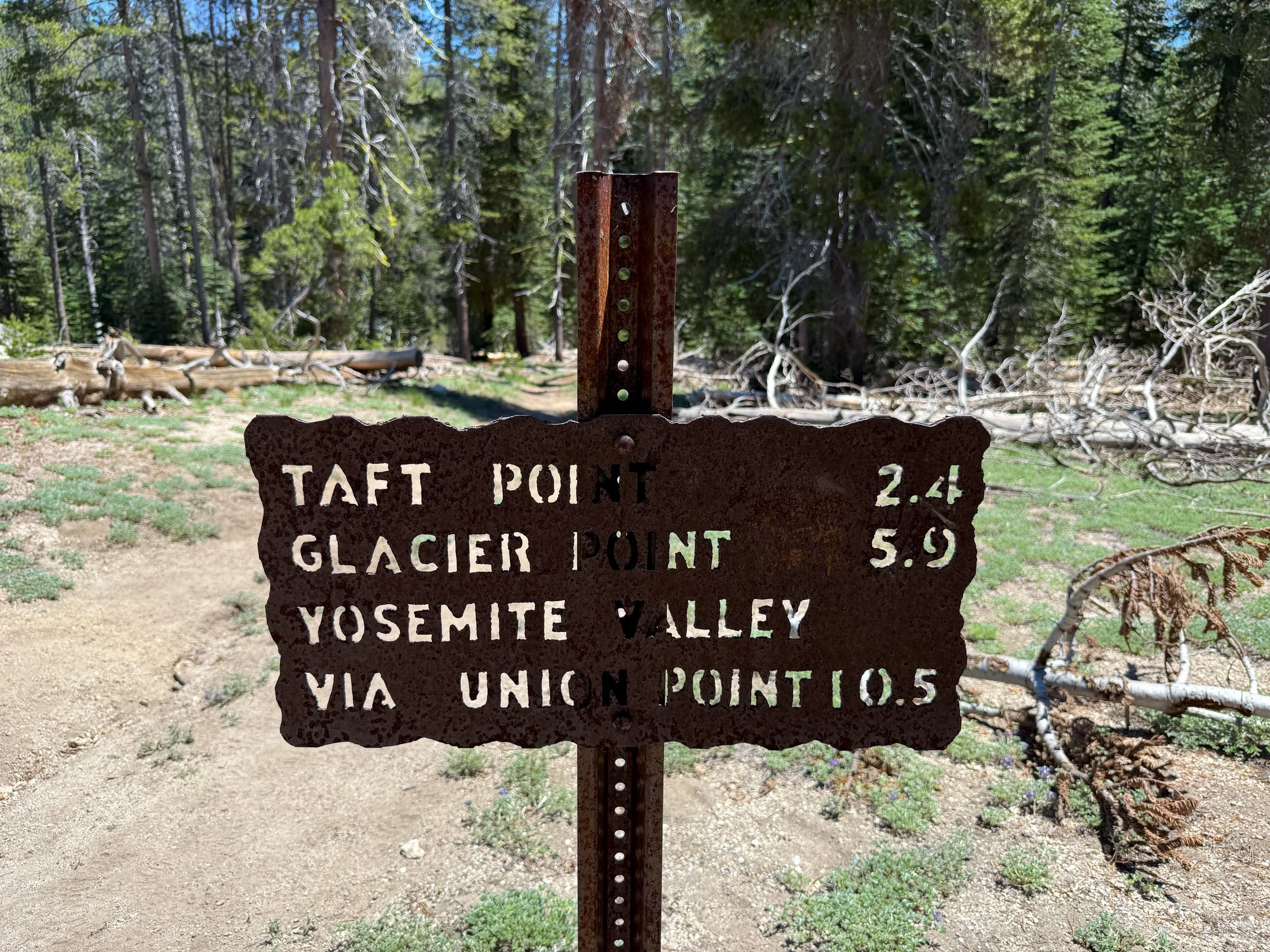 After less than 0.1 miles (0.2 km), the McGurk Meadow Trail meets the Westfall Meadows junction that heads south on the other side of Glacier Point Road.