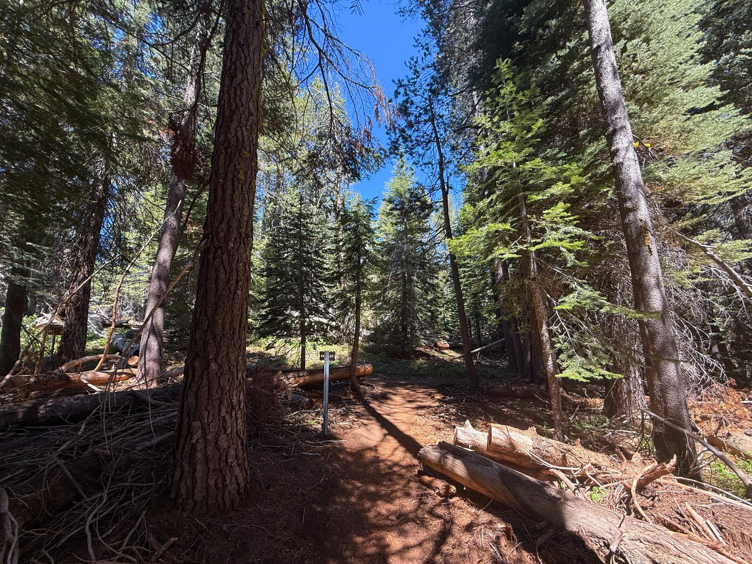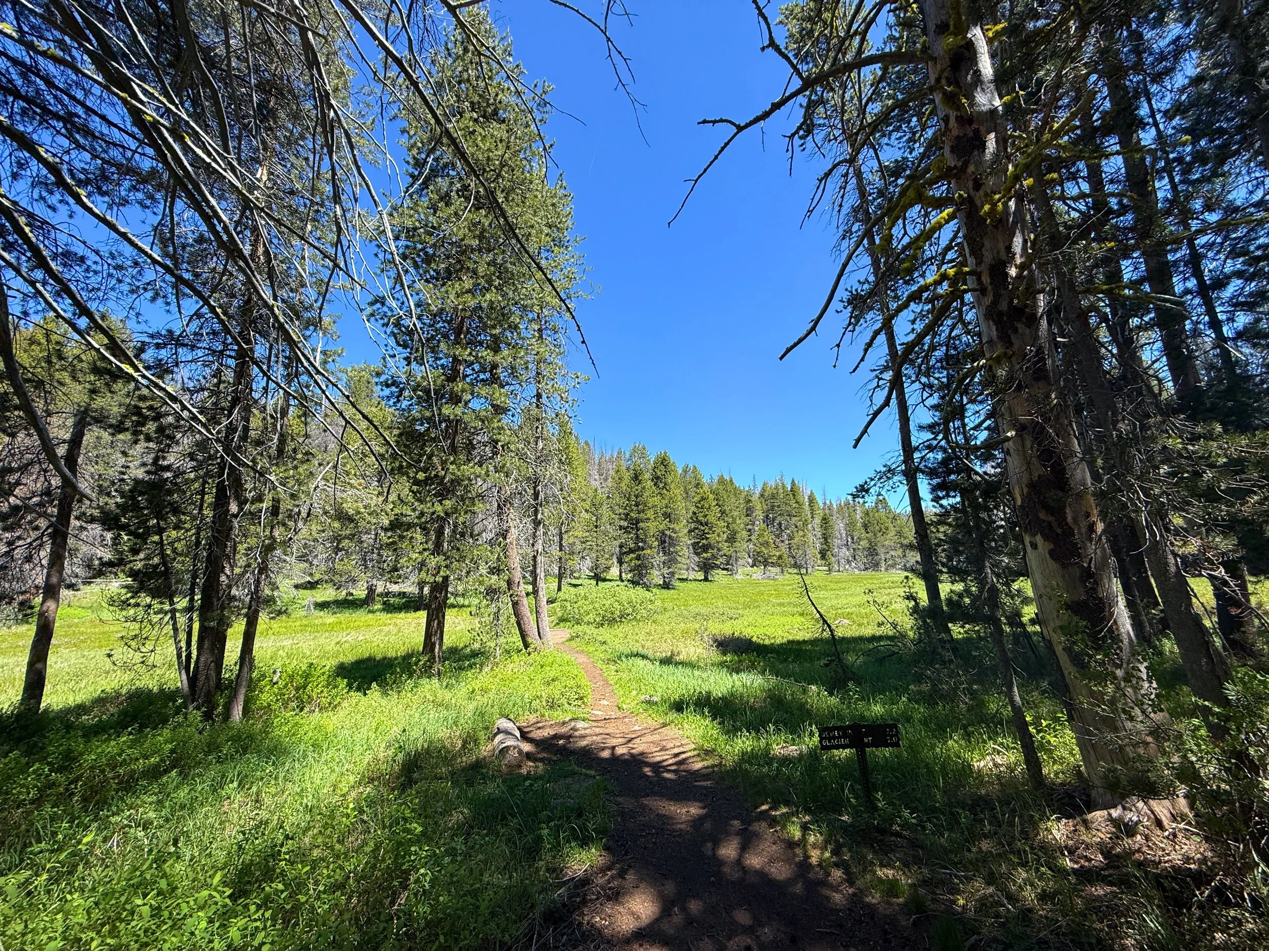 That said, go right at this split to continue toward the historic cabin and McGurk Meadow shortly thereafter.
