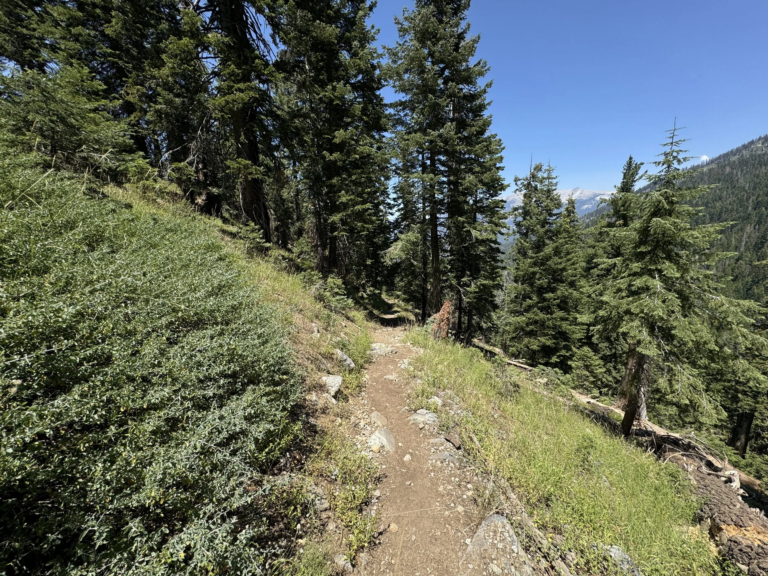 When the Timber Gap Trail begins to descend through a series of switchbacks on the right side of the ridge, the trail is getting close Cliff Creek and the start of the Mineral King Loop.