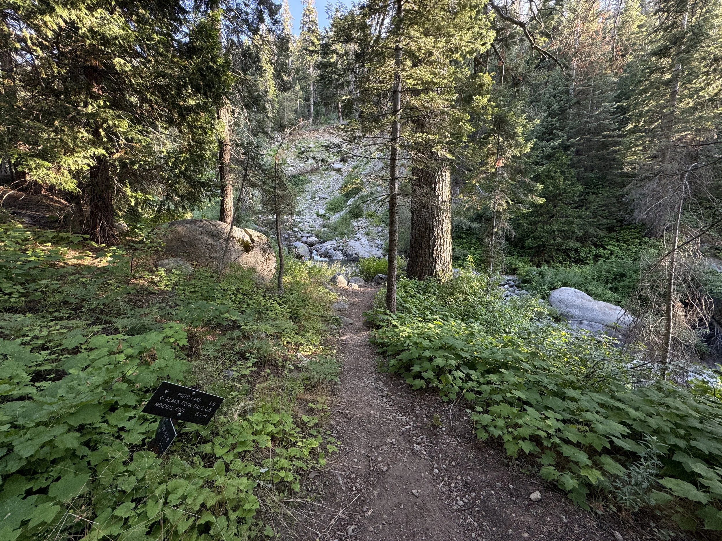 This three-way split is where the Cliff Creek, Middle Fork, and Bearpaw Meadow Trails meet for the first time, with the fastest route up to Bearpaw Meadow and the High Sierra Trail being to the right.