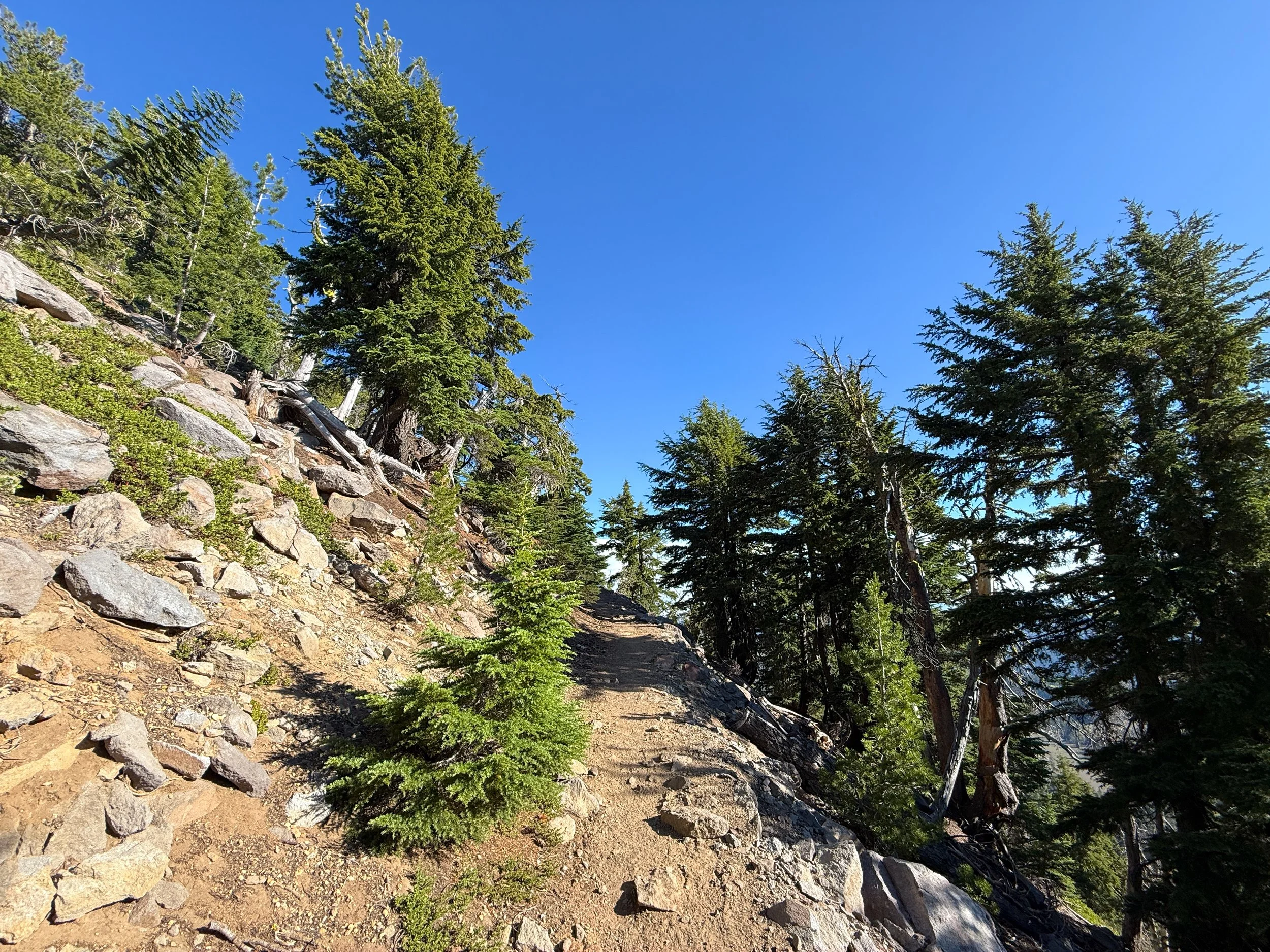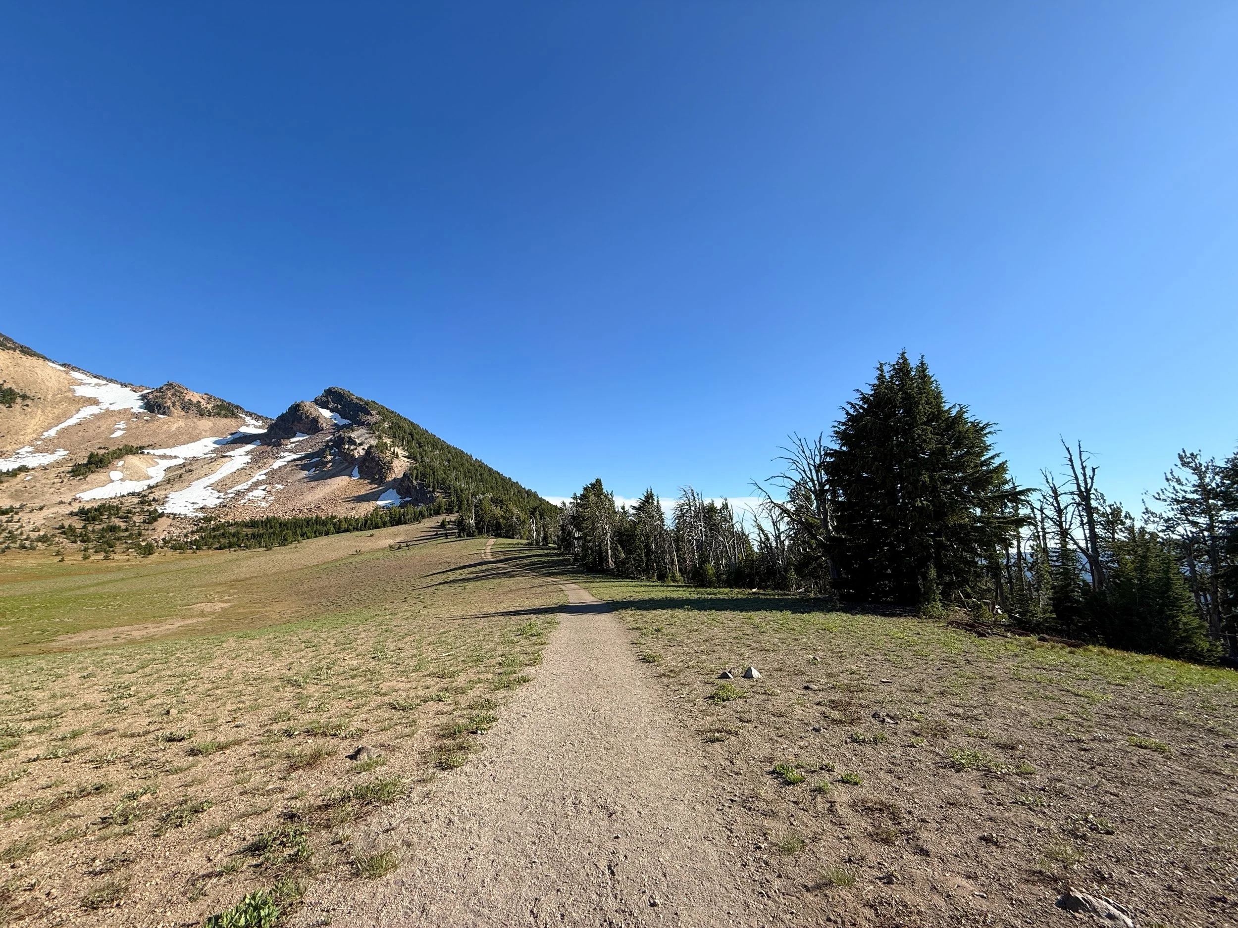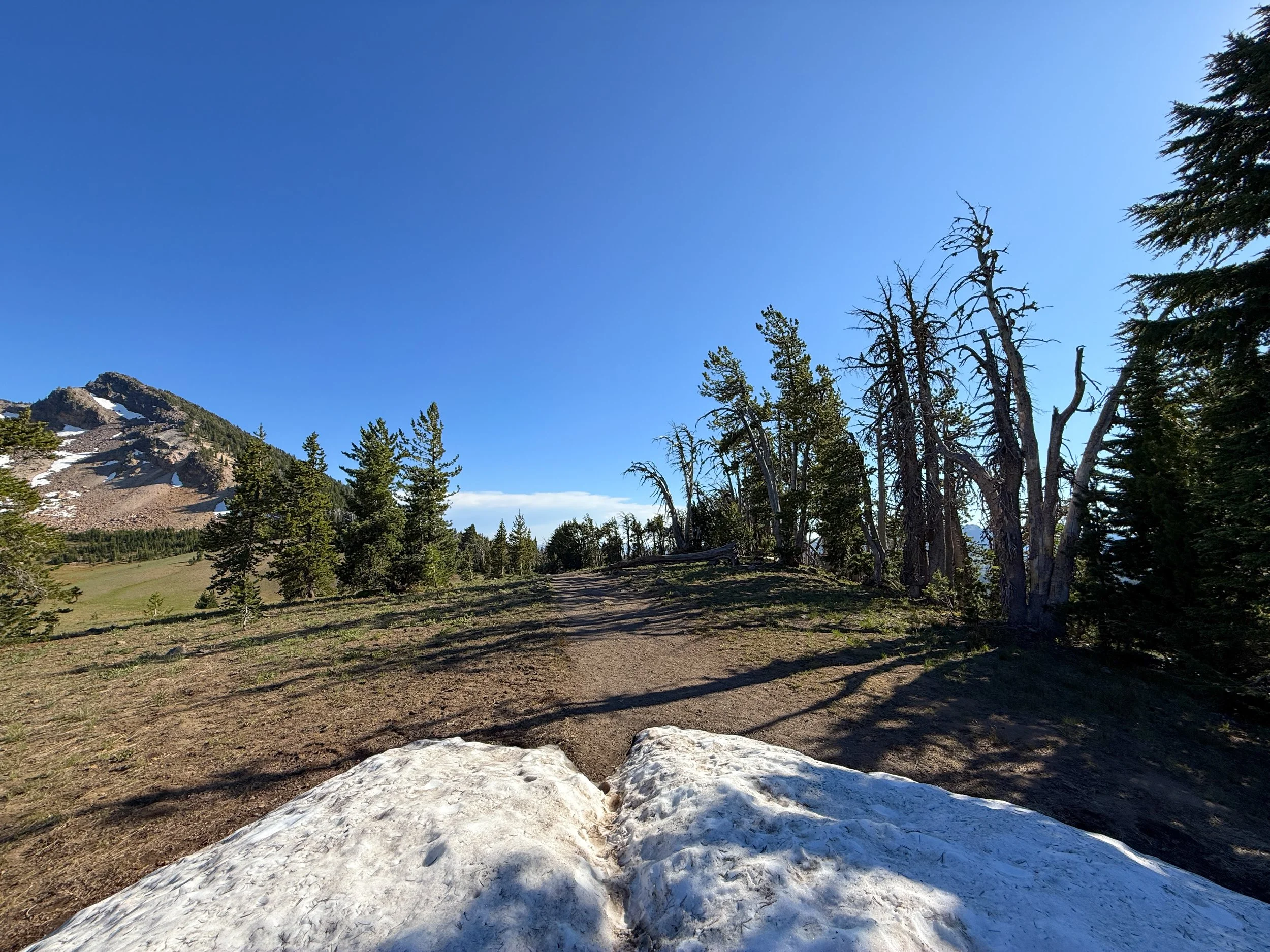 In addition to poles, a hooded sun shirt can also be very useful, since the shade from the Lodgepole-Hemlock forest only does so much at these higher elevations.