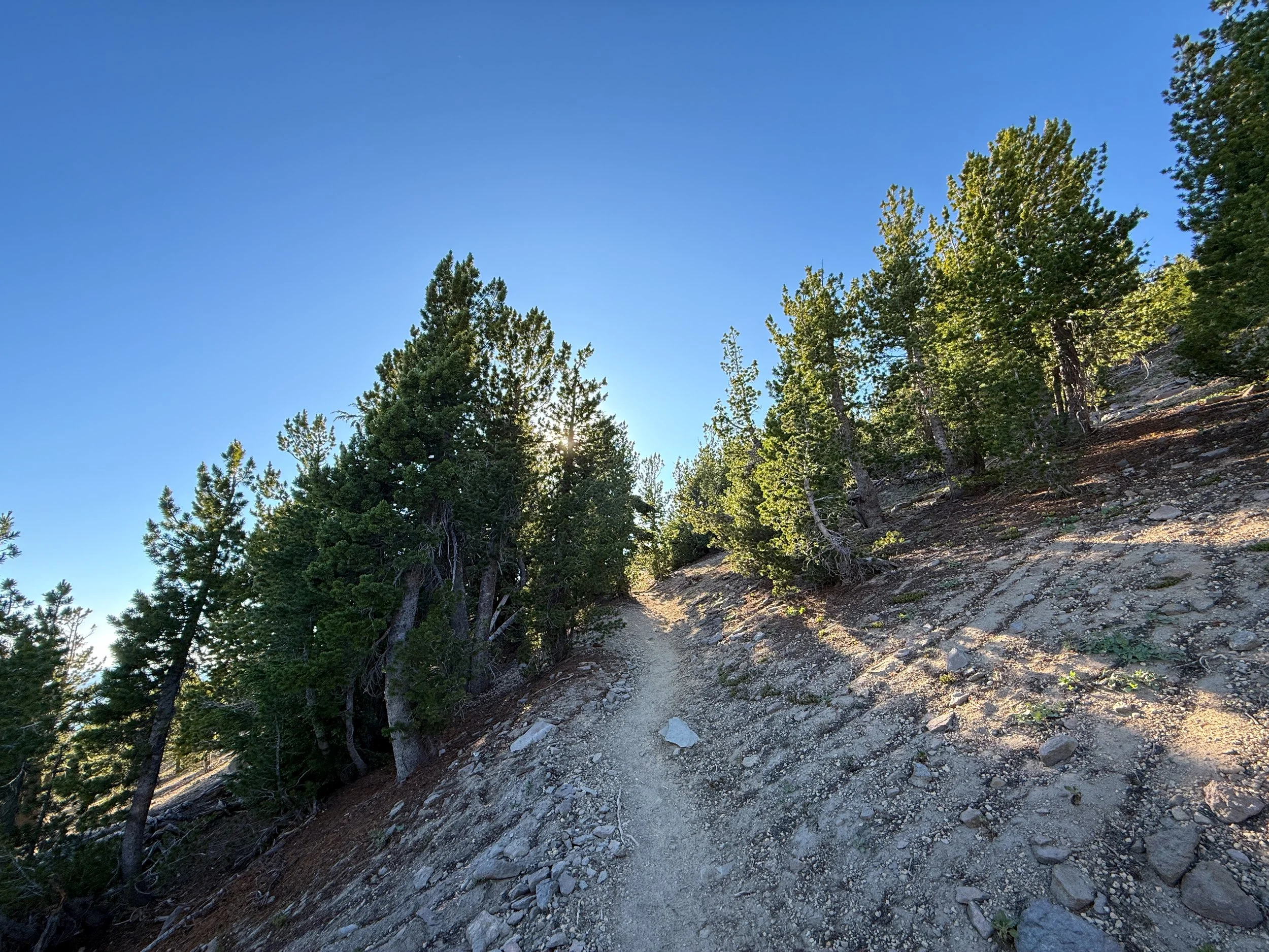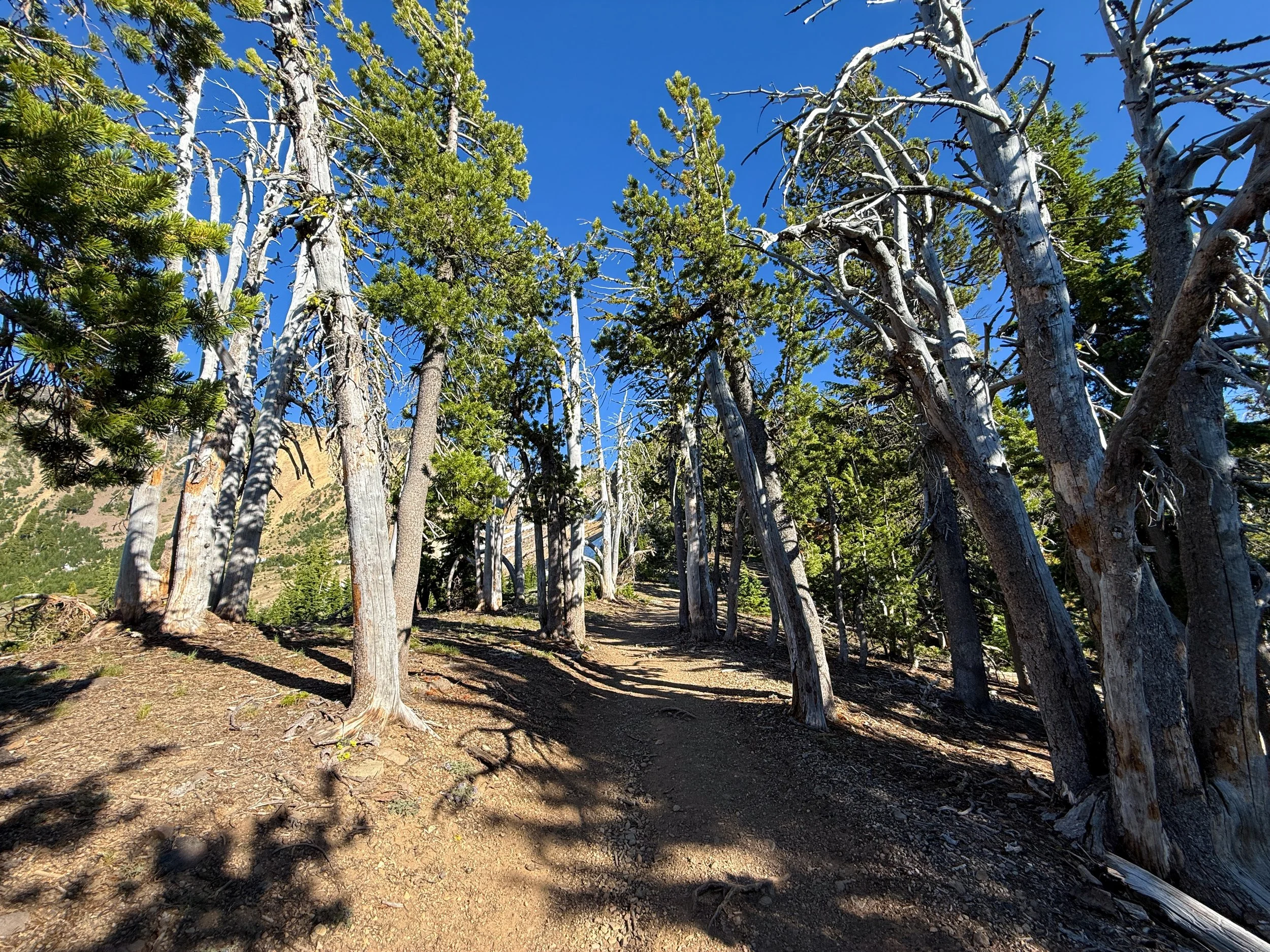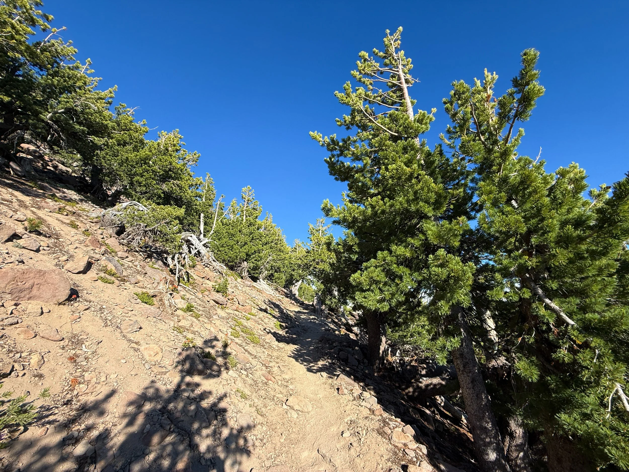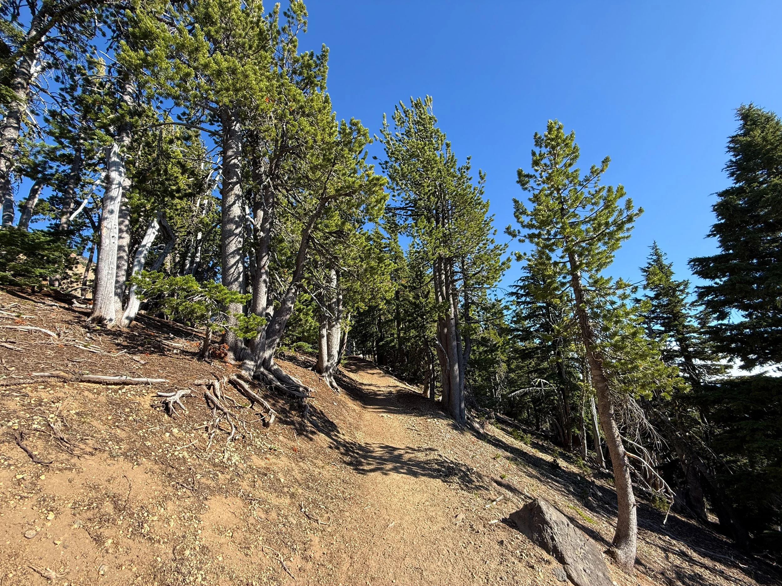 In addition to poles, a hooded sun shirt can also be very useful, since the shade from the Lodgepole-Hemlock forest only does so much at these higher elevations.
