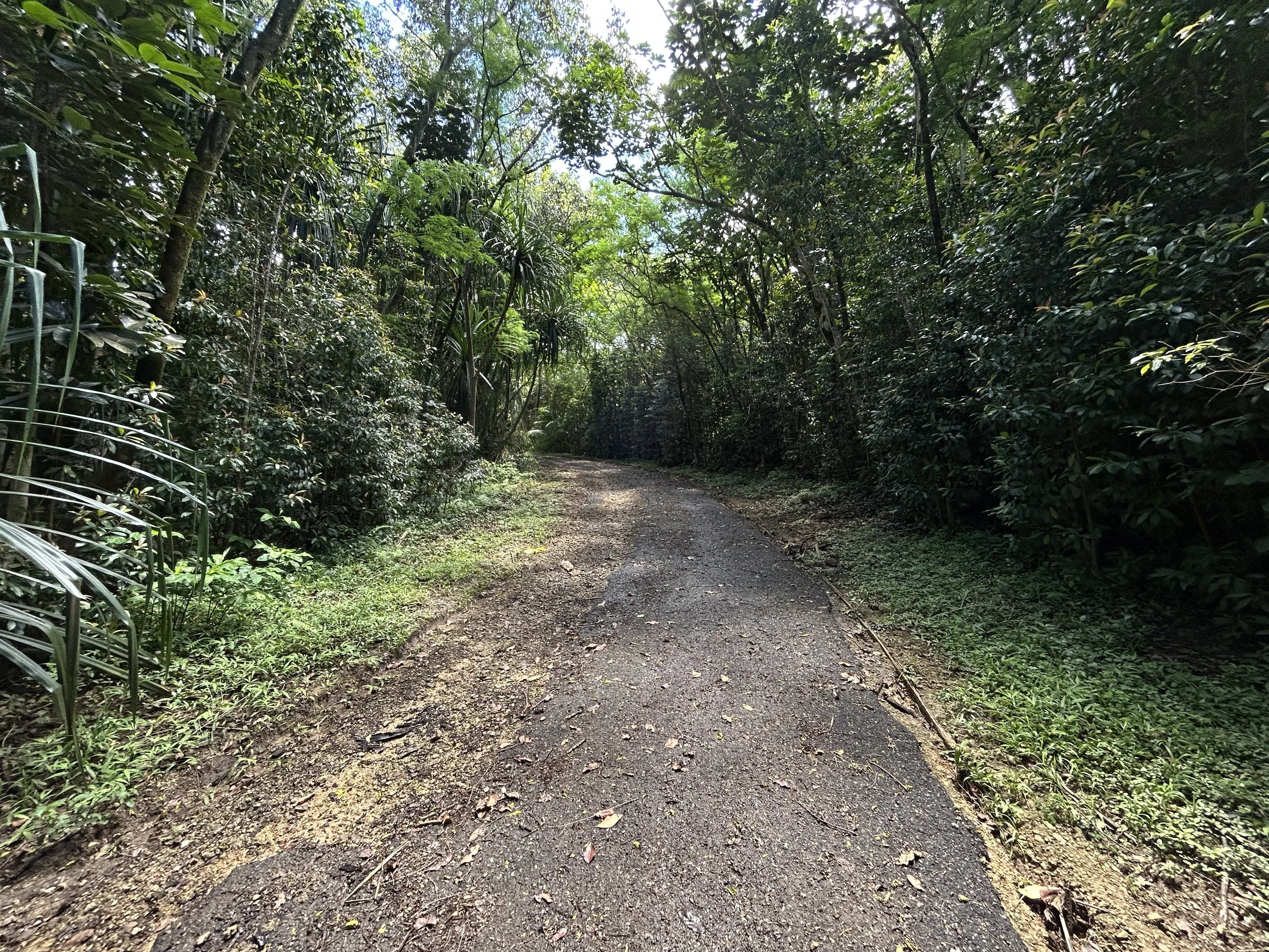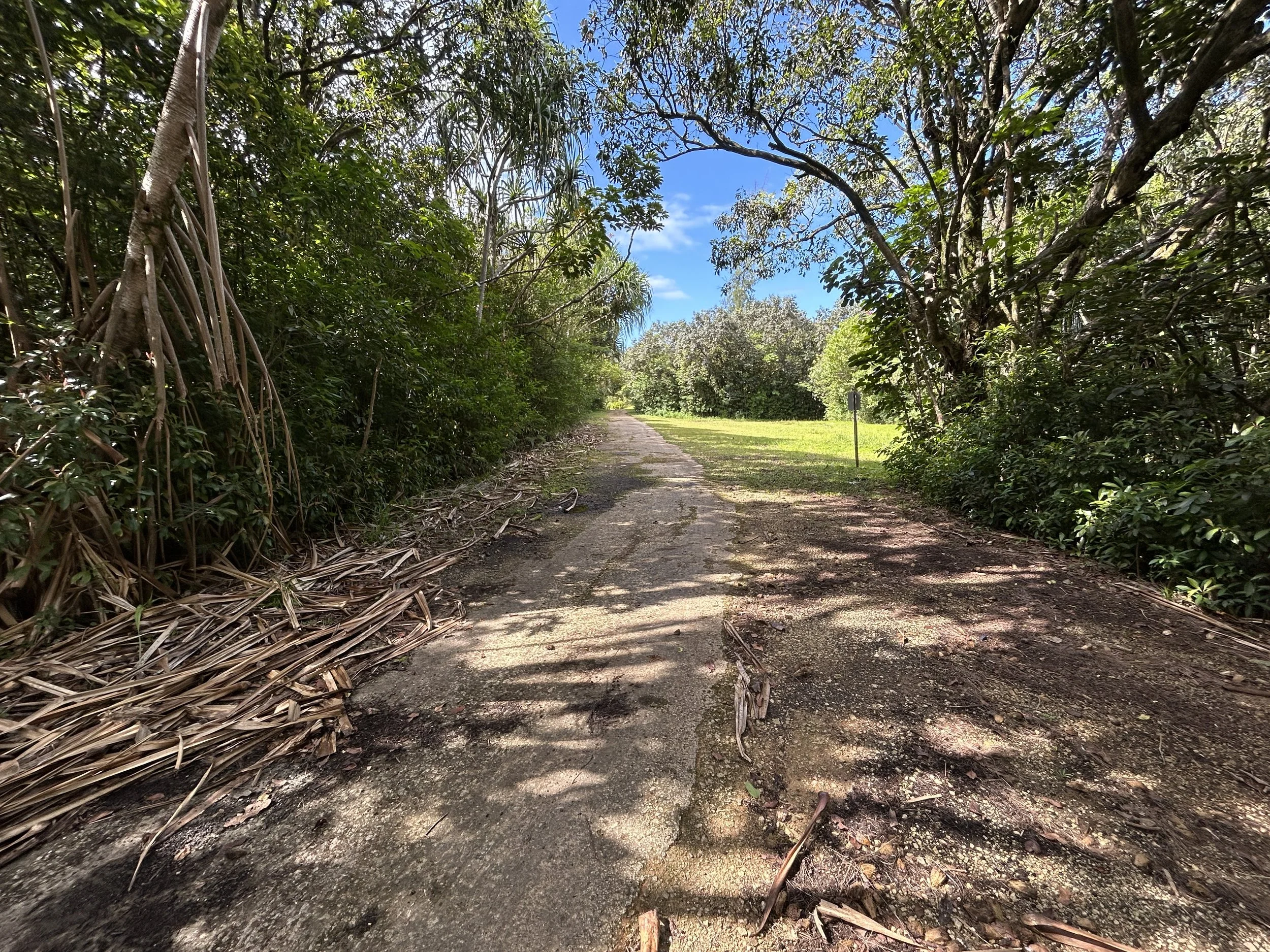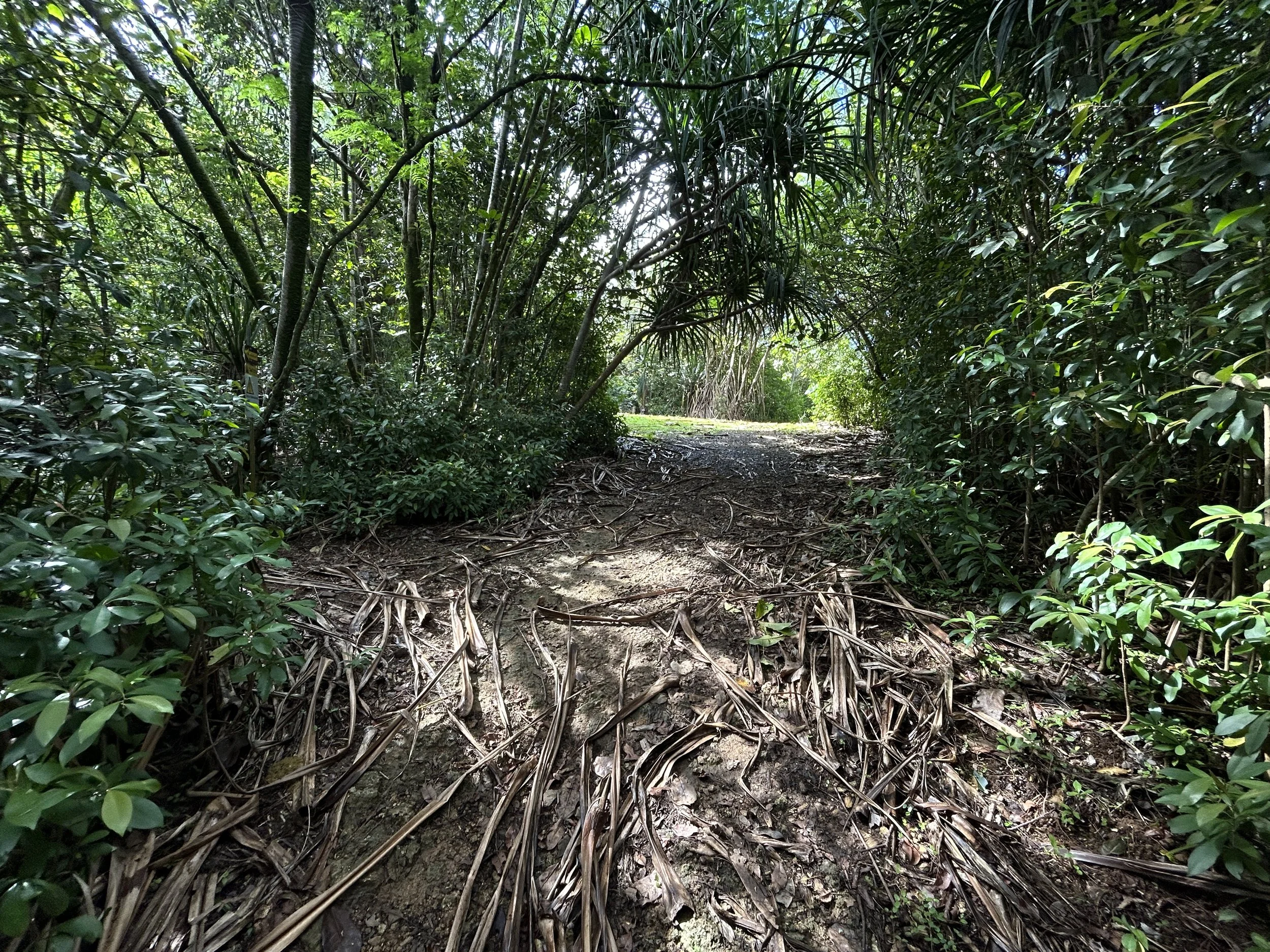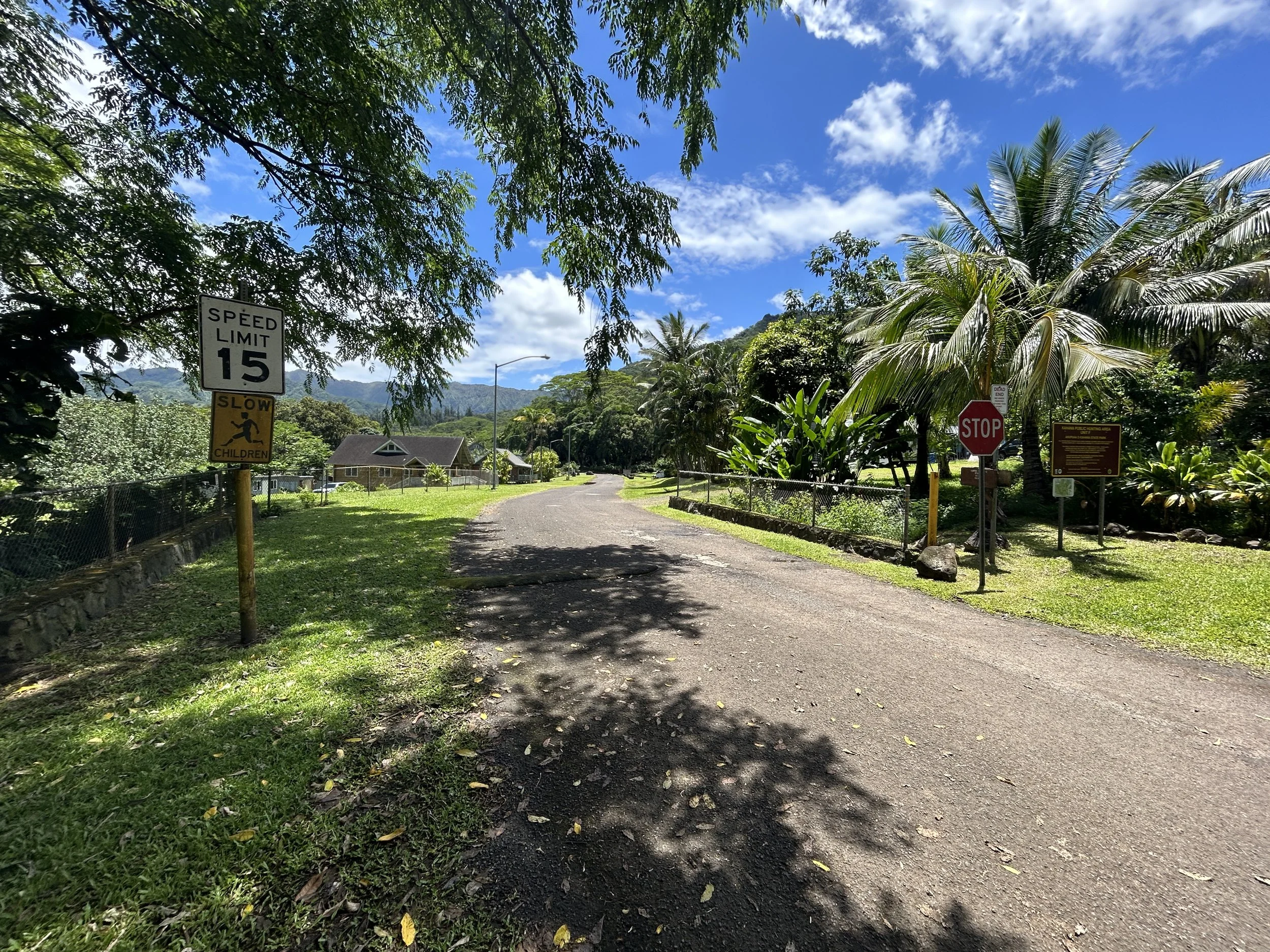 From the parking area, the Nākoa Trail doesn’t begin for another 0.6 miles (1.0 km) up Kahana Valley Road.