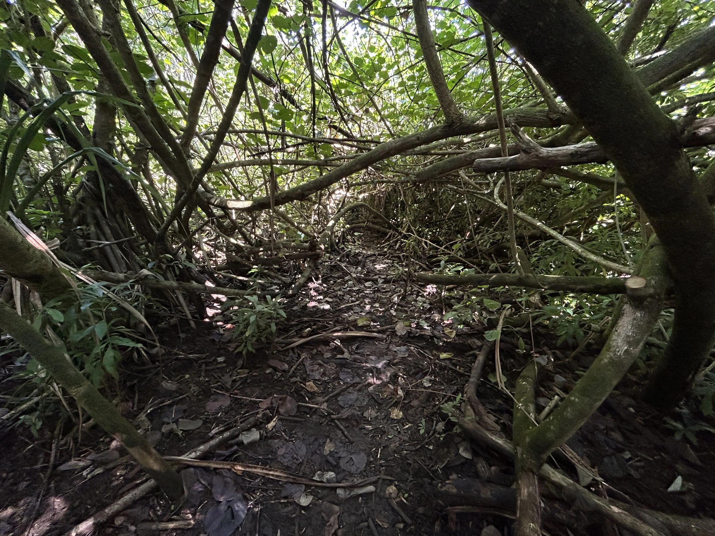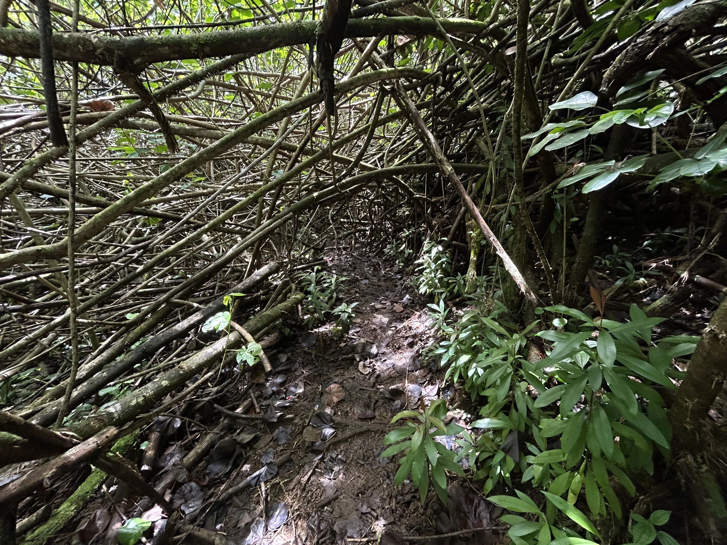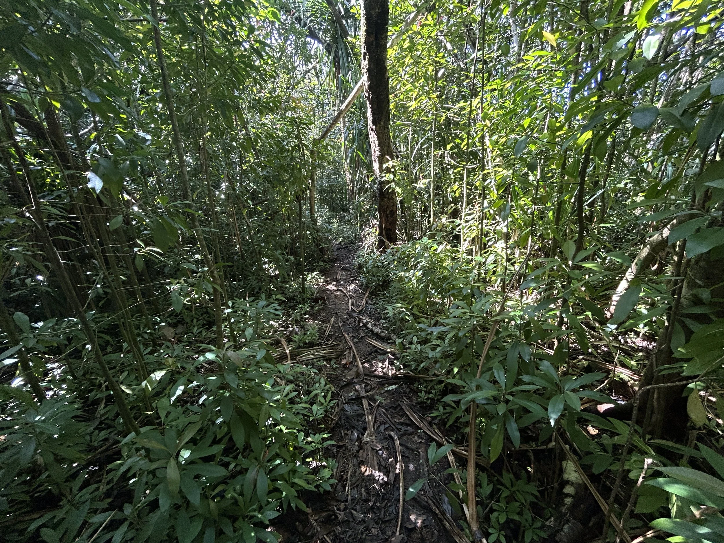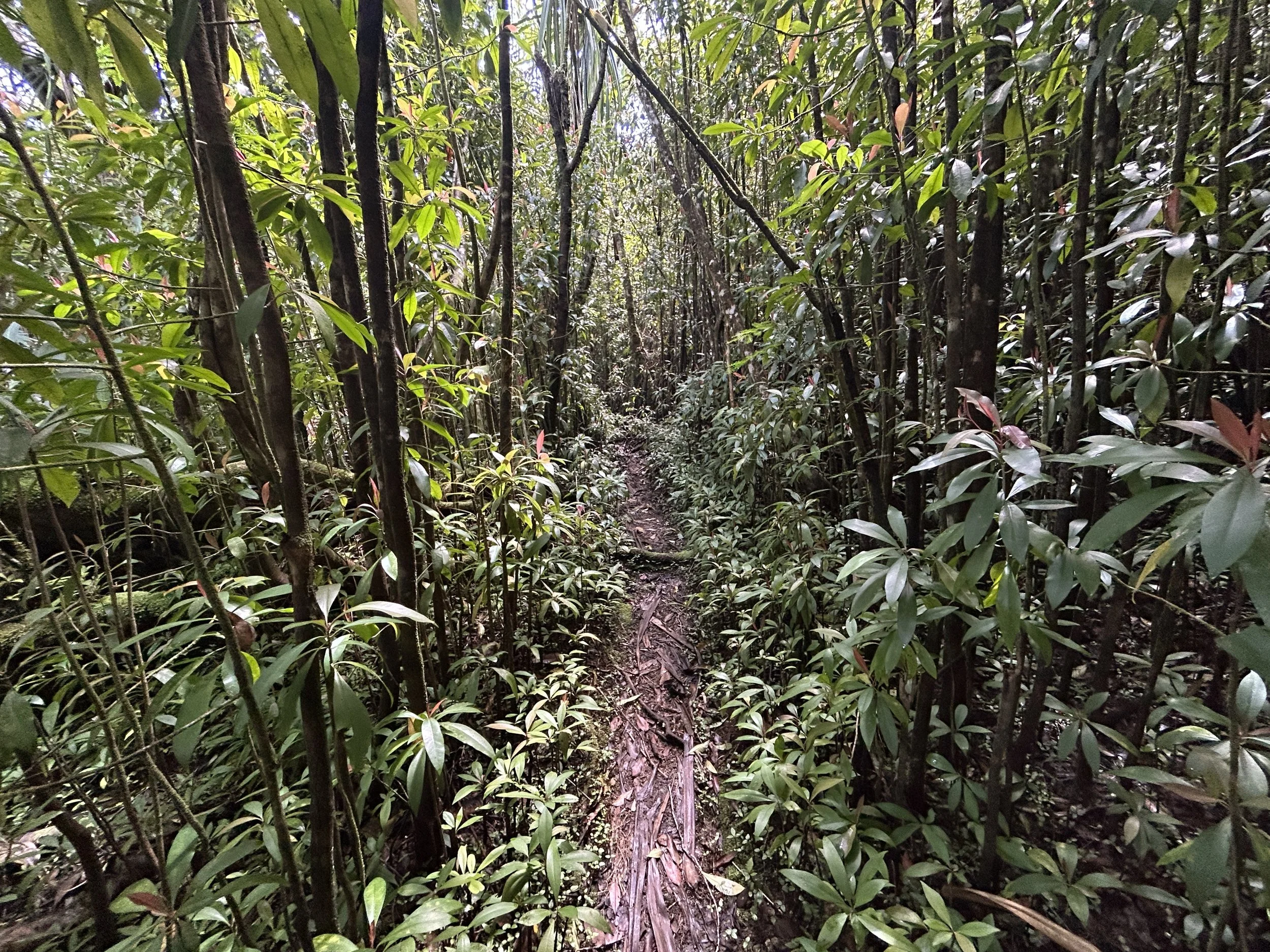 In certain sections, the Nākoa Trail can be very muddy because Kahana Valley receives so much rain.