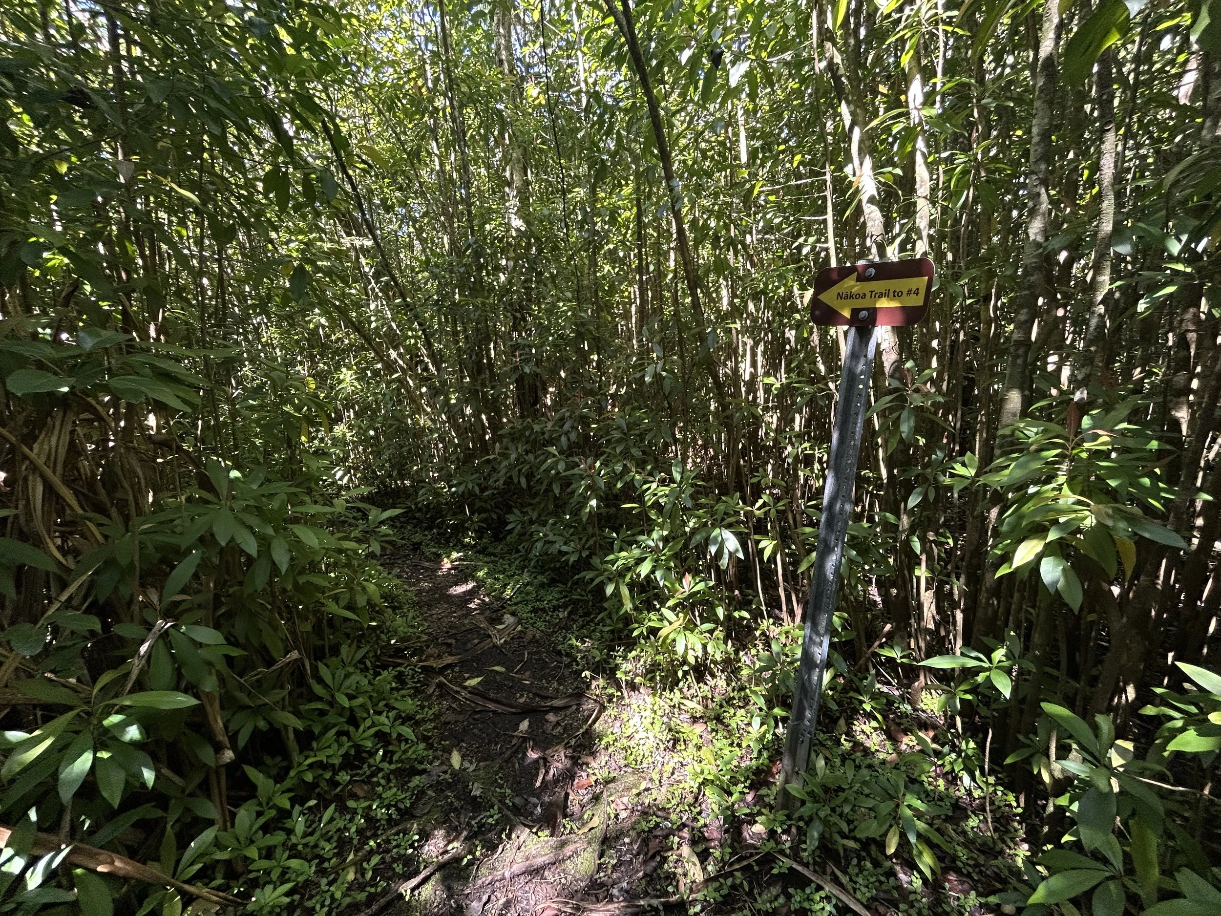 Back at the four-way intersection, I continued on the easier southern half of the Nākoa Trail.