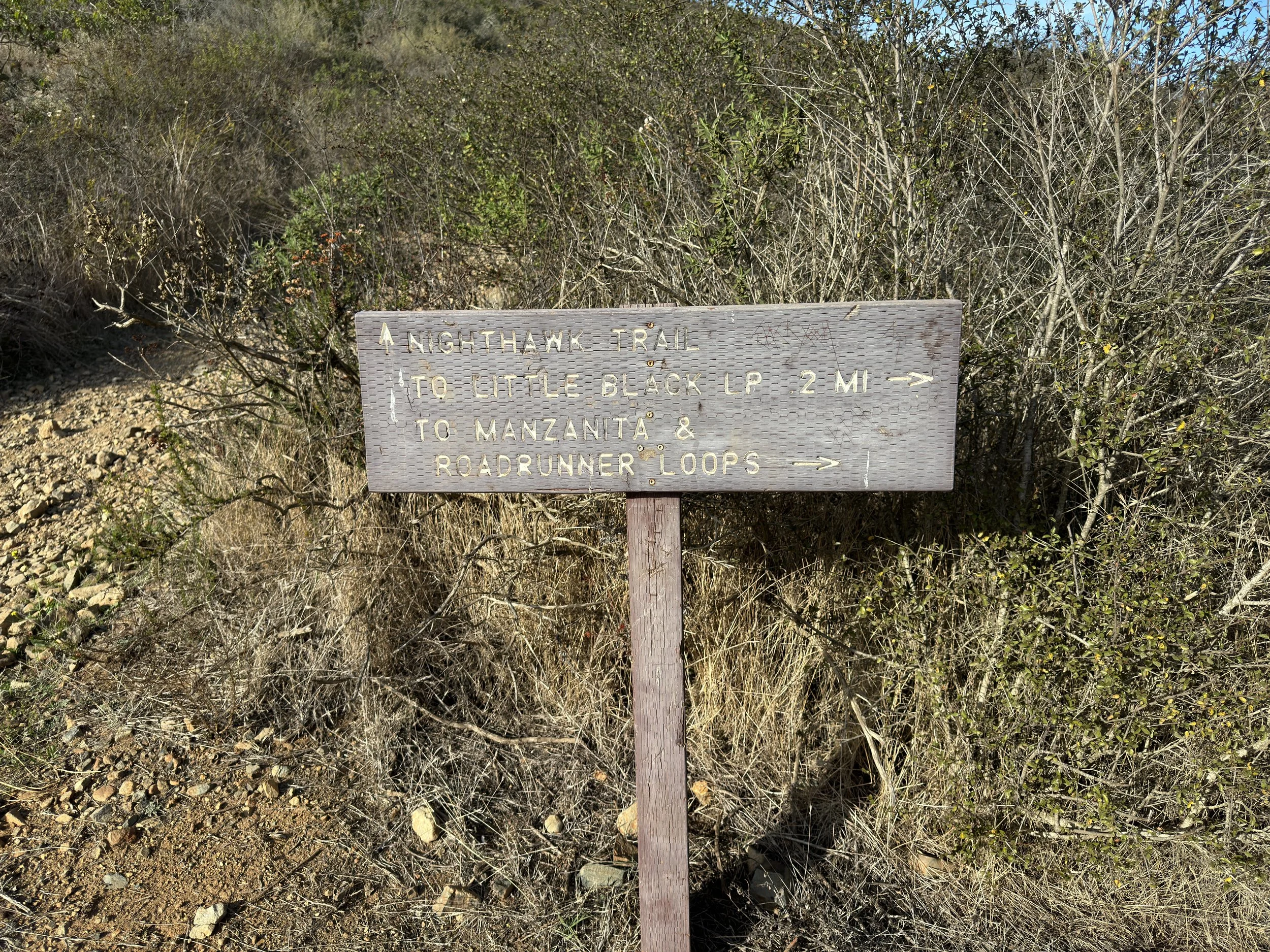 Next, the Nighthawk Trail branches with the Little Black and Roadrunner Loop Trails.