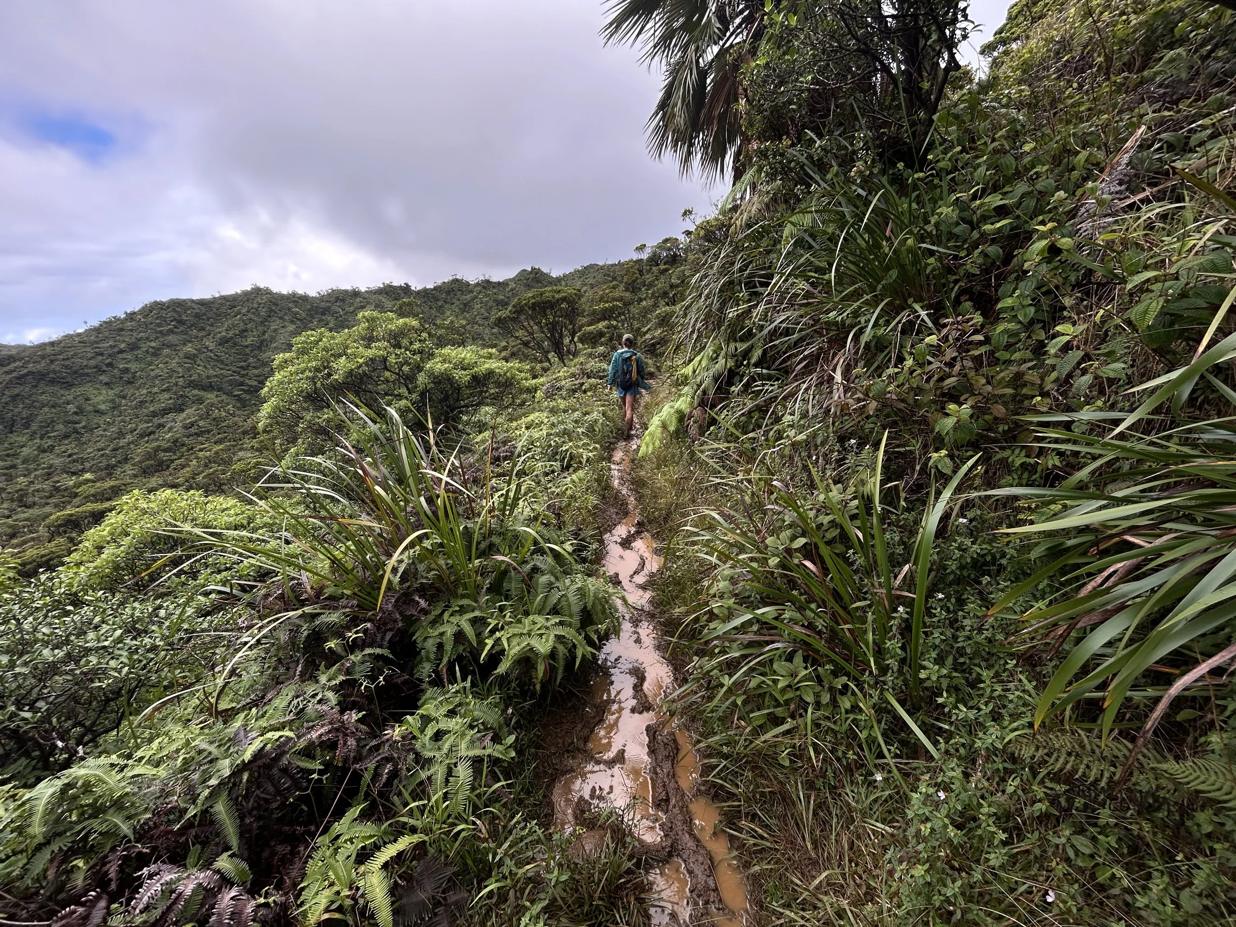 I say this because to the north, the next best trail down is Papali Ridge to the Maʻakua Ridge Trail in Hauʻula, which is quite a hike away—especially considering the sections immediately north of Poamoho are very slow going.
