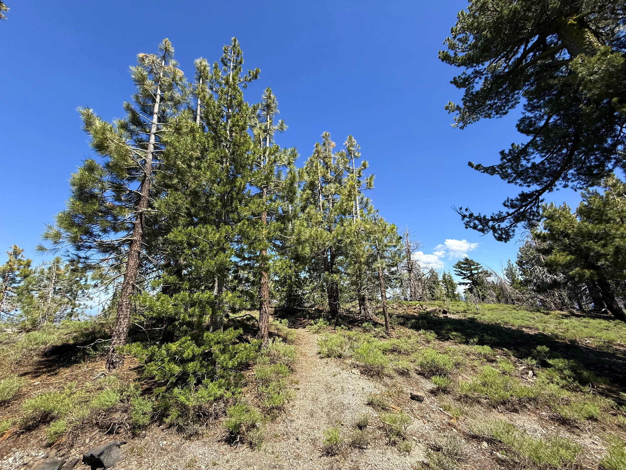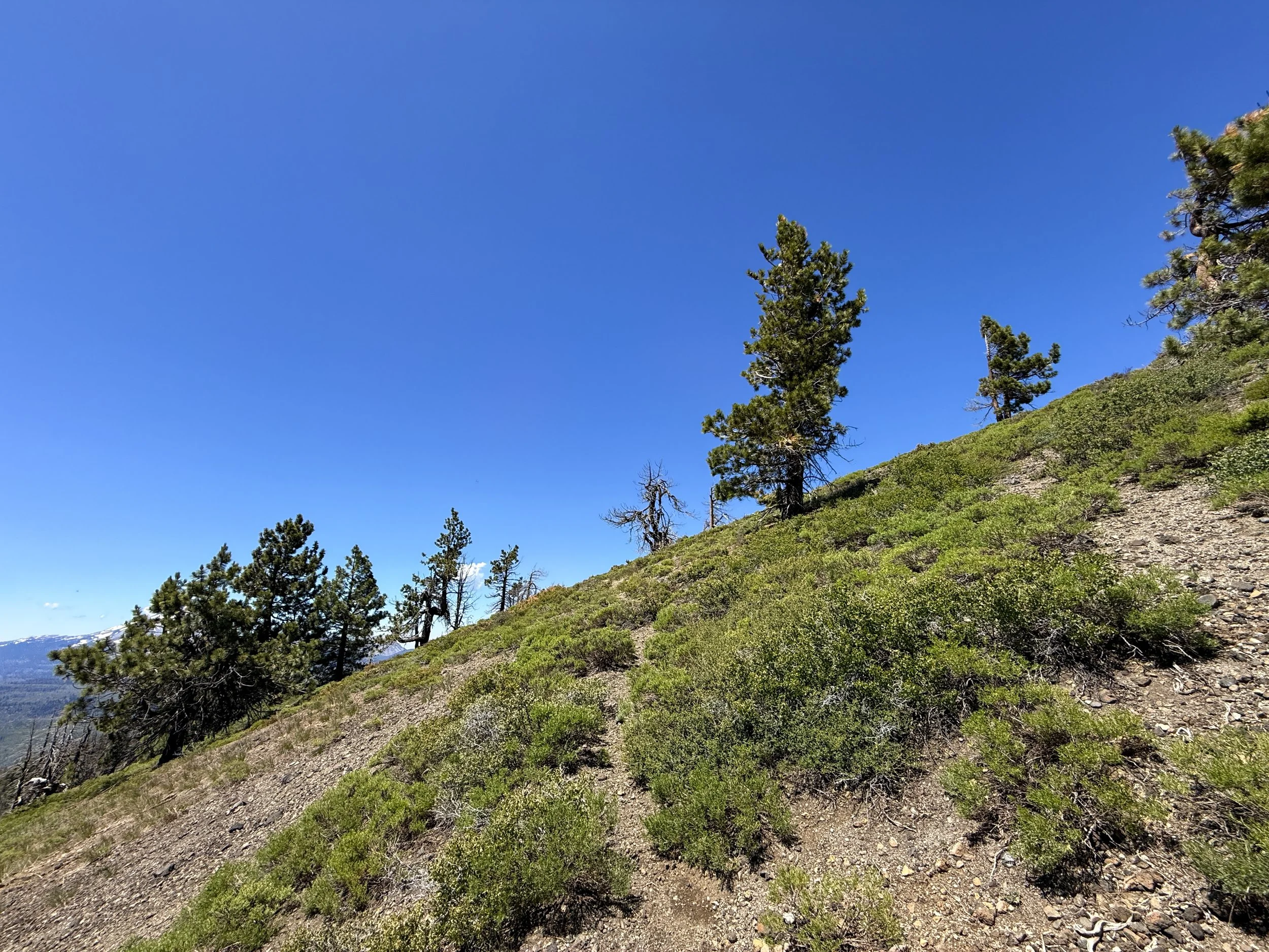 When I crossed the fire line on this hike in the summer of 2025, about halfway up Prospect Peak, the ground cover became much more prevalent, which, for the most part, made the trail easier to follow.