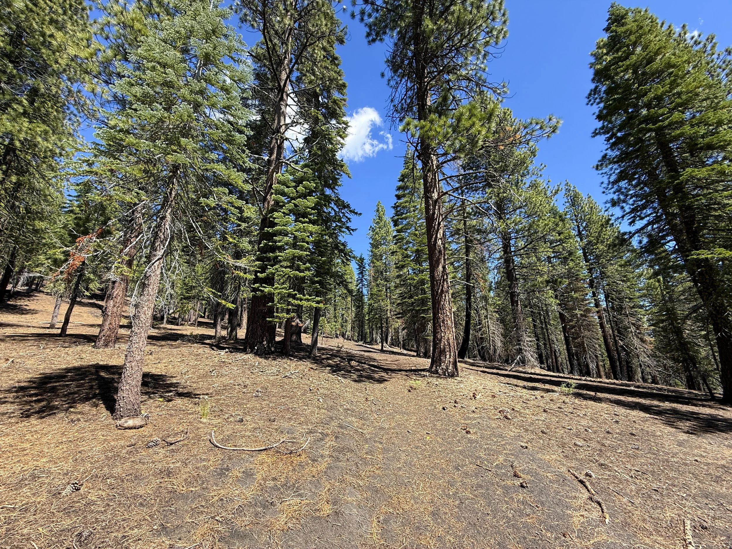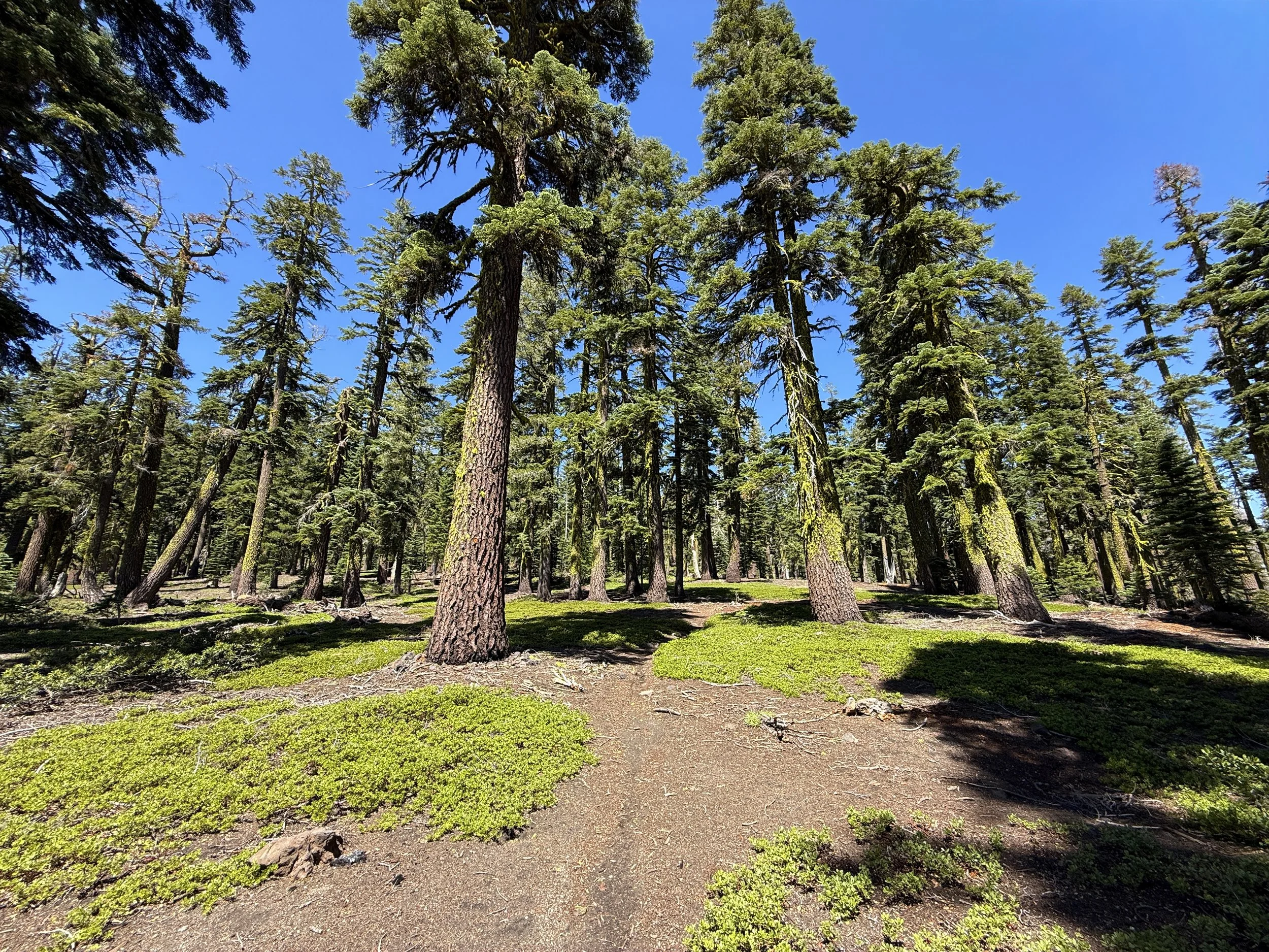 The fire scars that can be seen on the trees throughout the lower elevations of the Prospect Peak Trail are from the 2021 Dixie Fire that tore through much of Lassen Volcanic National Park, though the Butte Lake District was largely spared from the most devastating impacts compared to other areas, like Warner Valley to the south.
