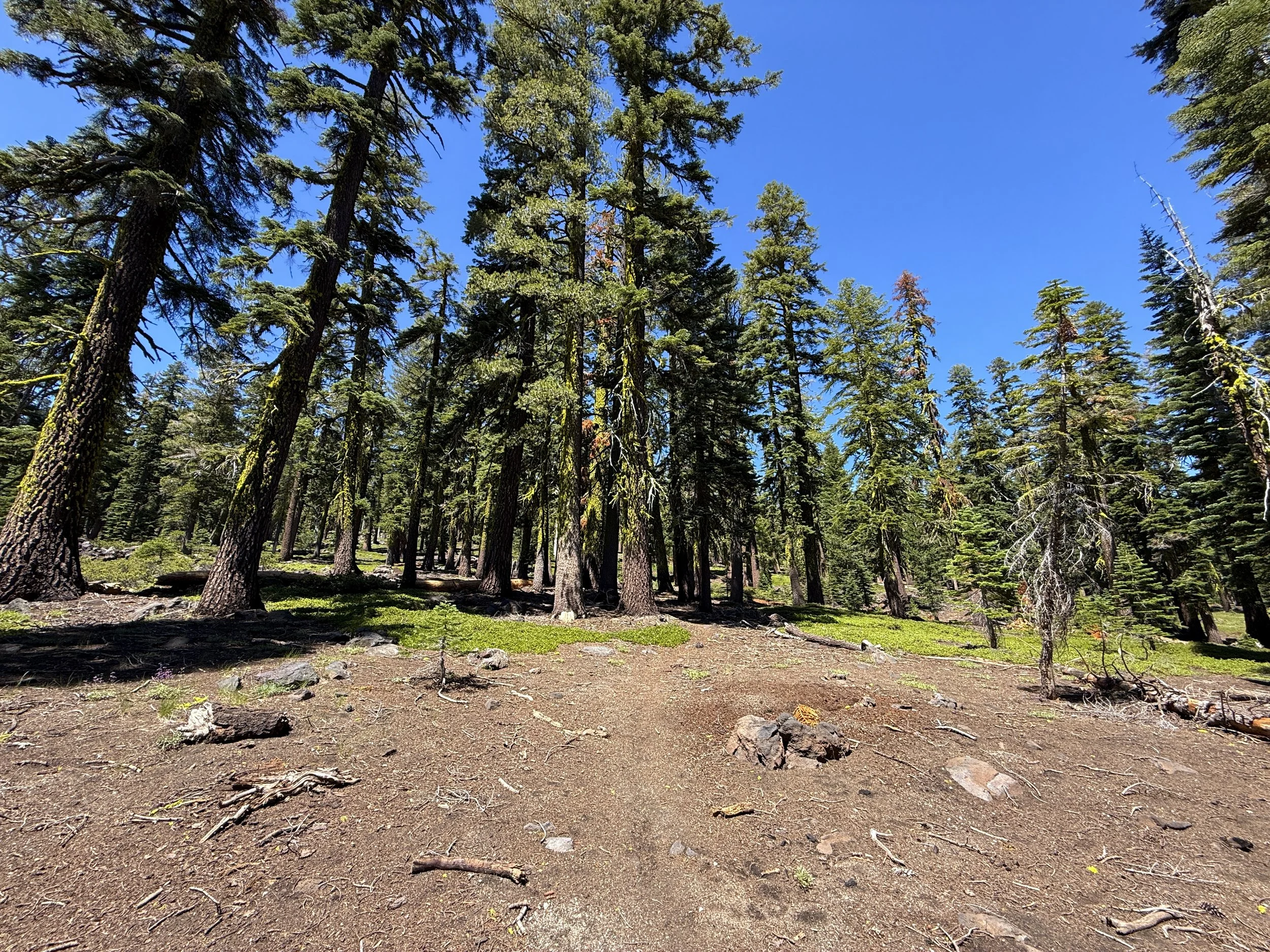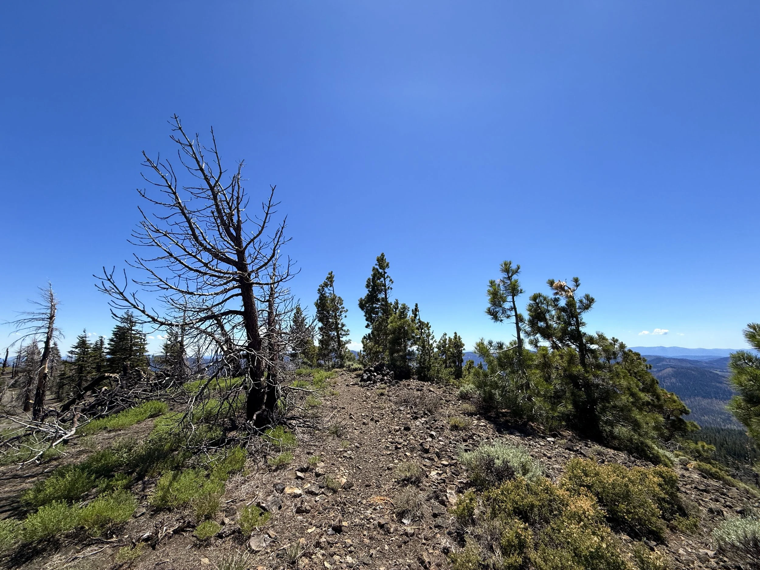 This is the end of the Prospect Peak Trail, where the summit marker can be found, along with beautiful views looking north toward Mt. Shasta.