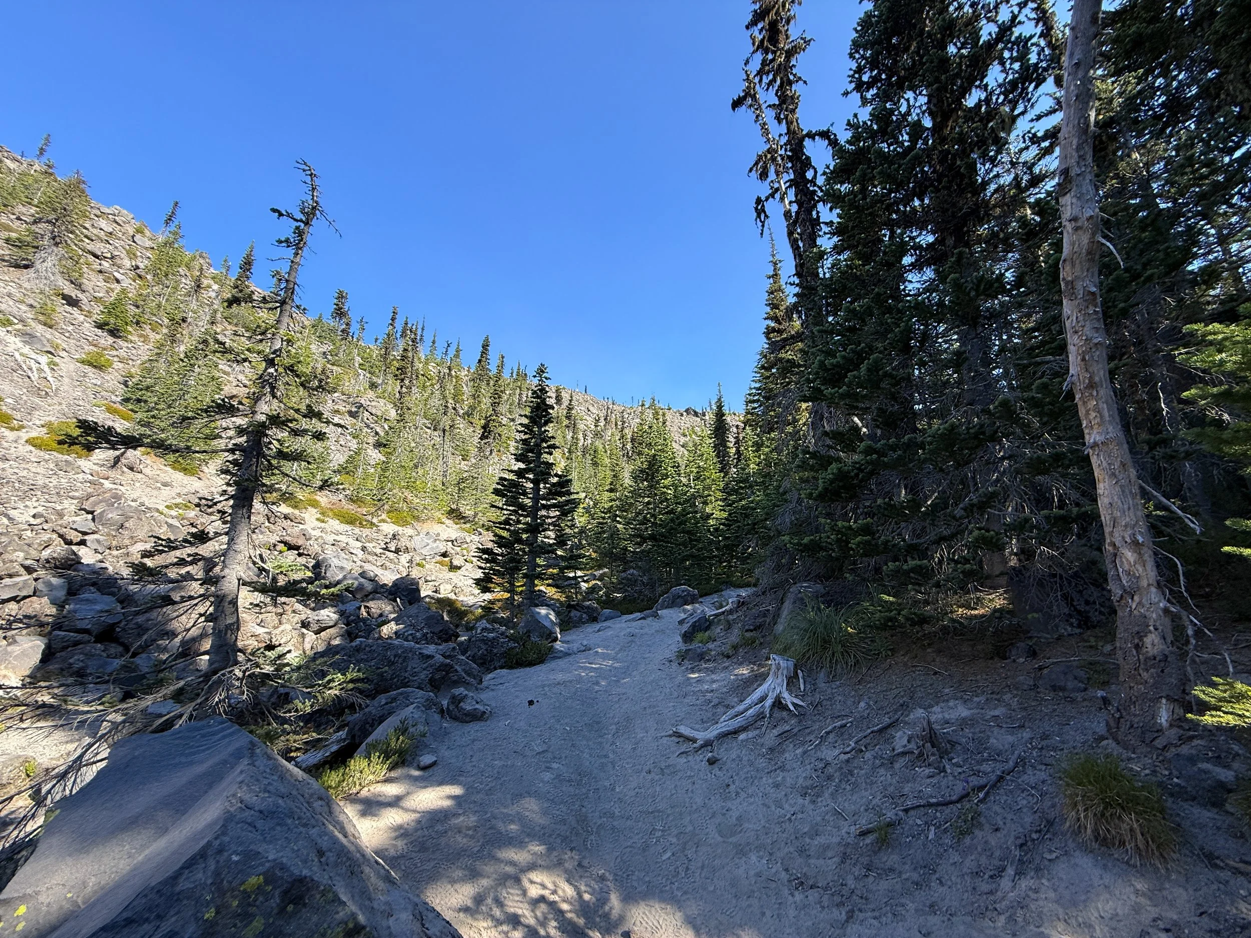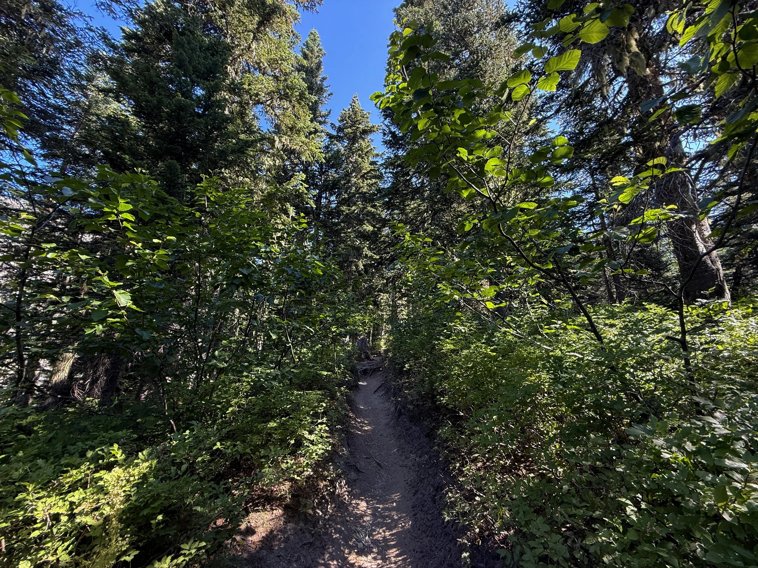 At this split, I recommend staying to the left, but there will be a point where it is easiest to hike the upper paralleling trail.