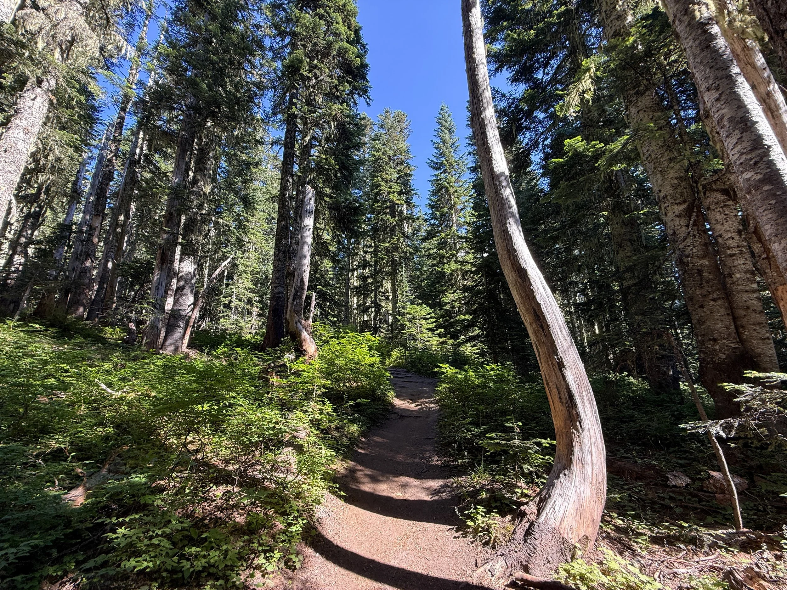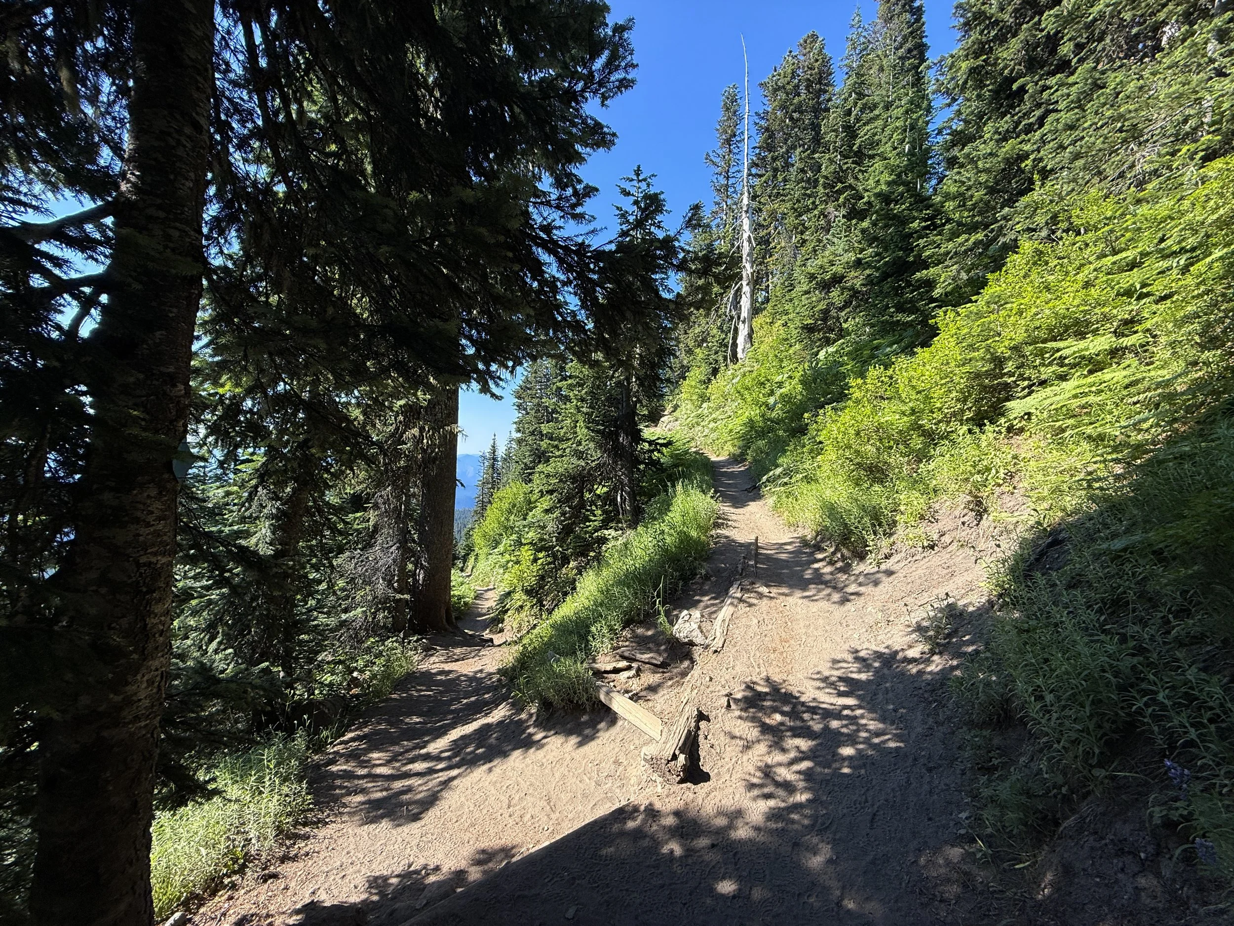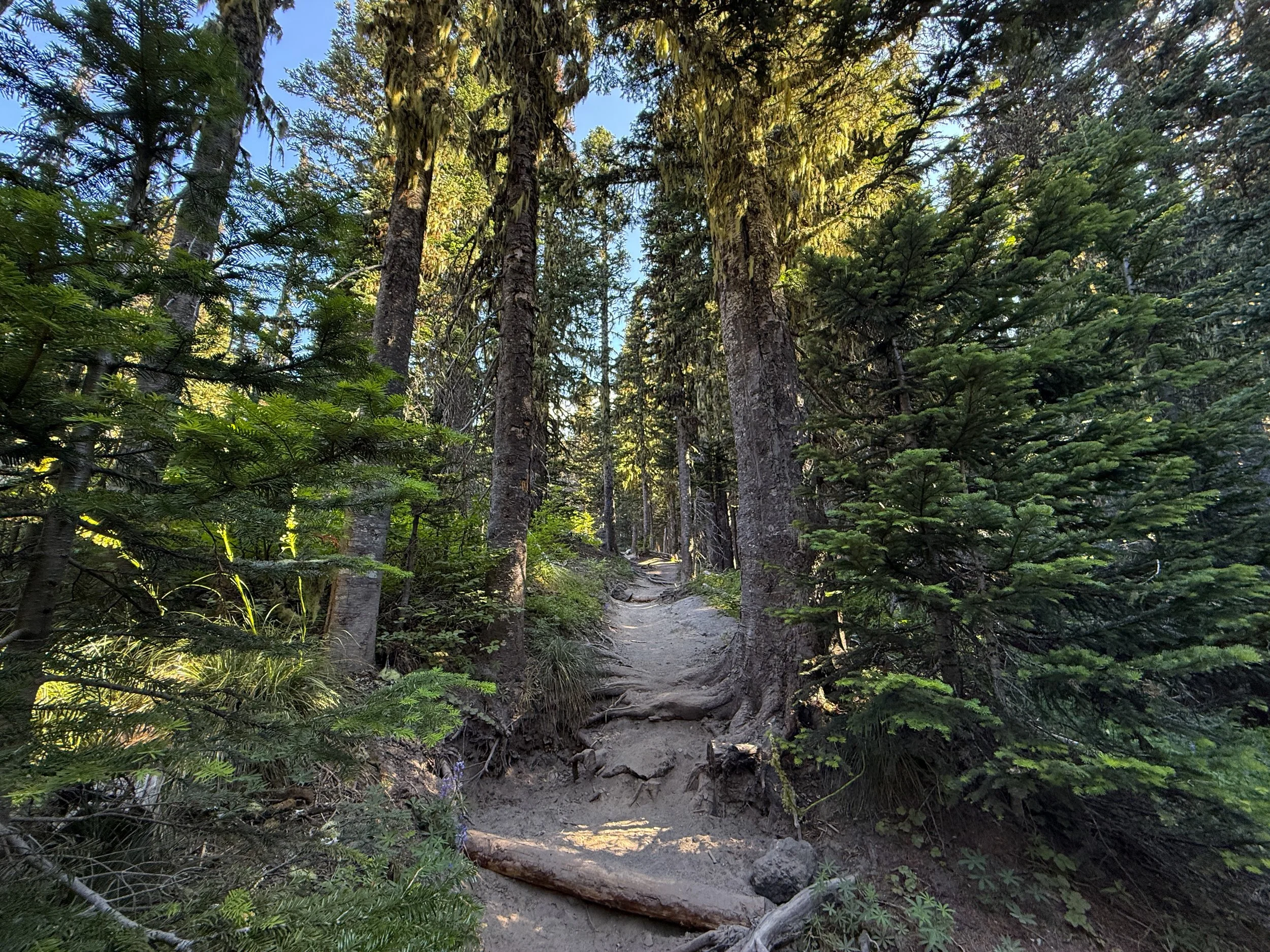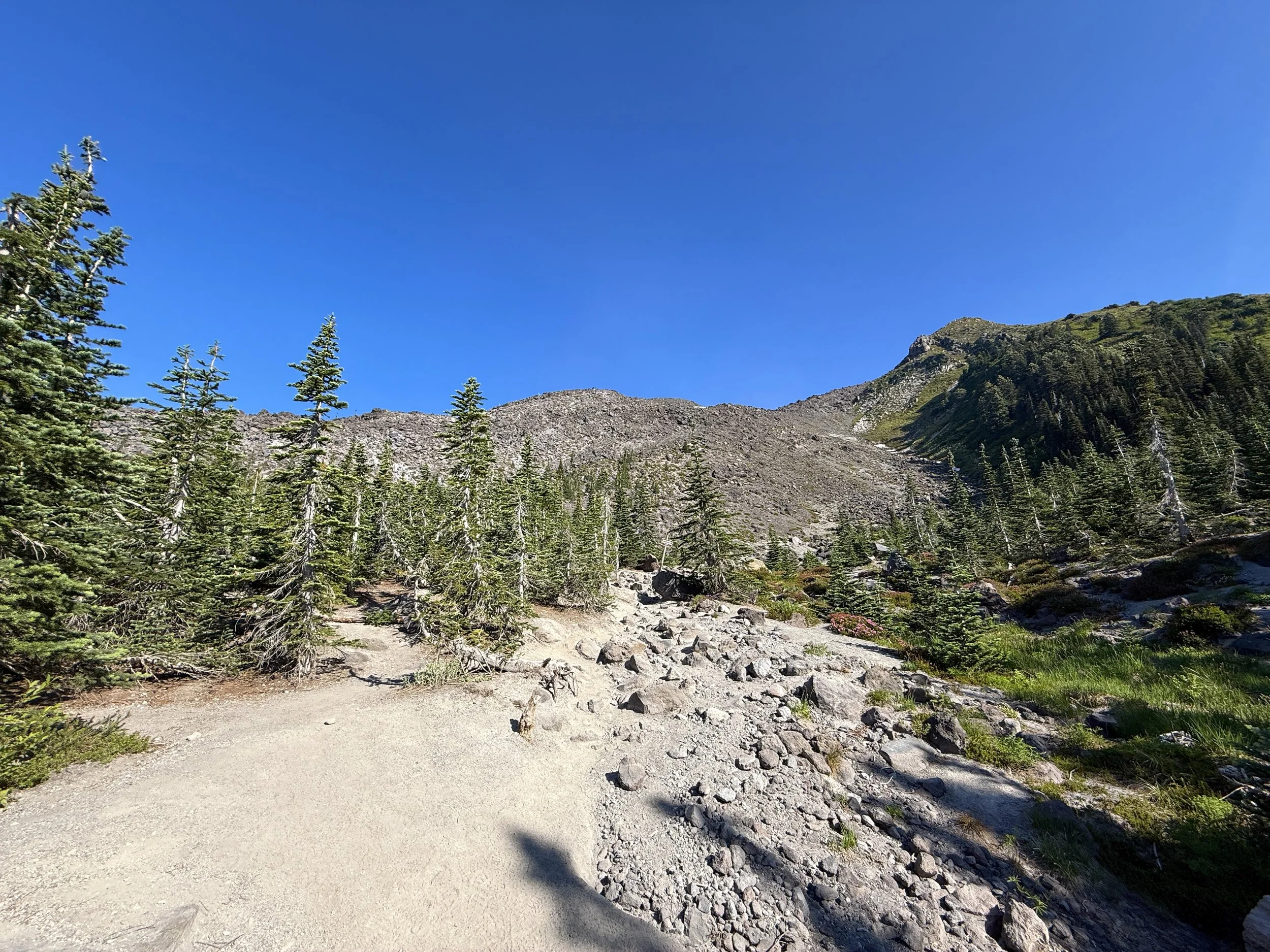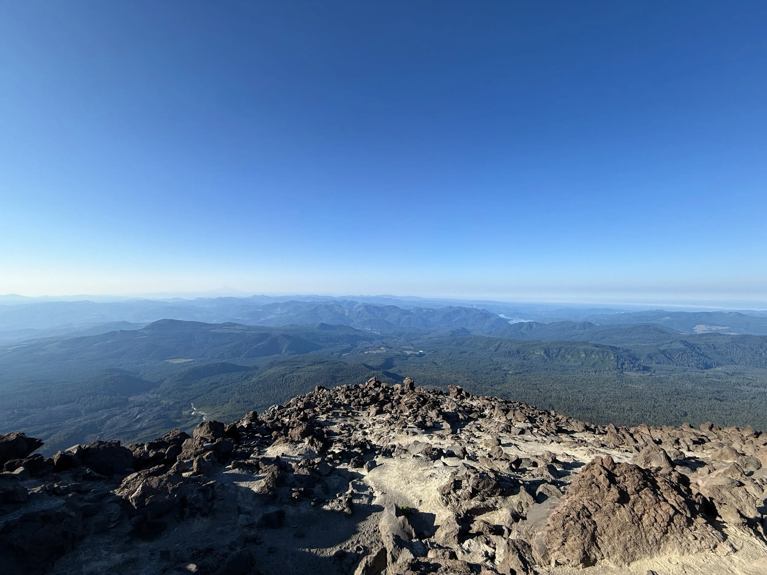 There was some wildfire smoke on this ascent during the third week of July, which is why Mt. Hood can barely be seen in the distance on the left side of the photo below.