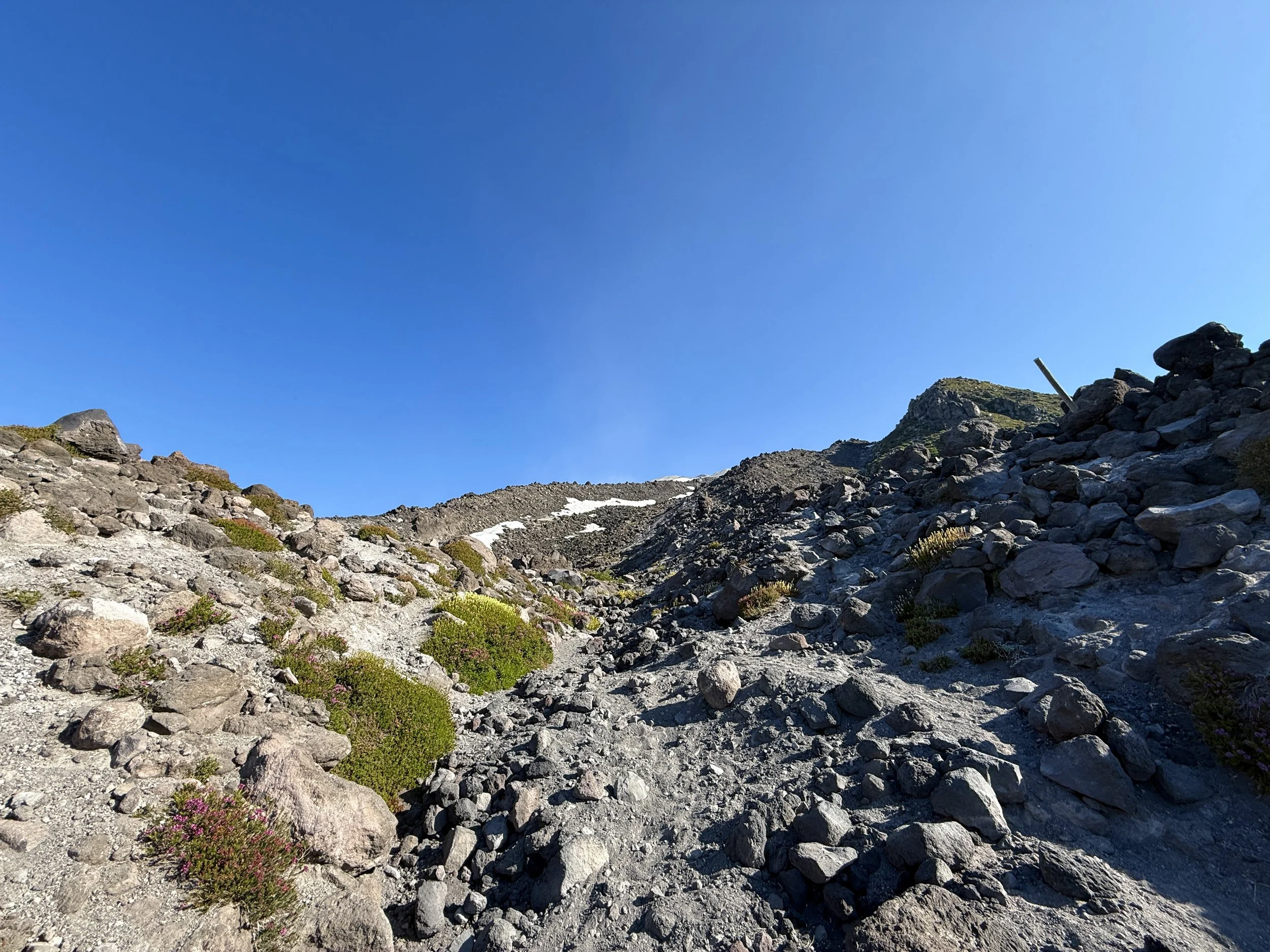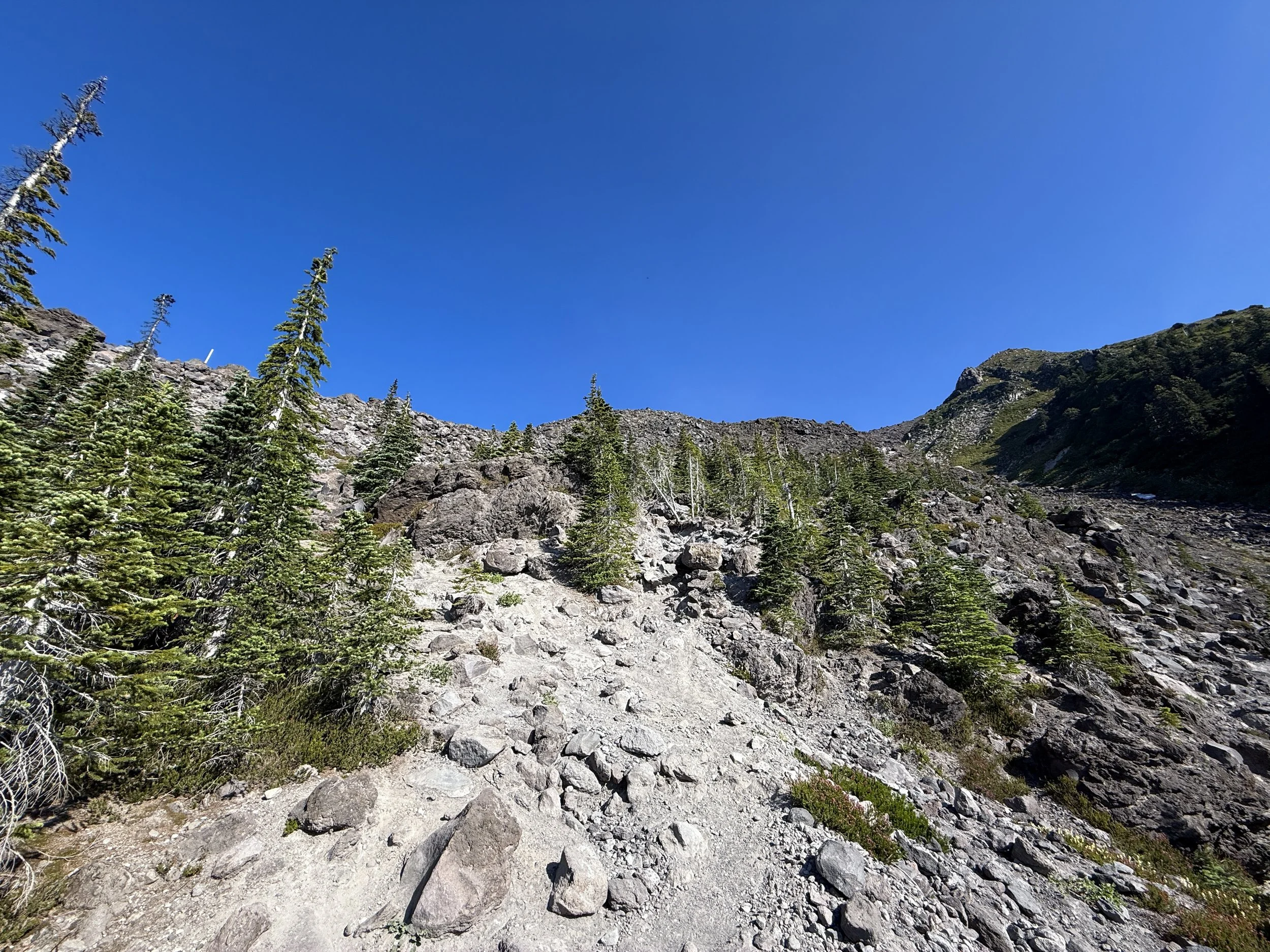 There’s no reason this section should be more difficult than what can be seen in these photos—especially considering that the loose volcanic rock off-trail can make it easy to kick rocks down on hikers below.