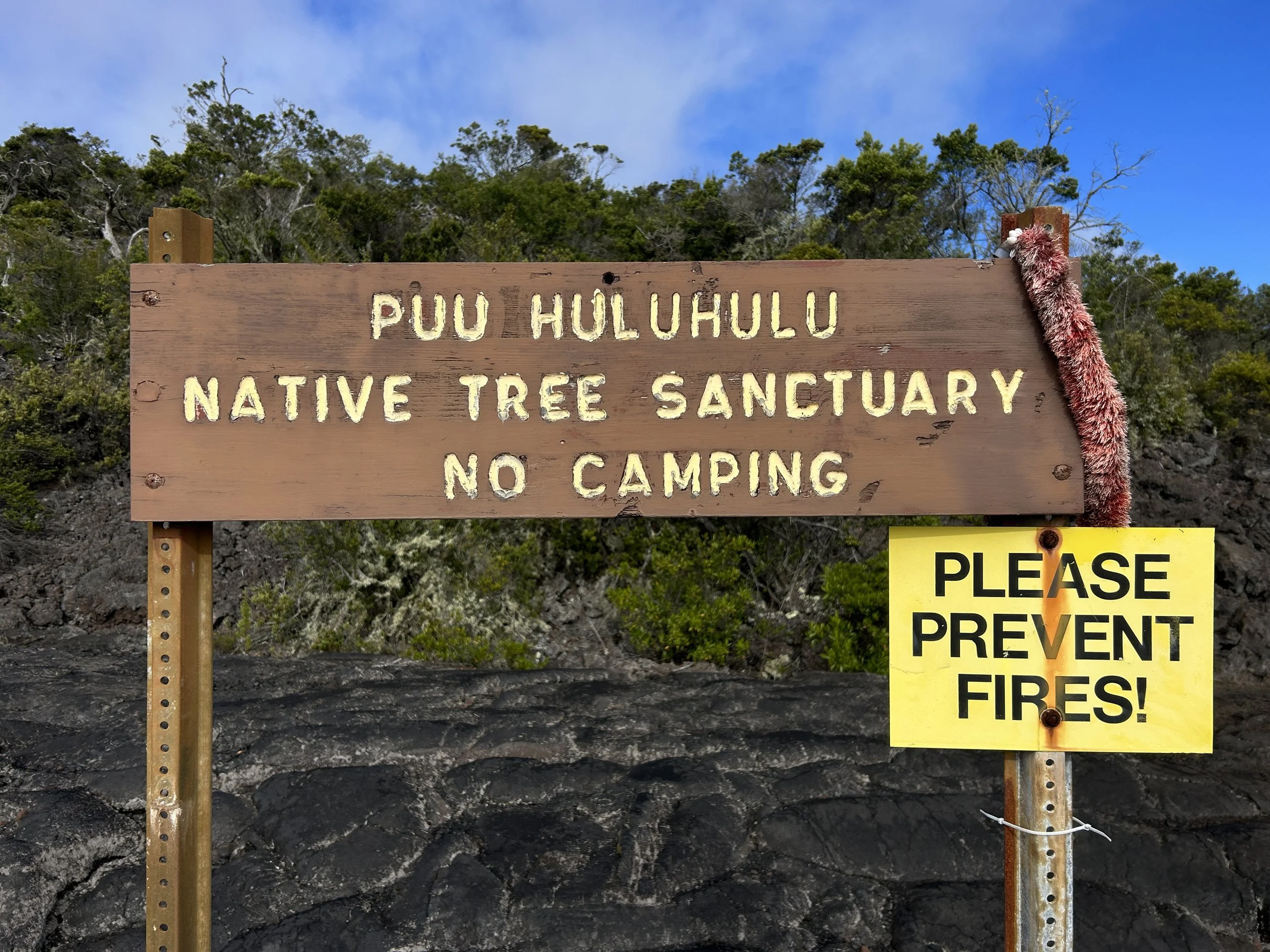 Not only is Puʻu Huluhulu an important ecological forest for native Hawaiian plants and birds, but the cinder cone is also a sacred Hawaiian site.