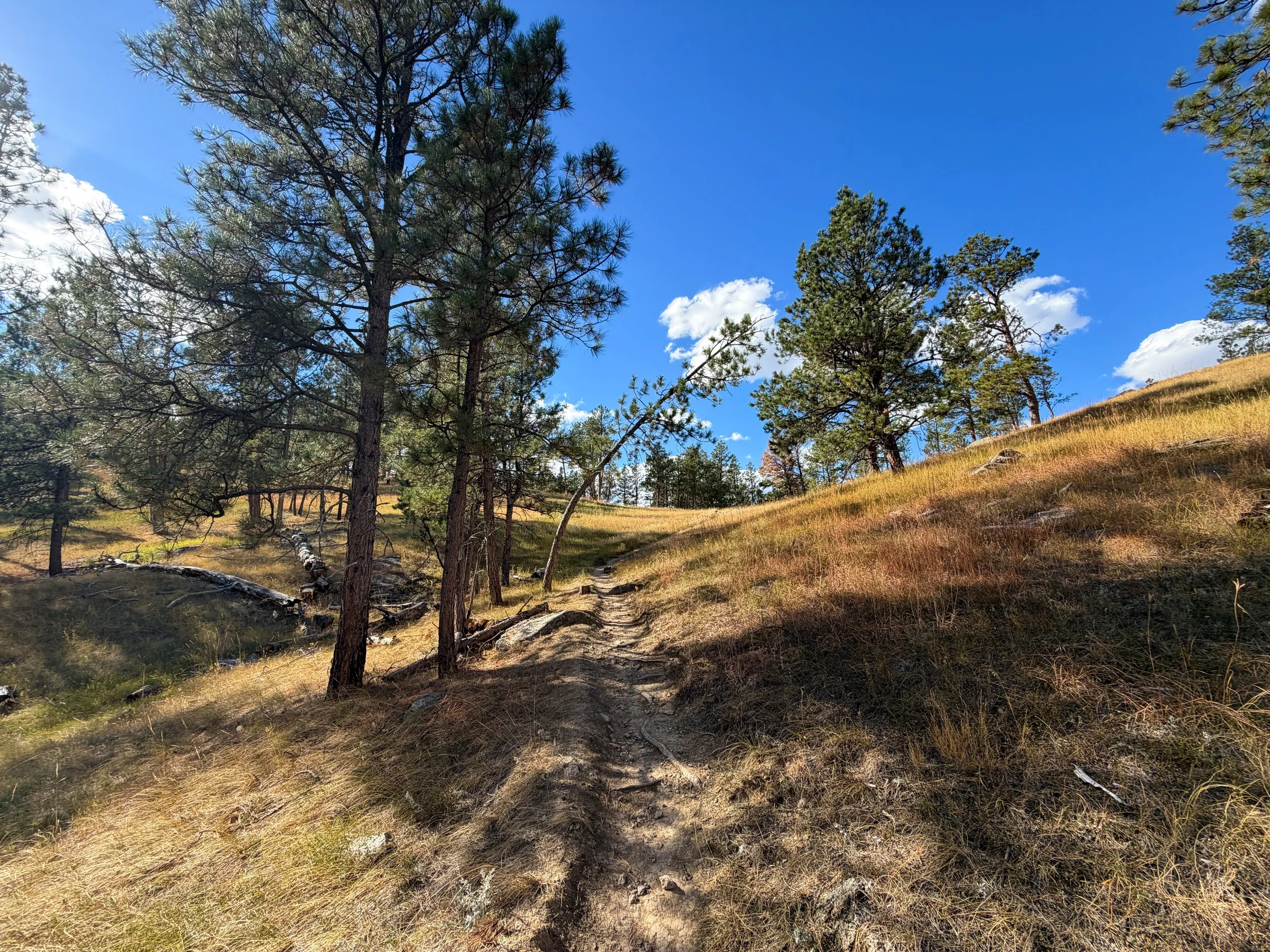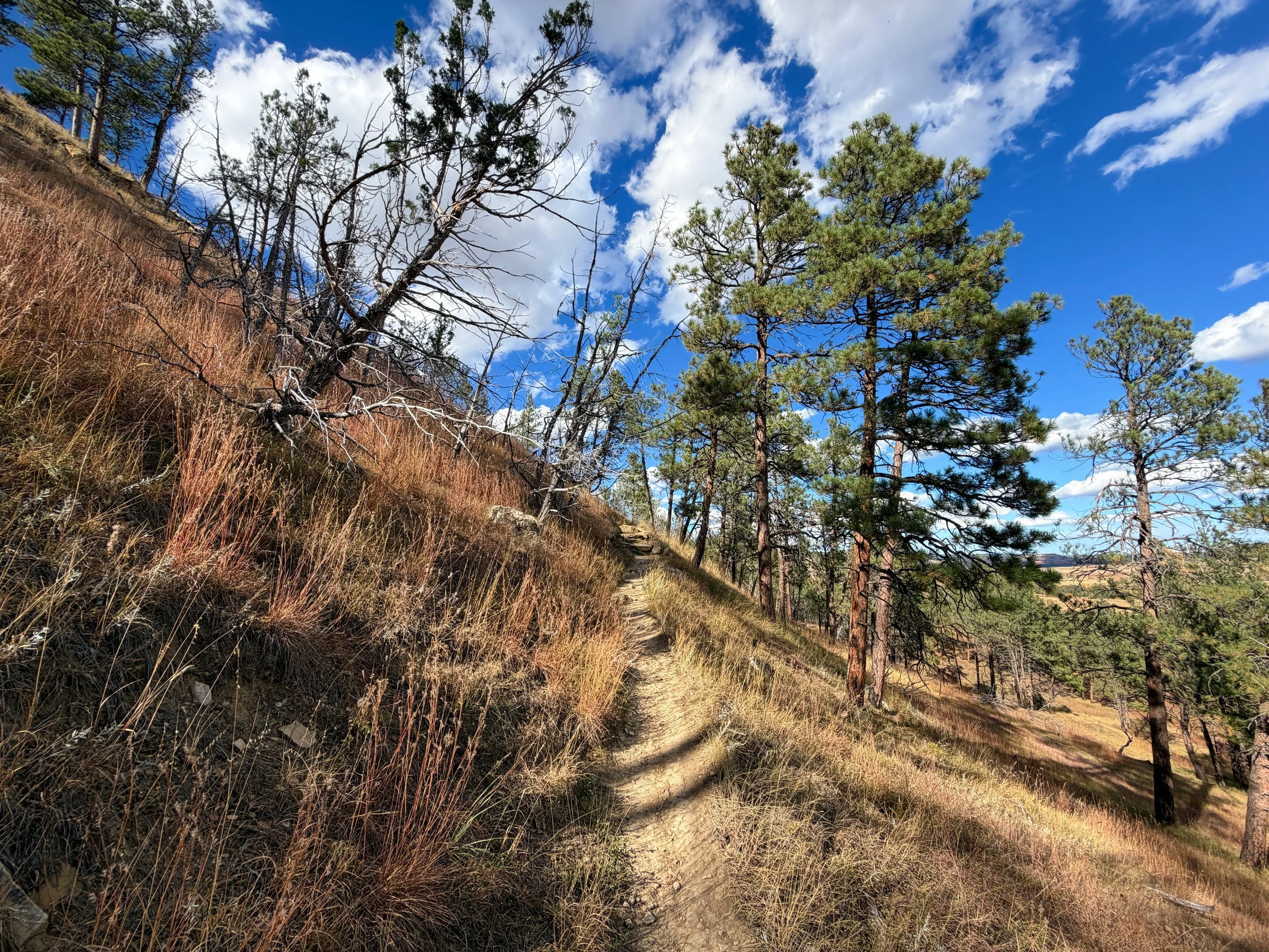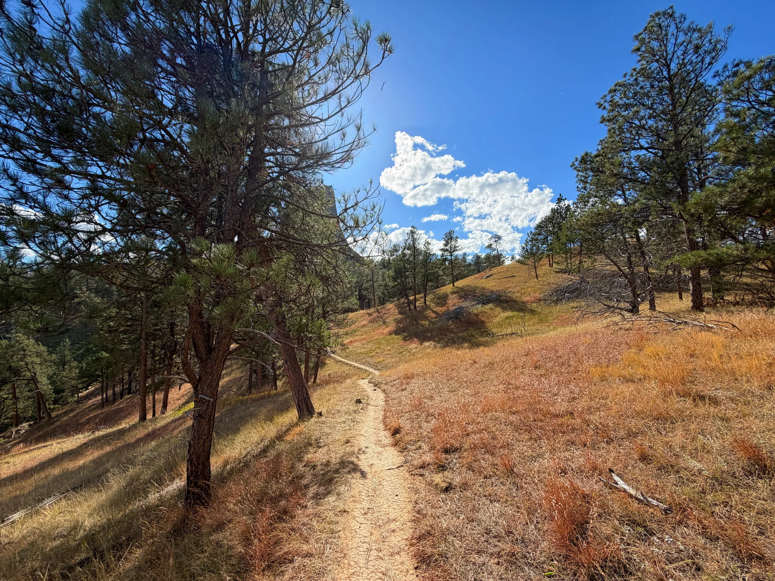 When the Red Beds Loop begins to turn toward the eastern side of Devils Tower, the trail descends much more noticeably toward the Belle Fourche River.