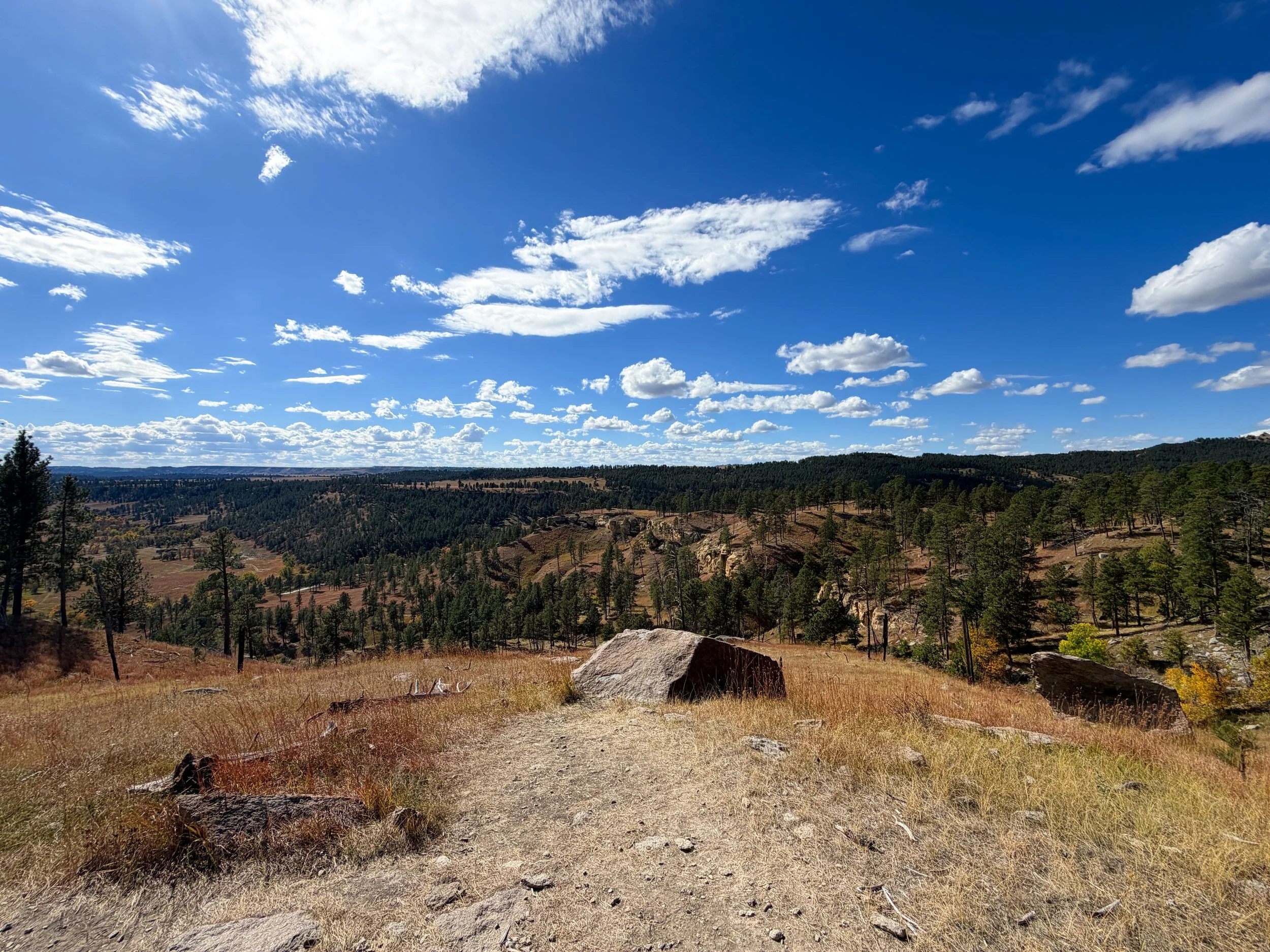 From the eastern side of Devils Tower, the Black Hills in western South Dakota can be seen in the distance!