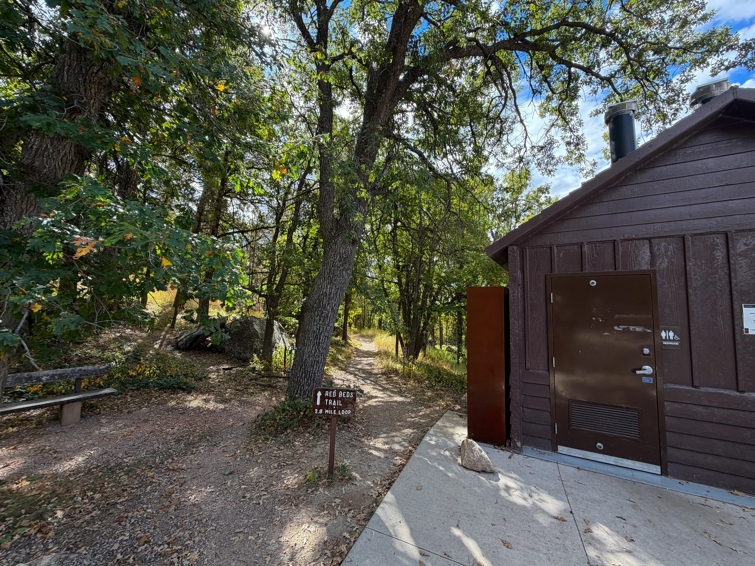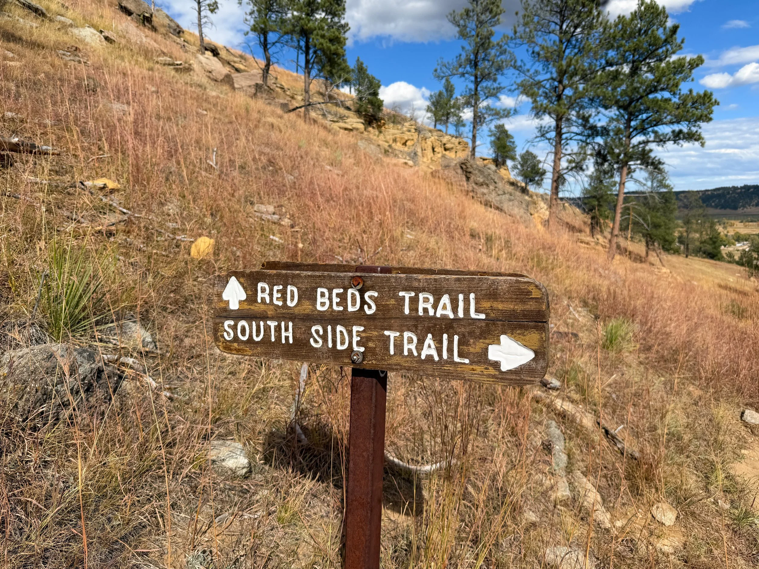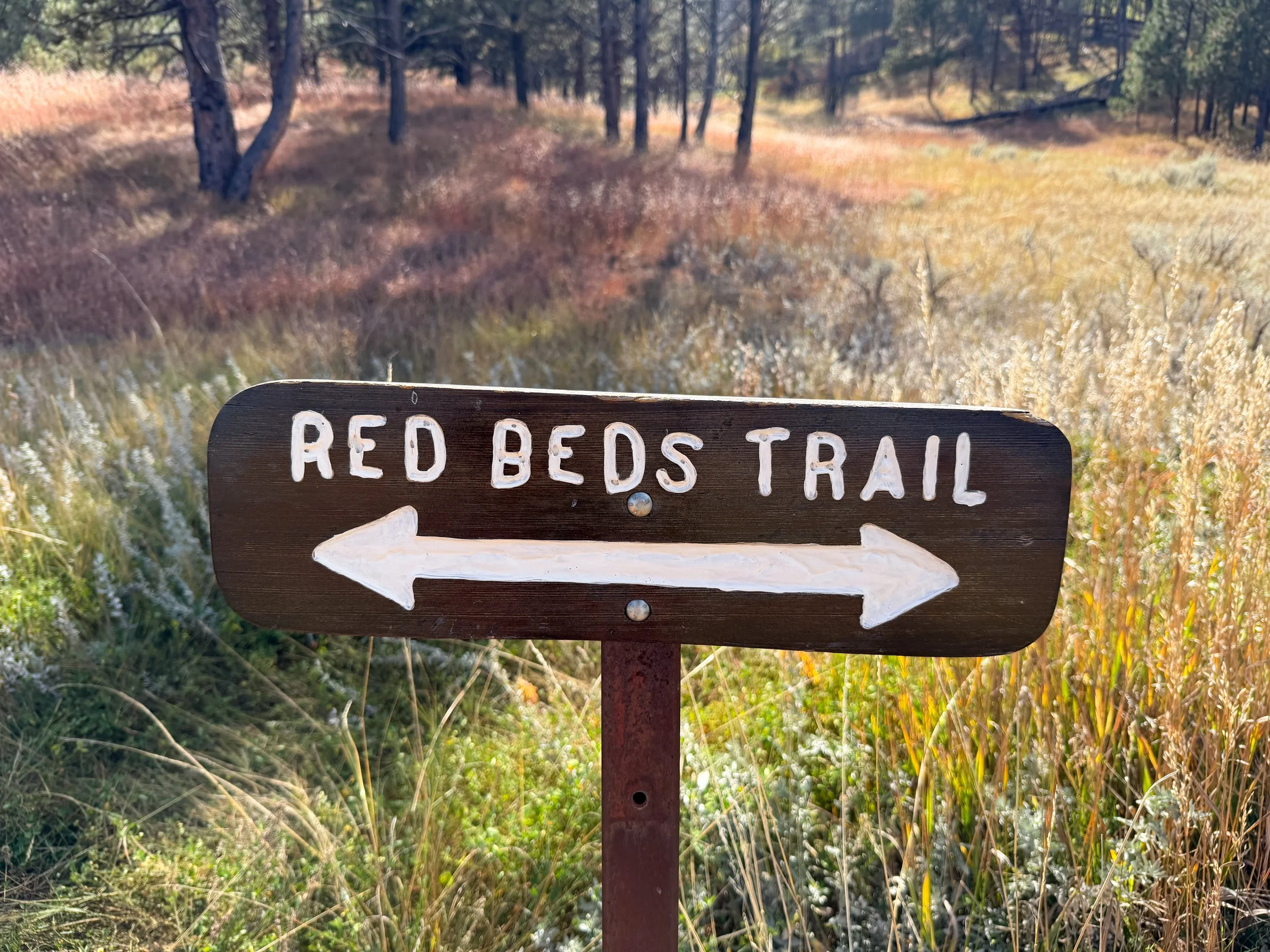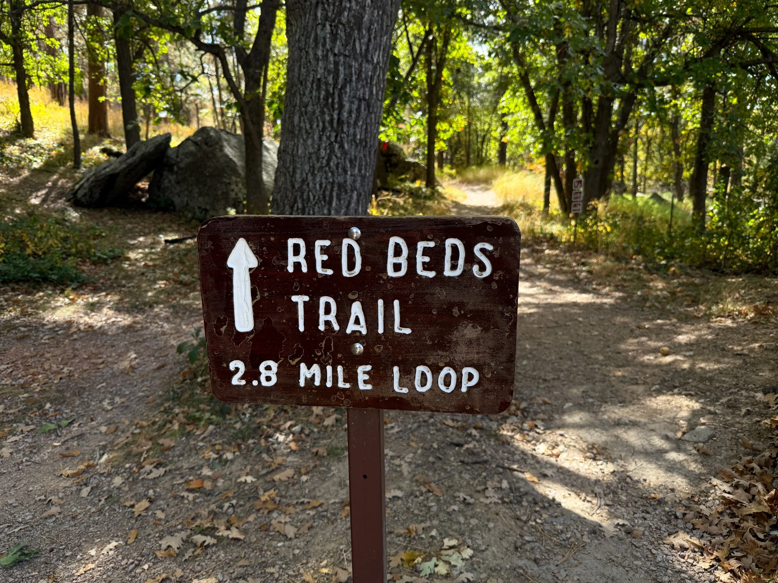 The Red Beds Trail begins at either the Red Beds Trailhead adjacent to the Tower Trailhead, or there is the option to hike up the Tower Trail to begin the opposite side of the loop first, located a short distance after the pavilion.