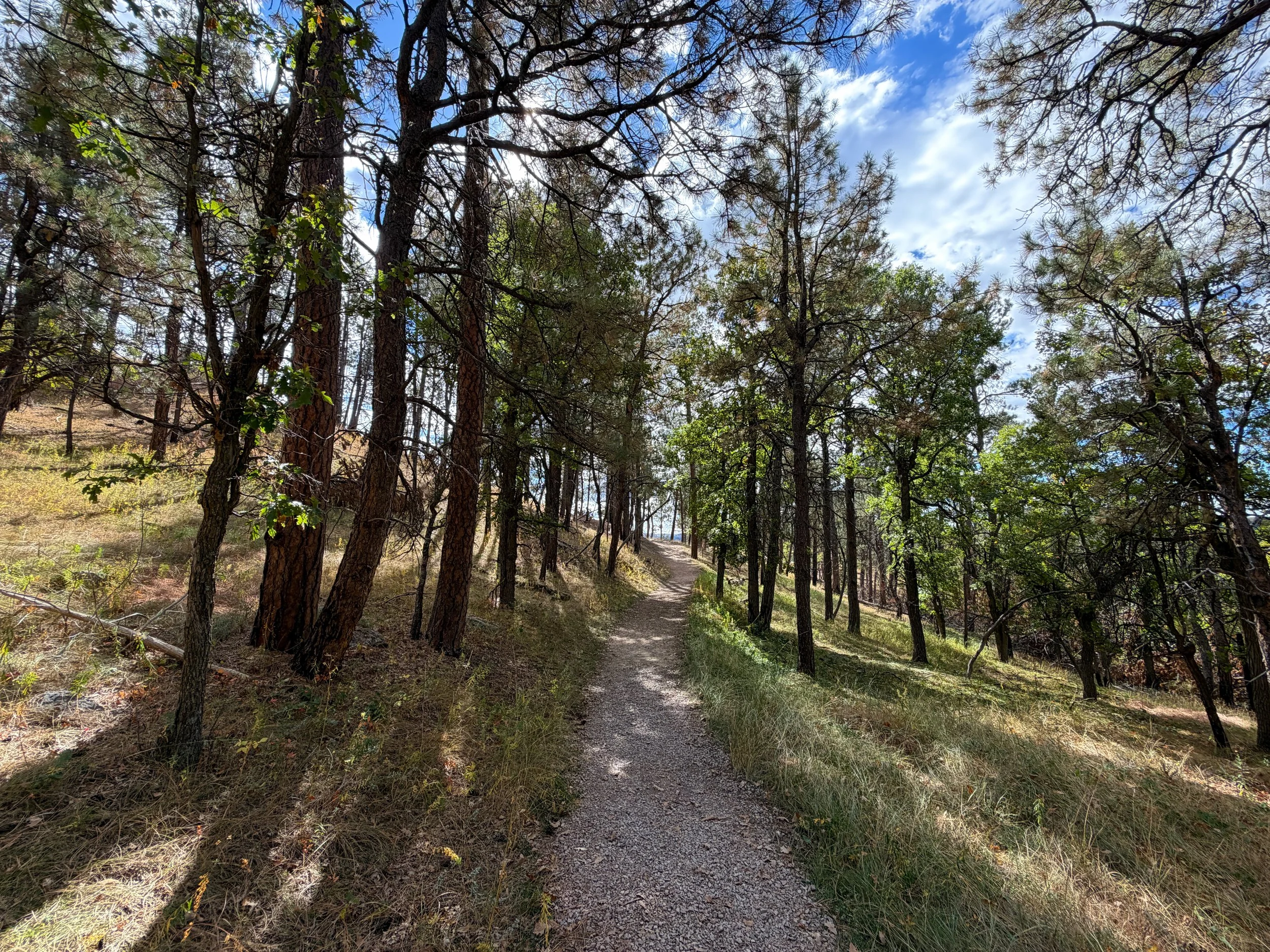This is where the Red Beds can start to be seen through the Ponderosa Pines in the distance!