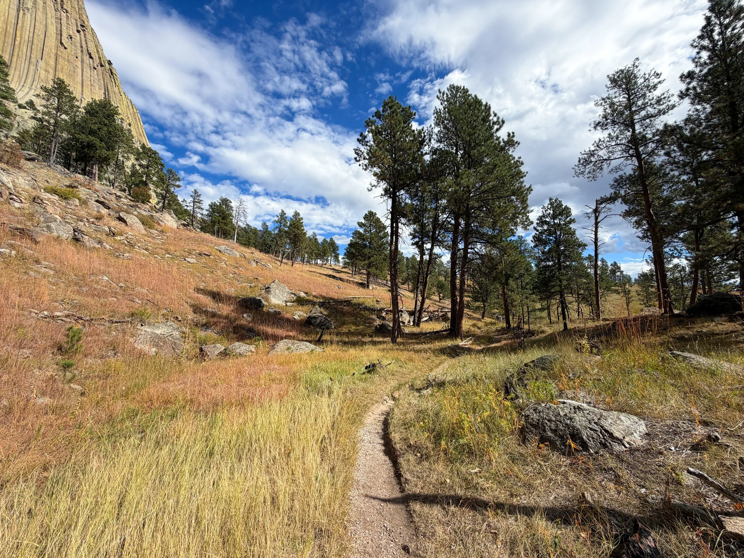 However, it doesn’t notably get steep until it reaches the north side of Devils Tower.