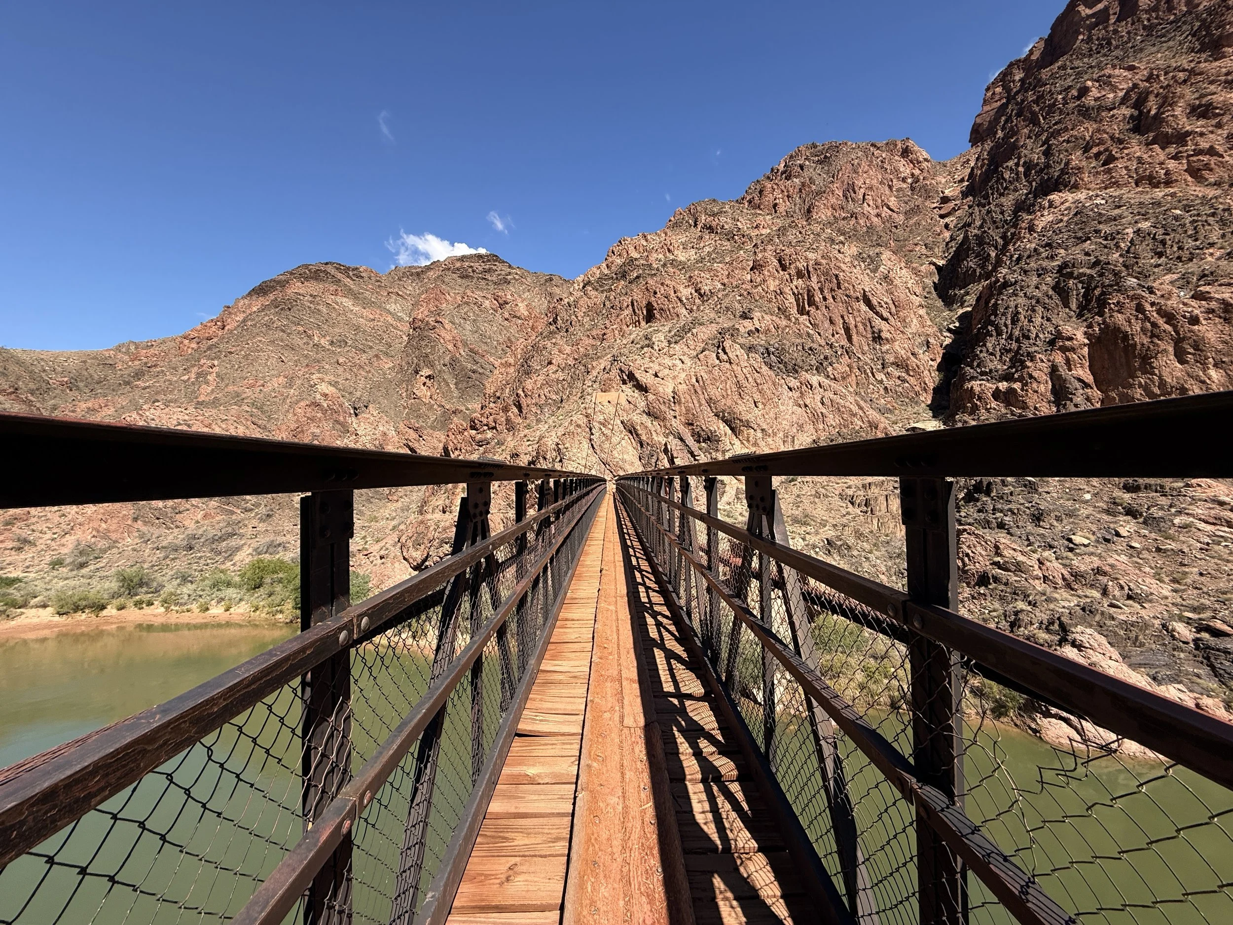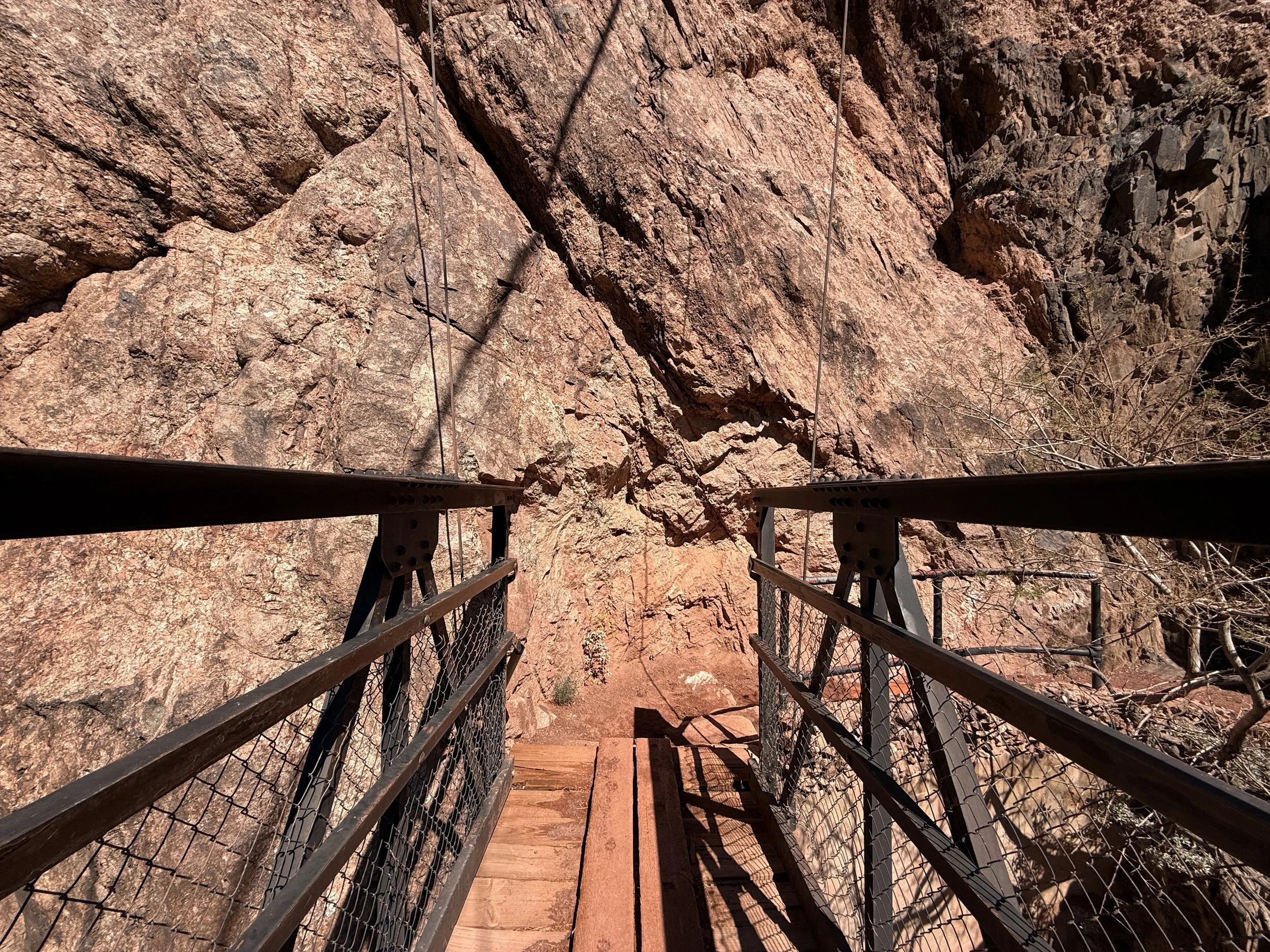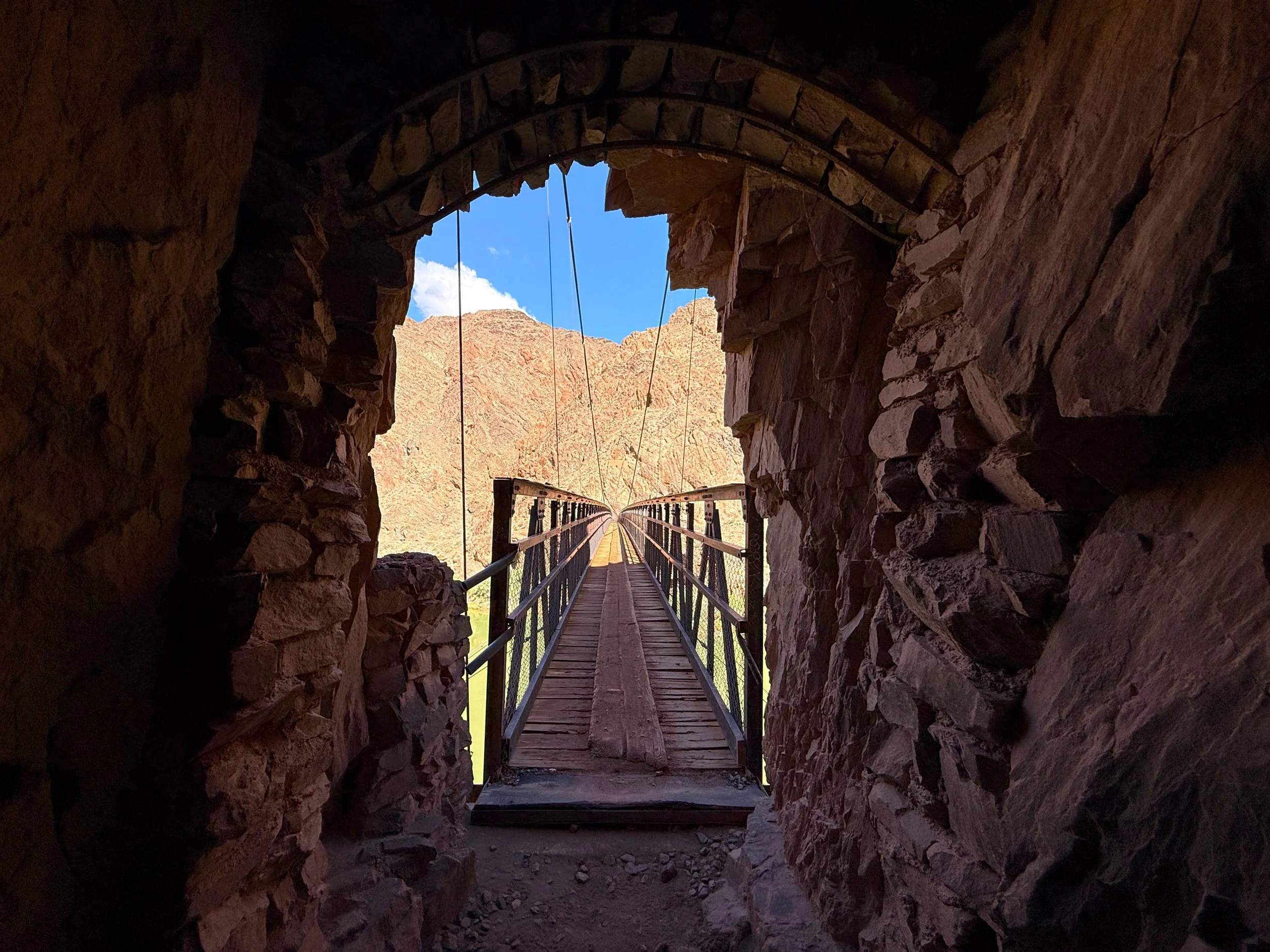 Passing through the cave and onto the 1920s-era Kaibab Trail Suspension Bridge is one of the best feelings after a long, steep descent into the Grand Canyon!