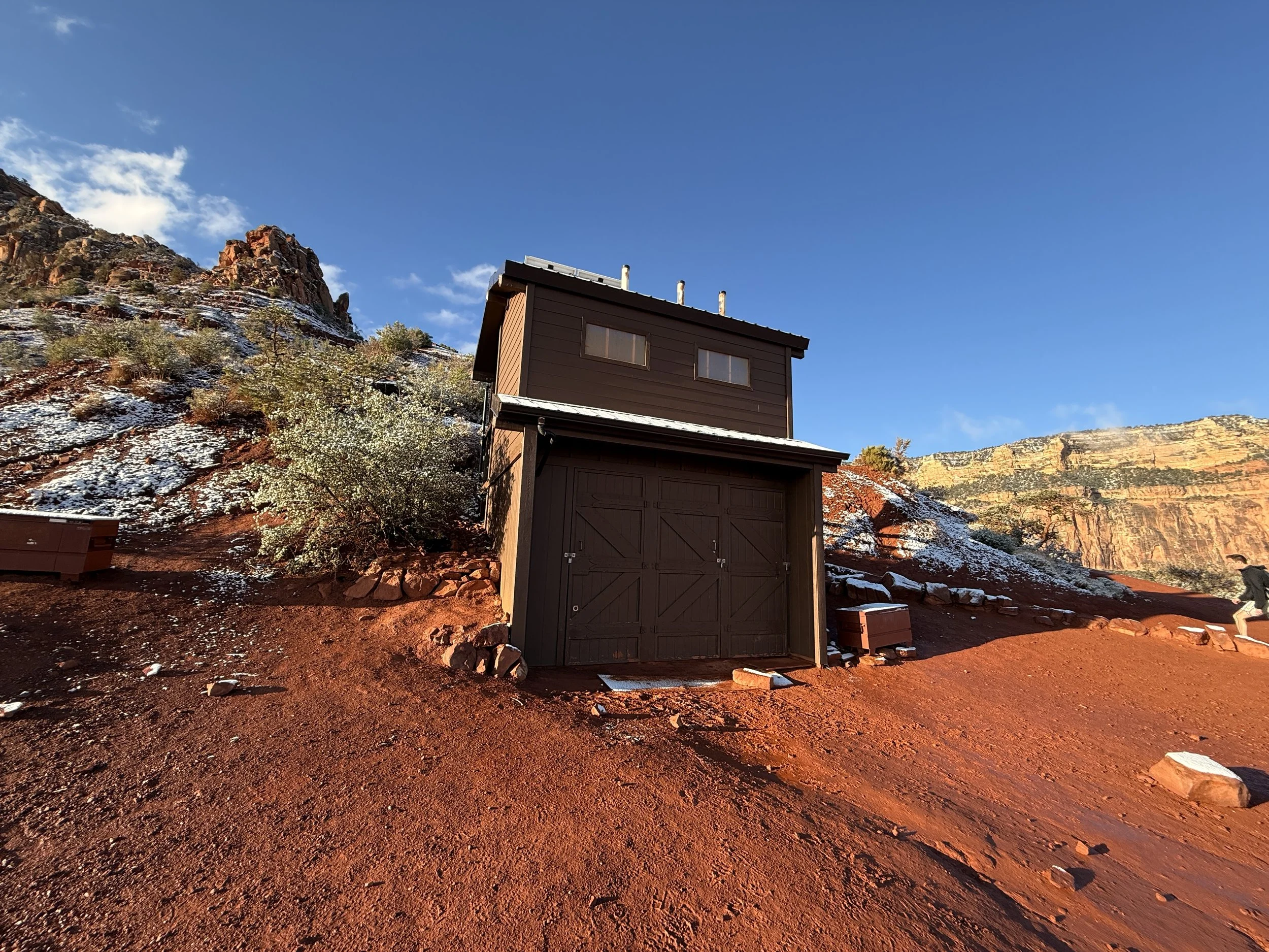 This is only one of two restrooms on the way down the South Kaibab Trail, with the other located at the East Tonto Trail junction (Tip-Off Point).