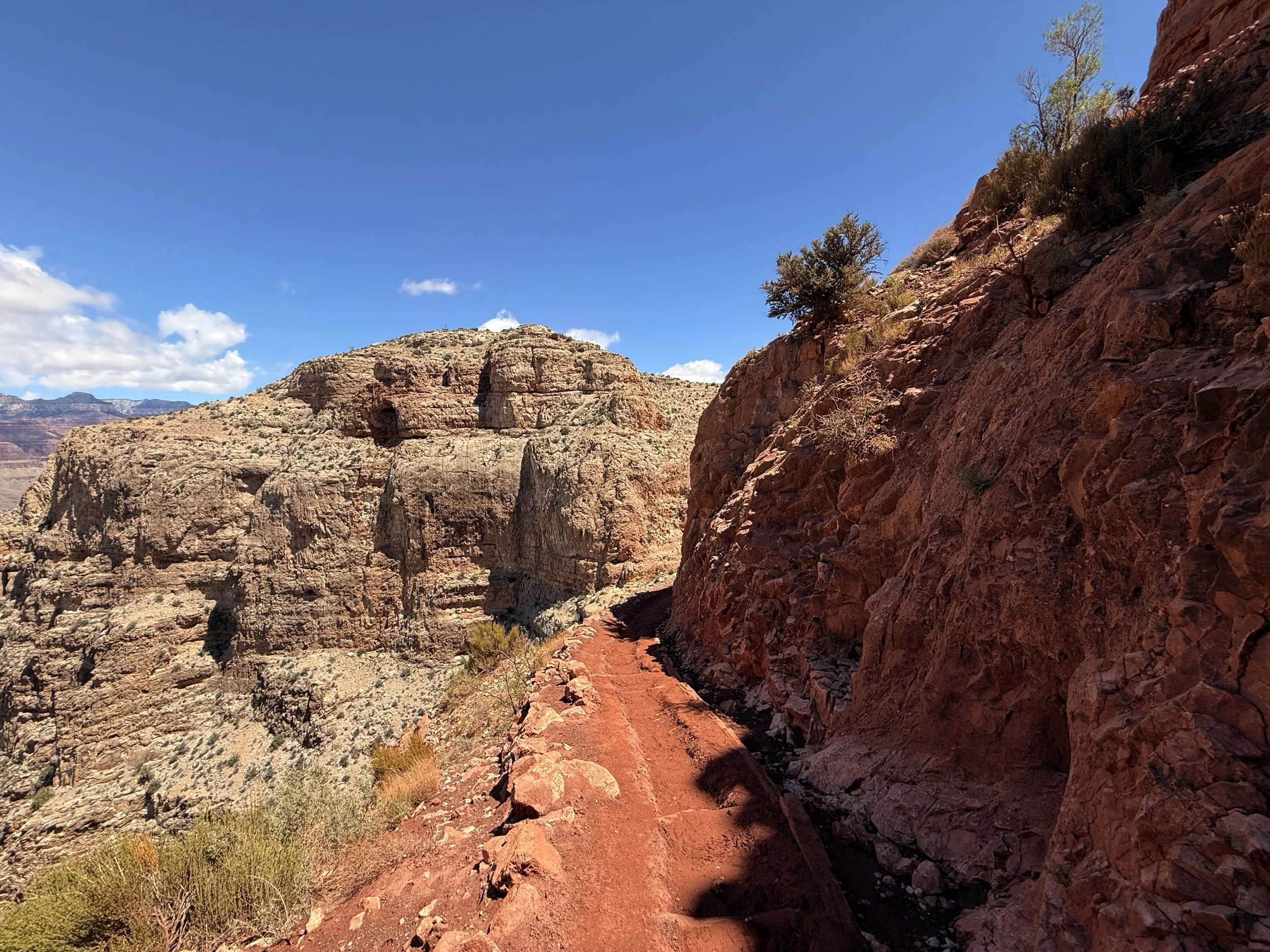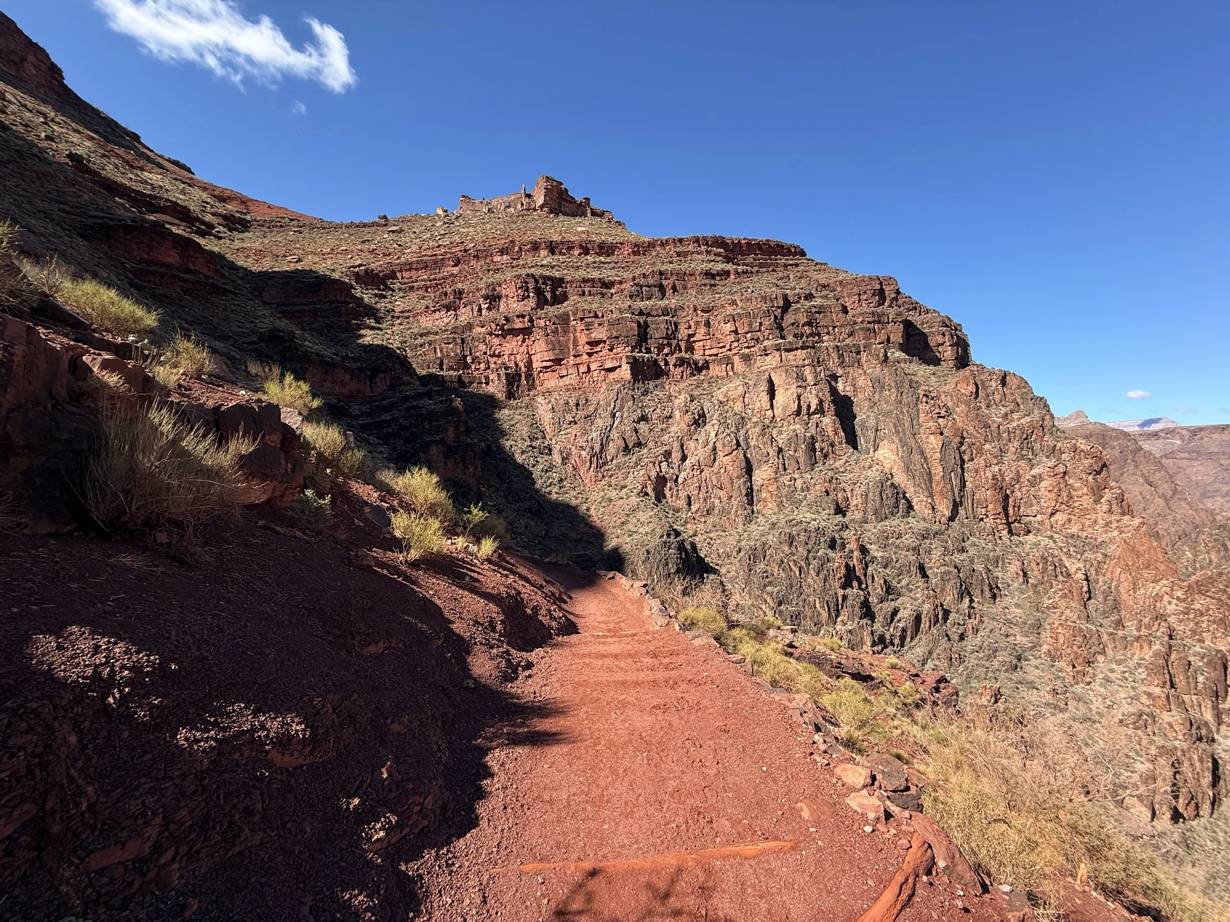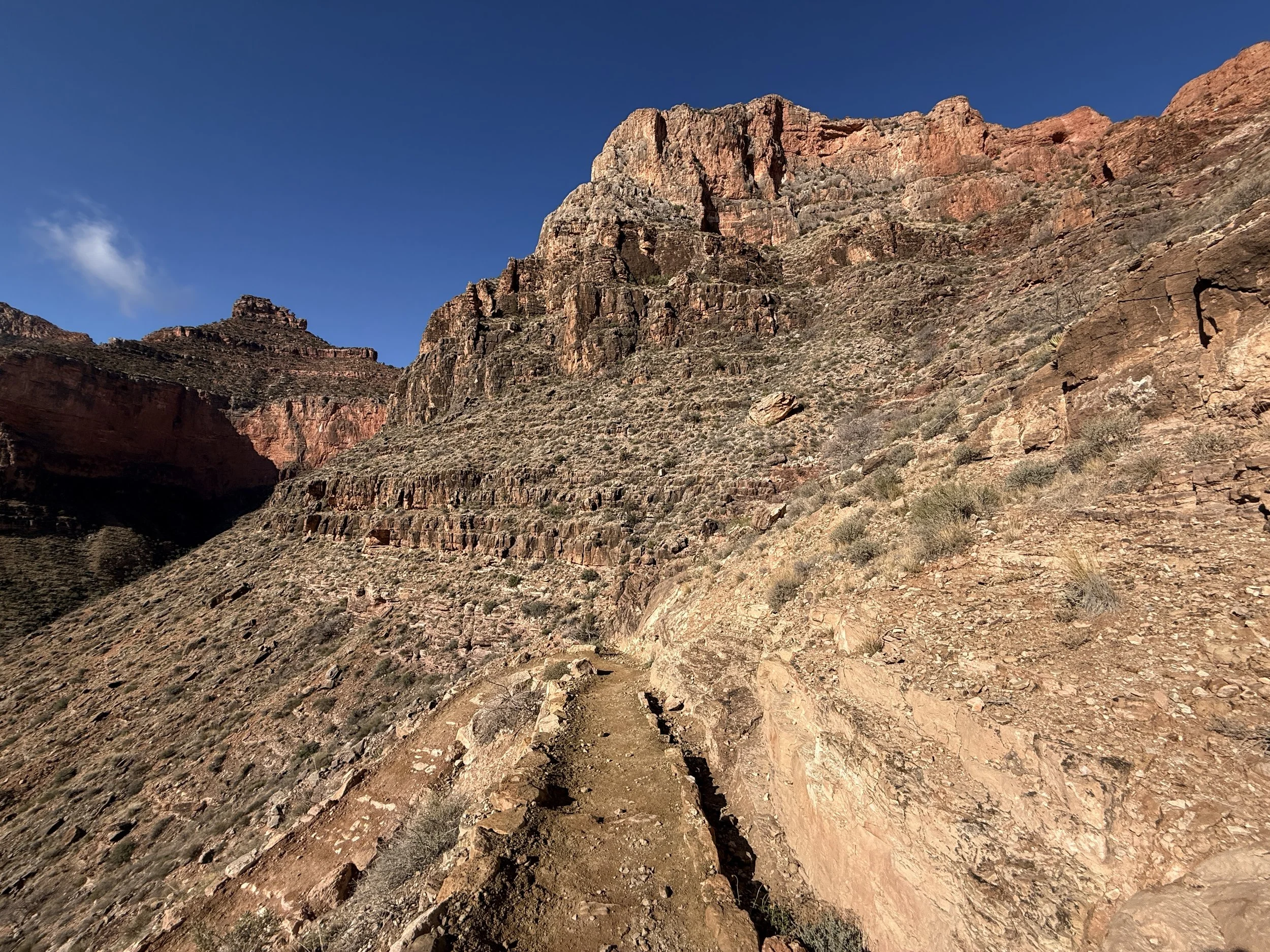 In my experience, this is where the North Rim started to feel closer, as the white Coconino sandstone layer atop the North Rim is the last section to climb.