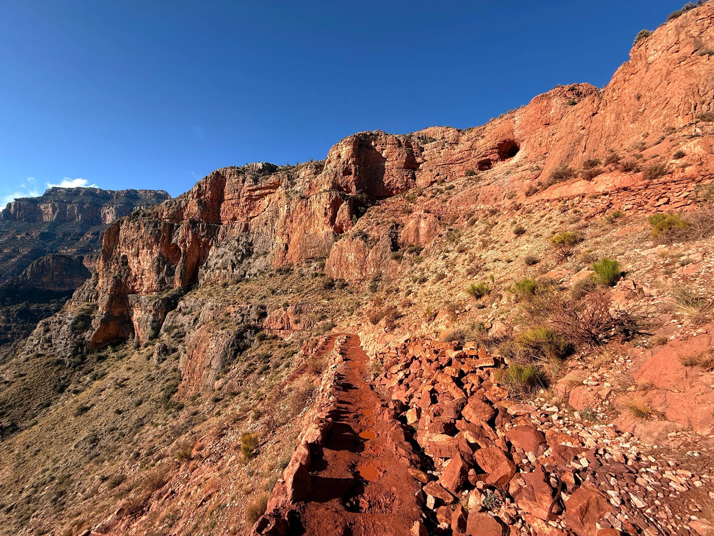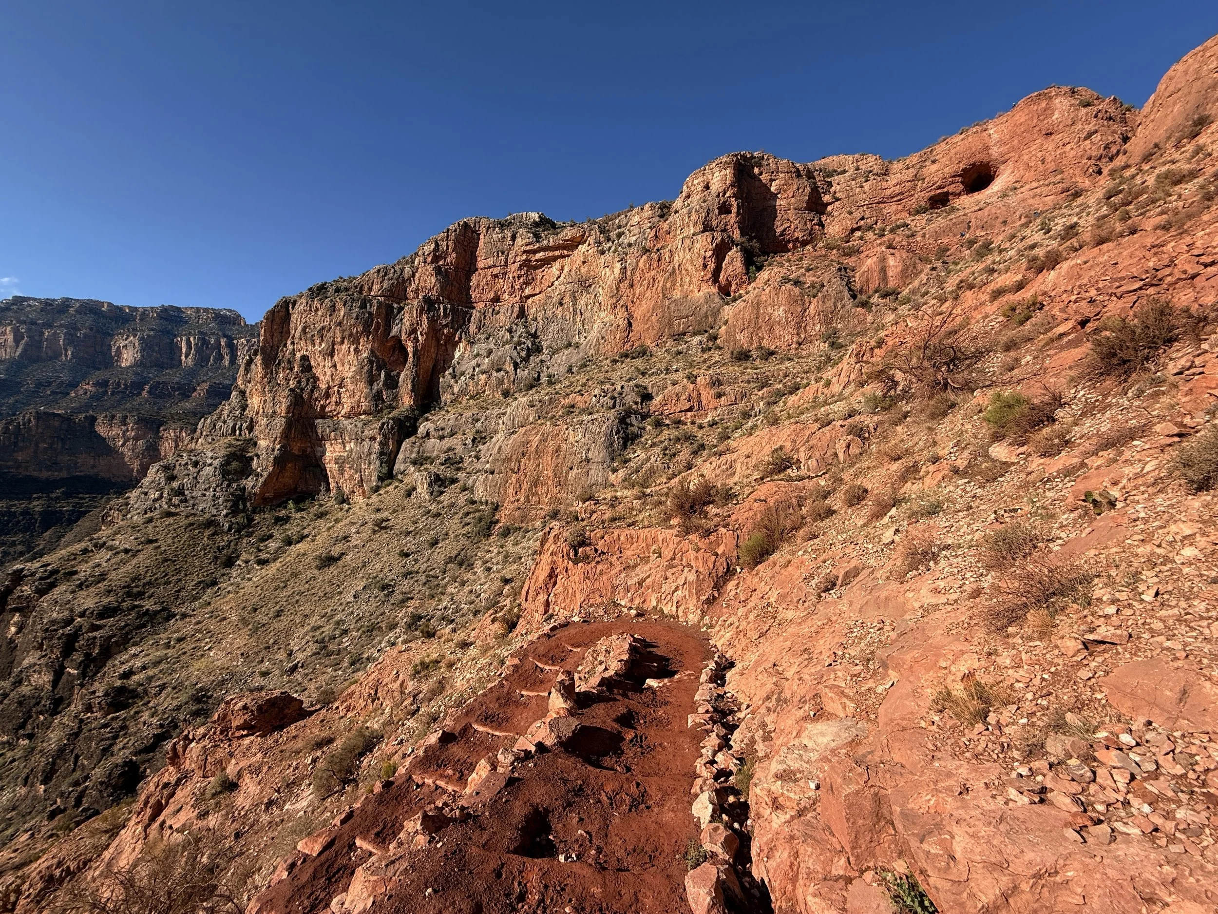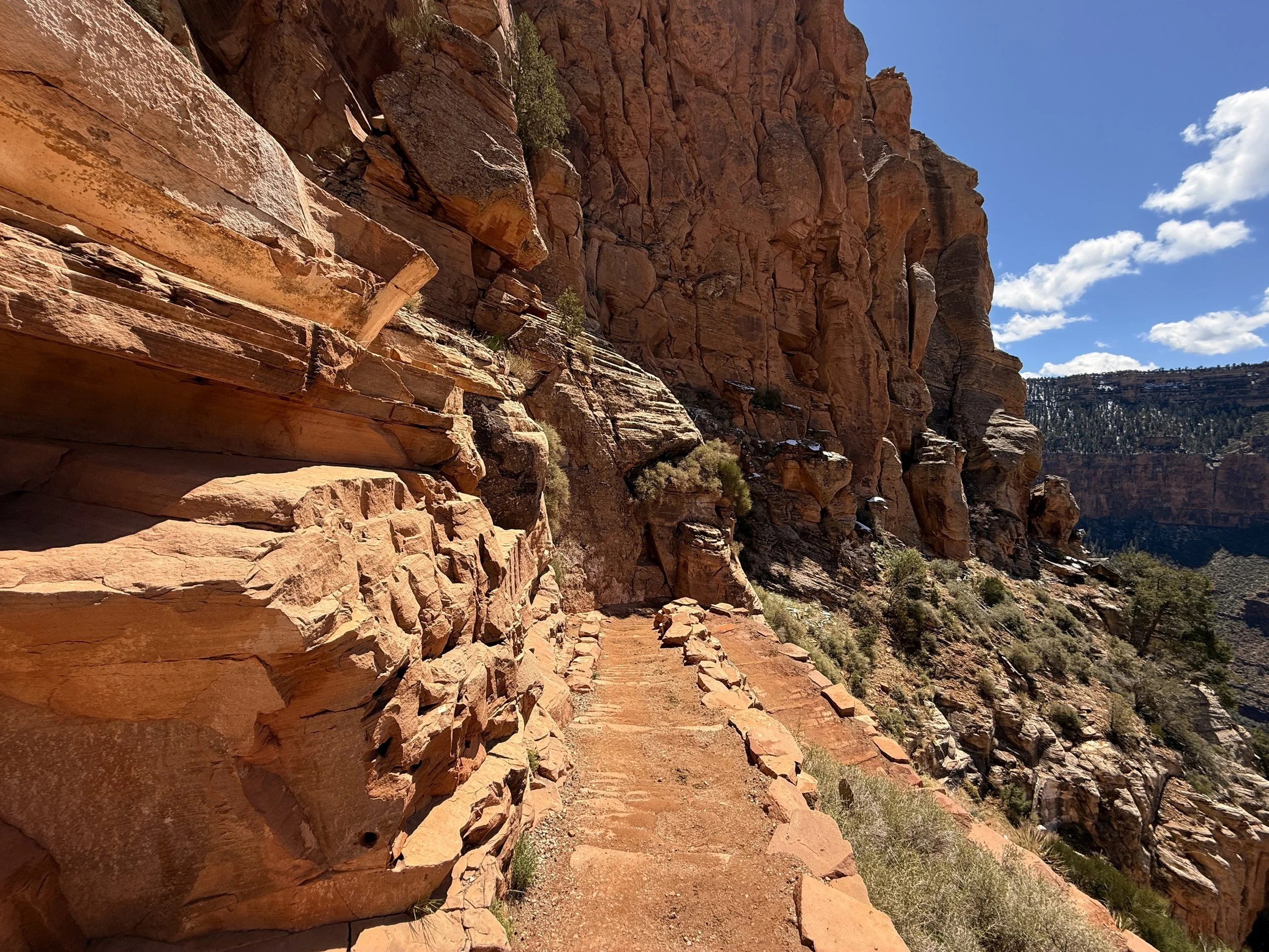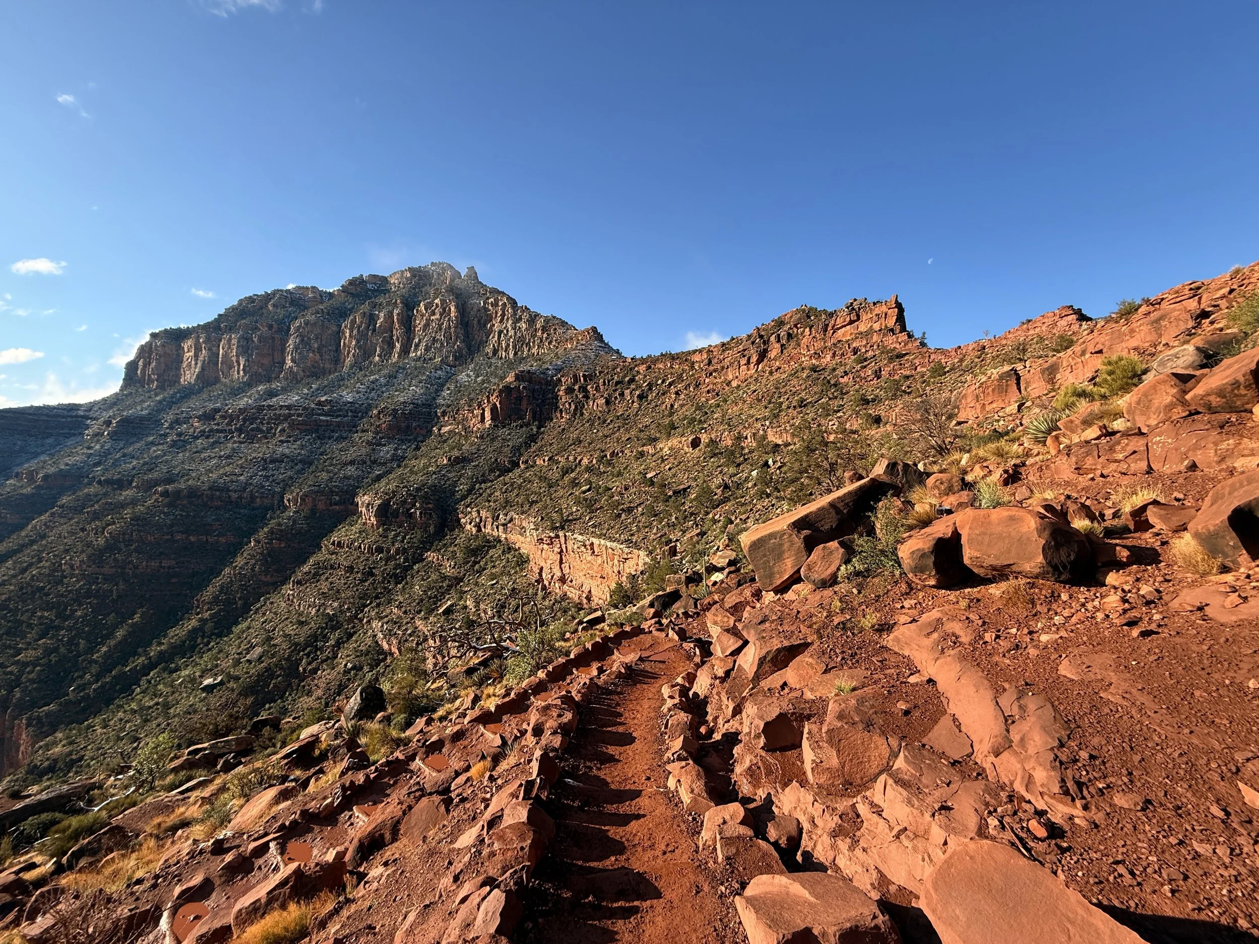 In my experience, this is where the North Rim started to feel closer, as the white Coconino sandstone layer atop the North Rim is the last section to climb.