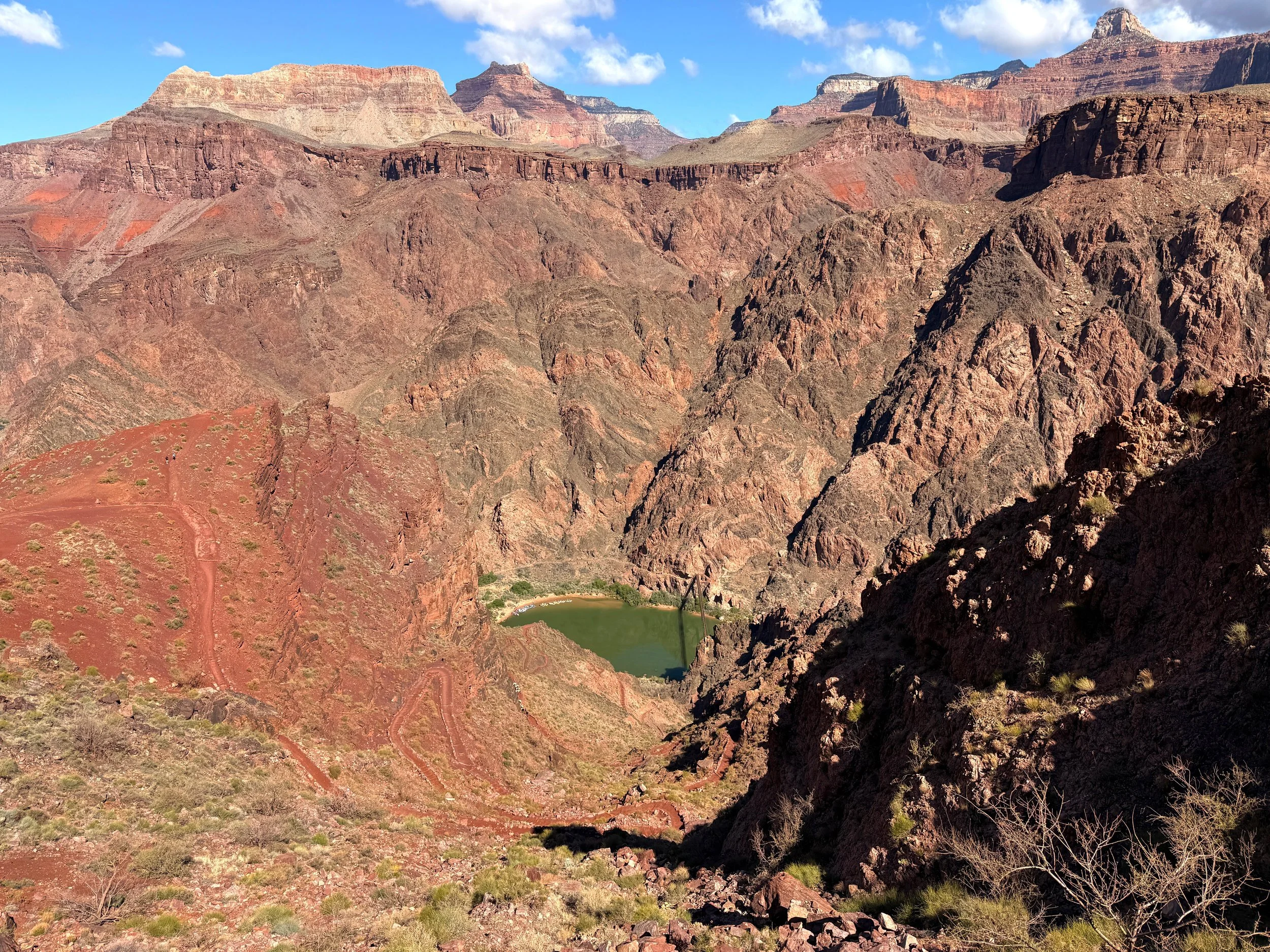 This is what we did on our second day at Bright Angel, which made for a nice day hike, as we found different viewpoints and hidden, calmer swimming holes in the Colorado River.