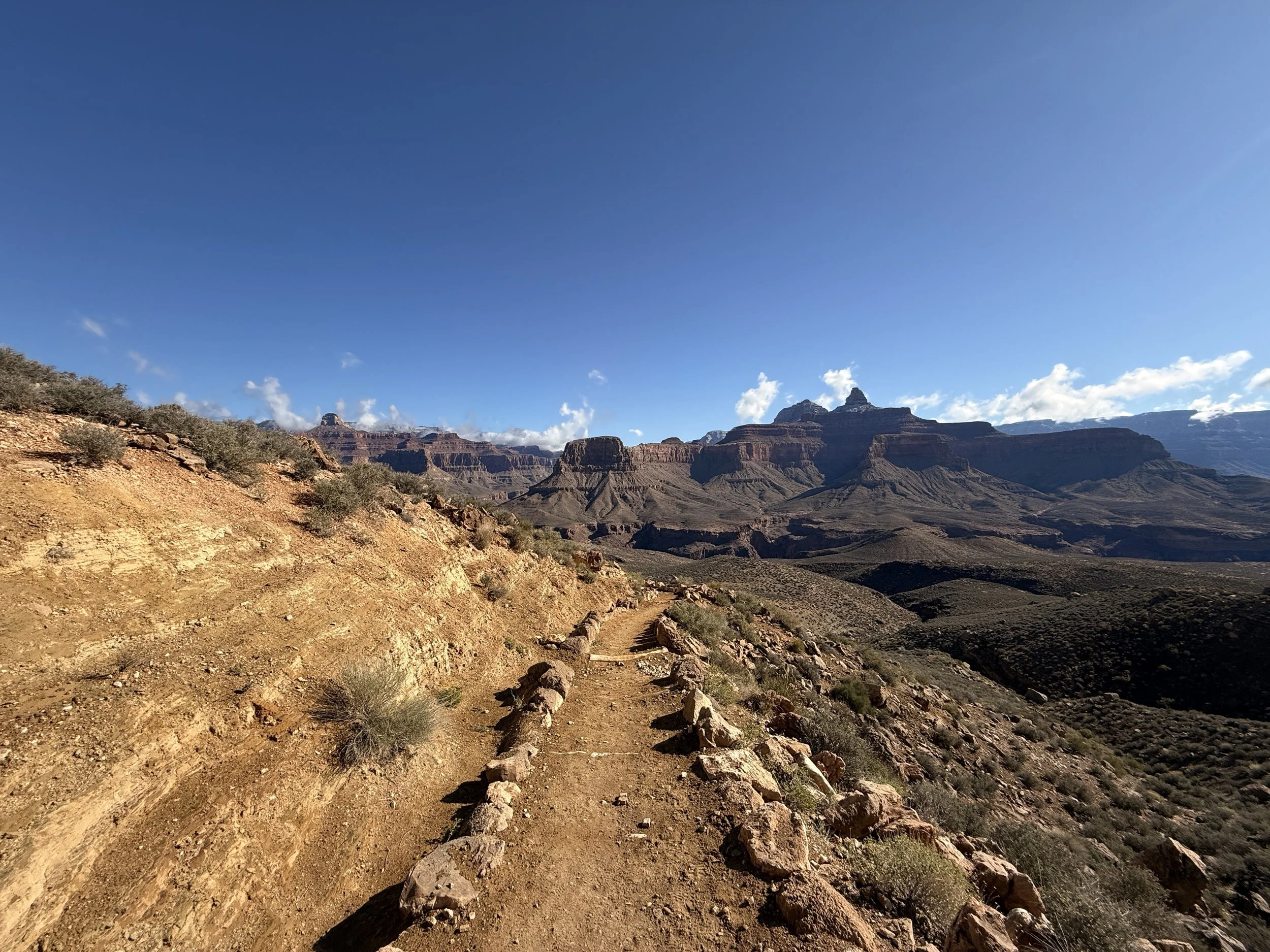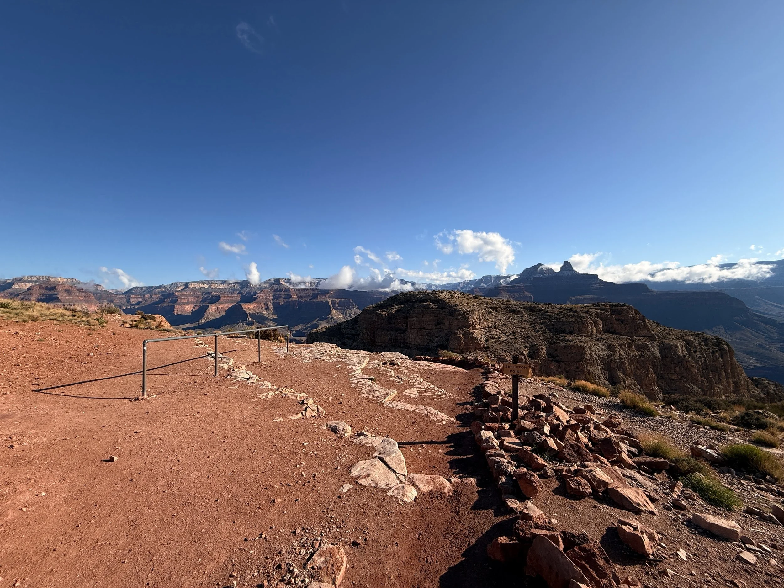 When the South Kaibab Trail turns to the left below O'Neill Butte, Skeleton Point can be seen in the distance for the first time!