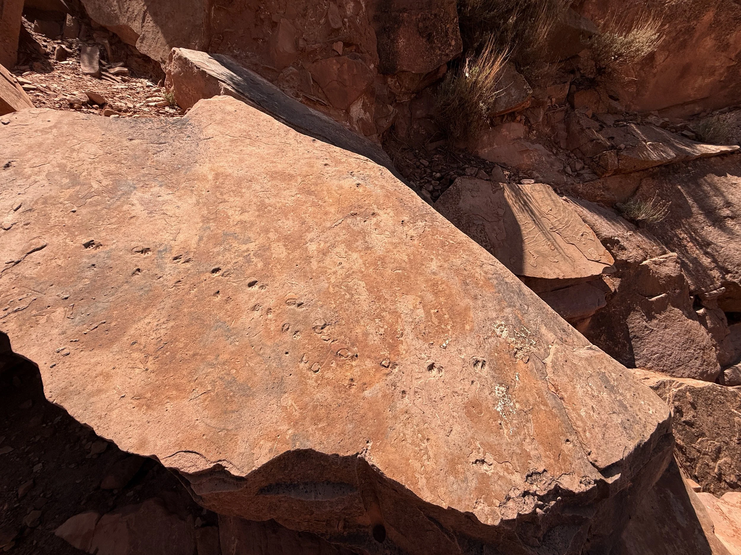 So I’ve been told, these markings on this rock are fossilized lizard footprints, which can be seen directly along the South Kaibab Trail, about 0.25 miles (0.4 km) above Cedar Ridge.