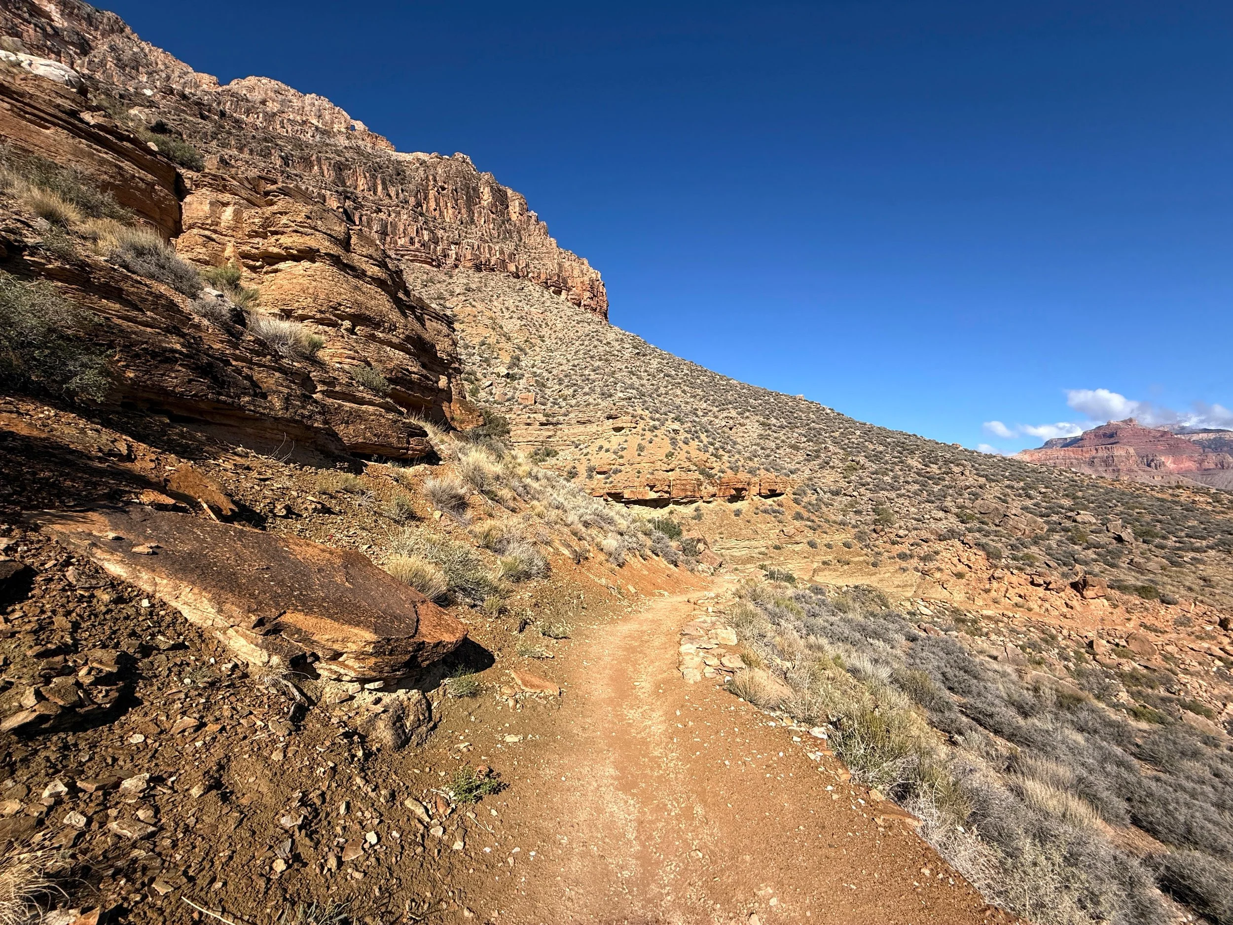 Rather, I recommend making your decision based on whether you would like to spend the night at Havasupai Gardens to break up the descent—similar to how Cottonwood Campground feels on the North Kaibab Trail—or if you would rather hike all the way to Bright Angel Campground/ Phantom Ranch in one day via the South Kaibab Trail.