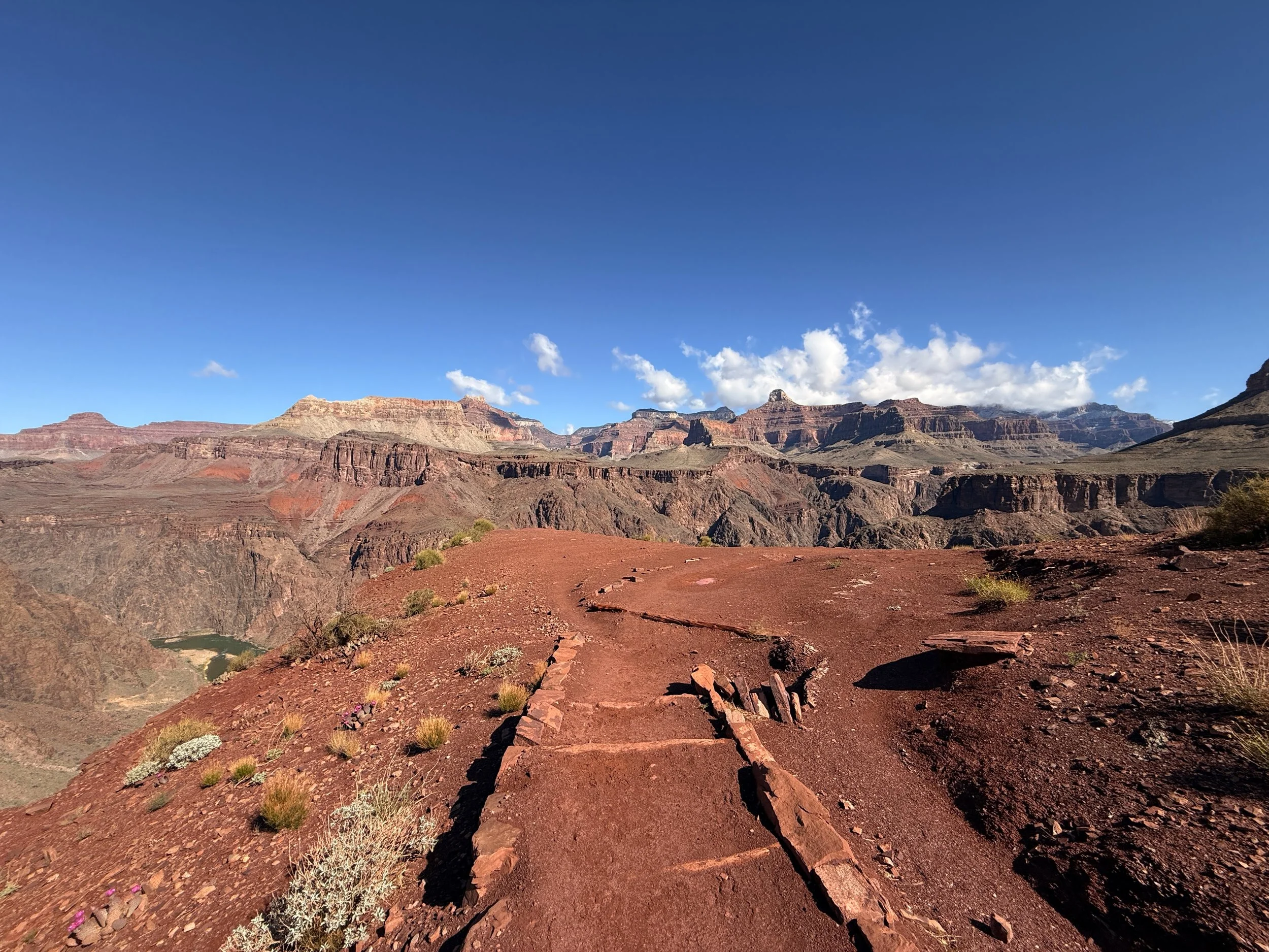 There are a few random points along the South Kaibab Trail where the Colorado River is visible, but below Skeleton Point, views of the river become more and more frequent compared to the sections above.