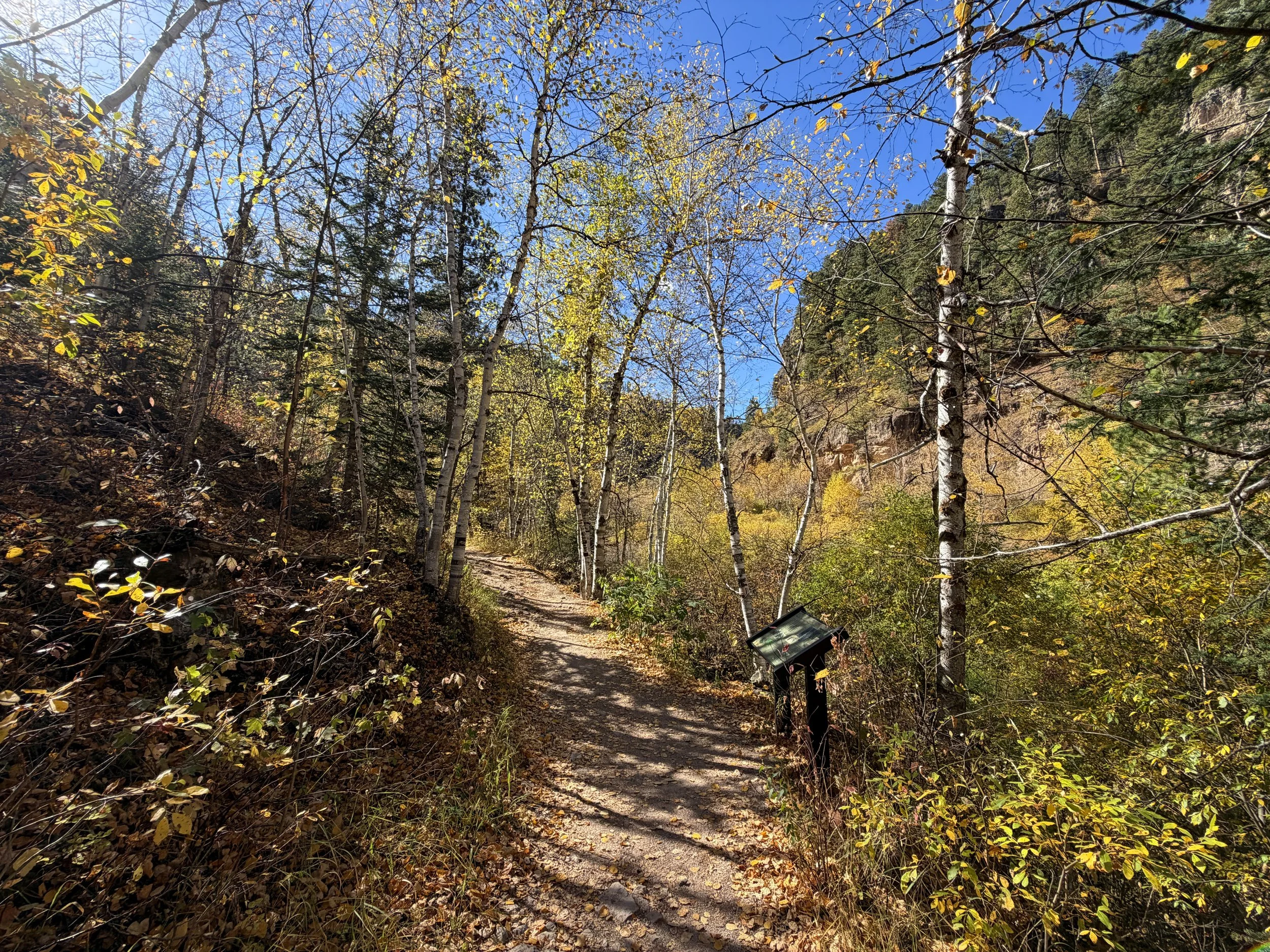 This is where the Roughlock Falls Trail begins curving around the west side of the large horseshoe bend in the canyon, and it’s a nice sign that the split for both Upper and Lower Roughlock Falls is not far ahead!