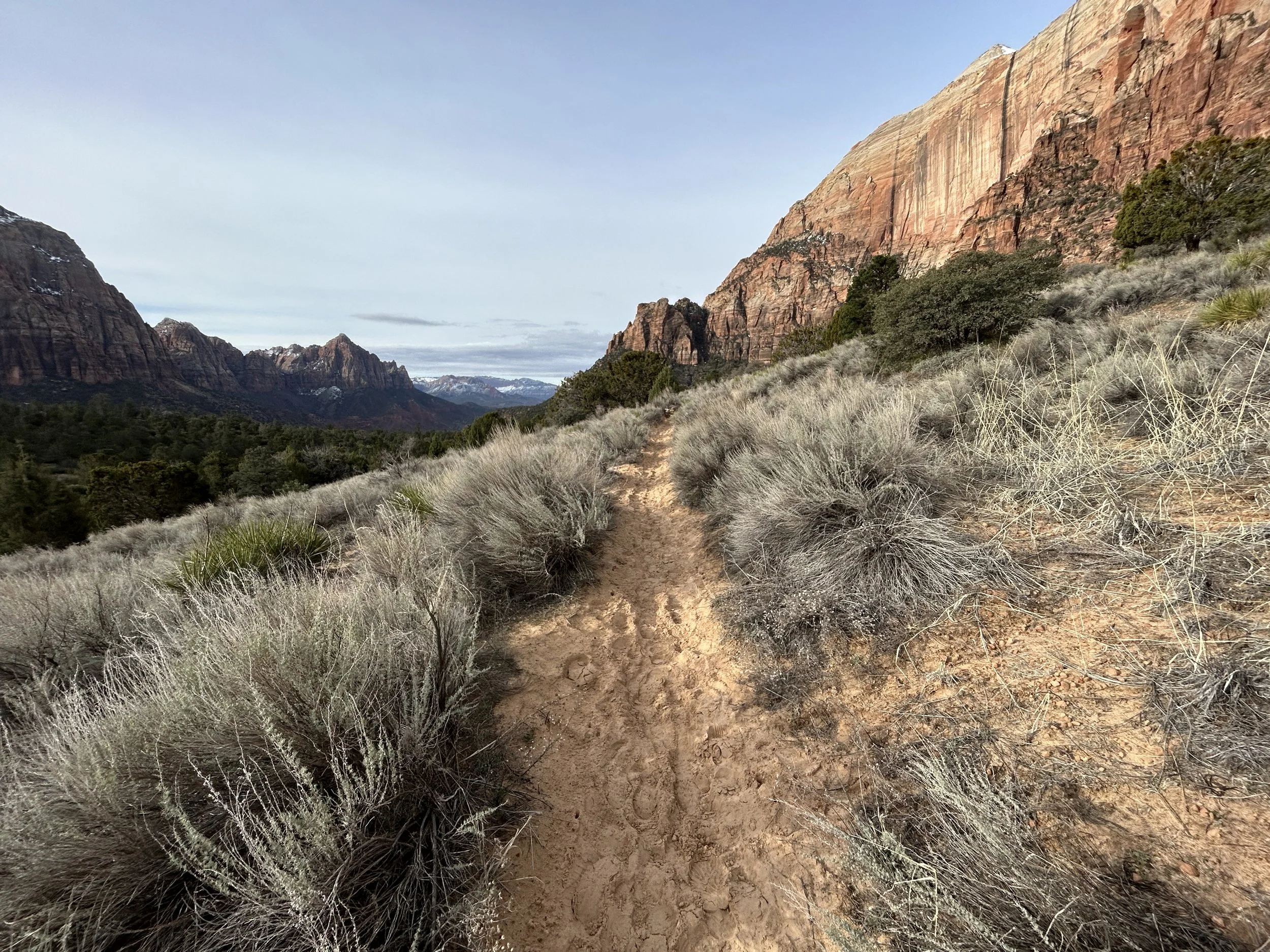 This is all to say that I see the Sand Bench Loop as the perfect casual adventure when you’re looking to escape the busyness of other areas in Springdale and Zion Canyon—especially on a cool, cloudy day, as shown in the photo below!