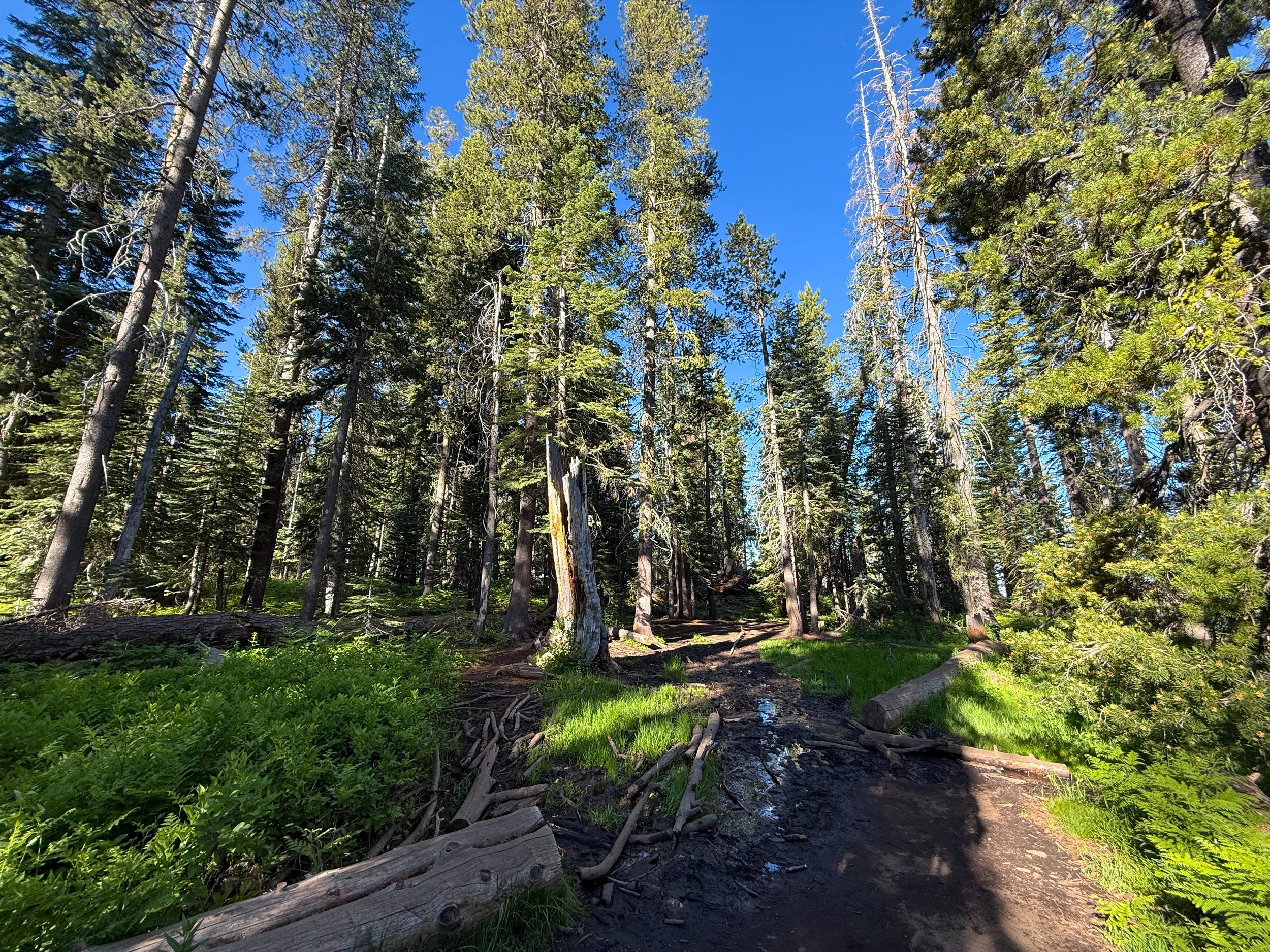 Low-lying, marshy areas just like this can be particularly muddy on the Taft Point Trail, especially during peak spring/ early summer snowmelt.
