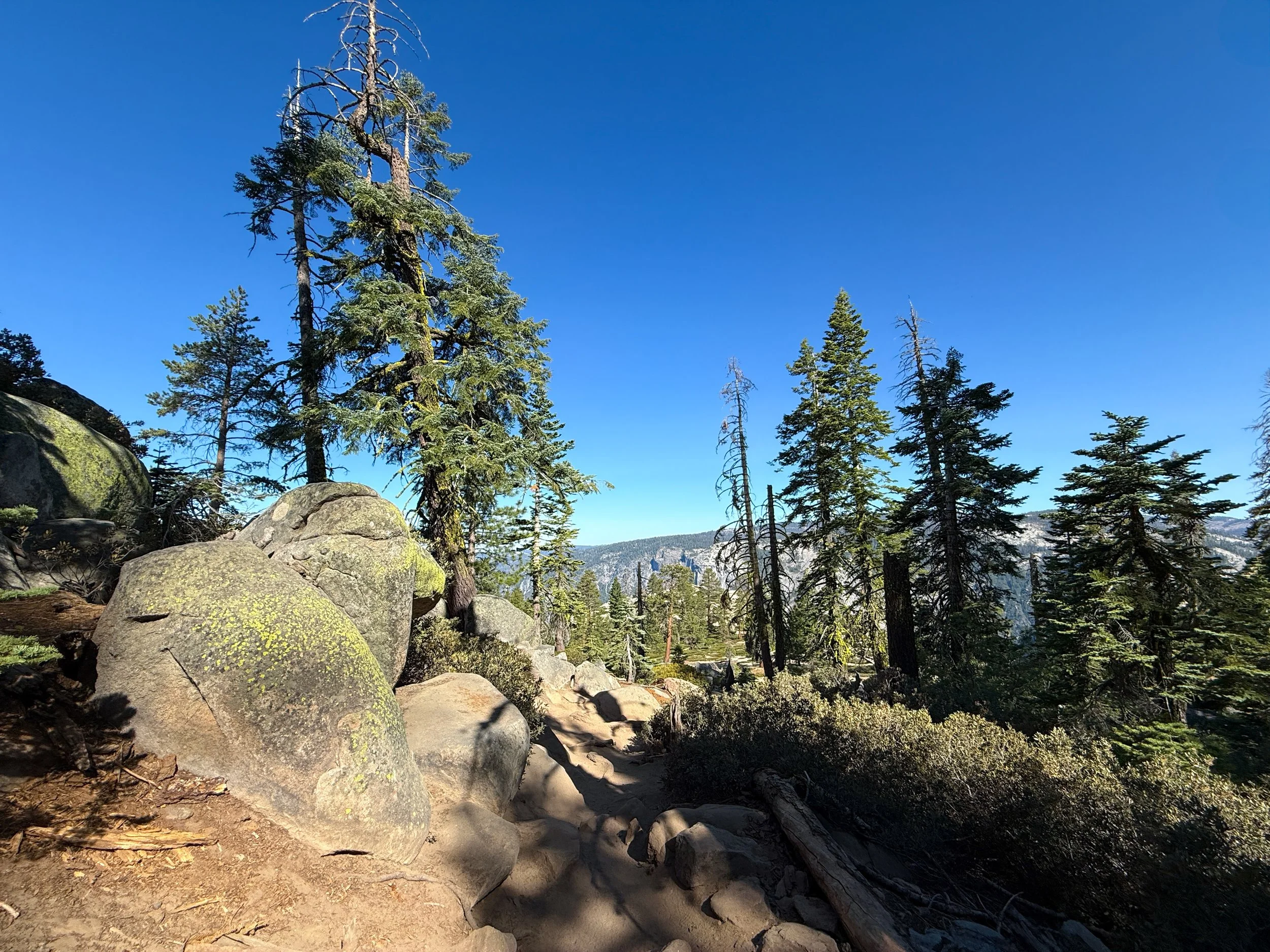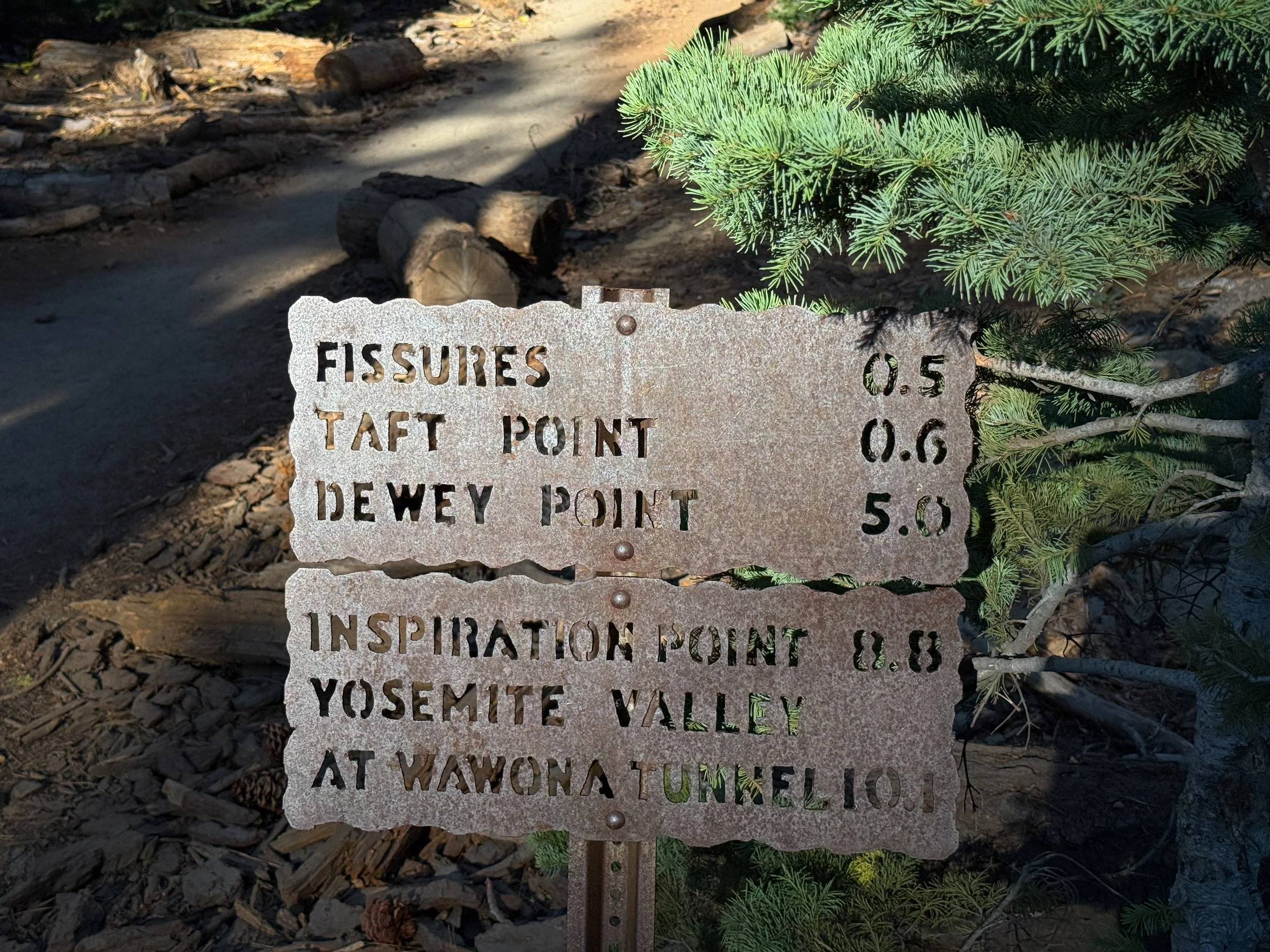 When there is just 0.2 miles (0.3 km) left before the Fissures, the Taft Point Trail will begin to descend gradually toward the rim of Yosemite Valley.