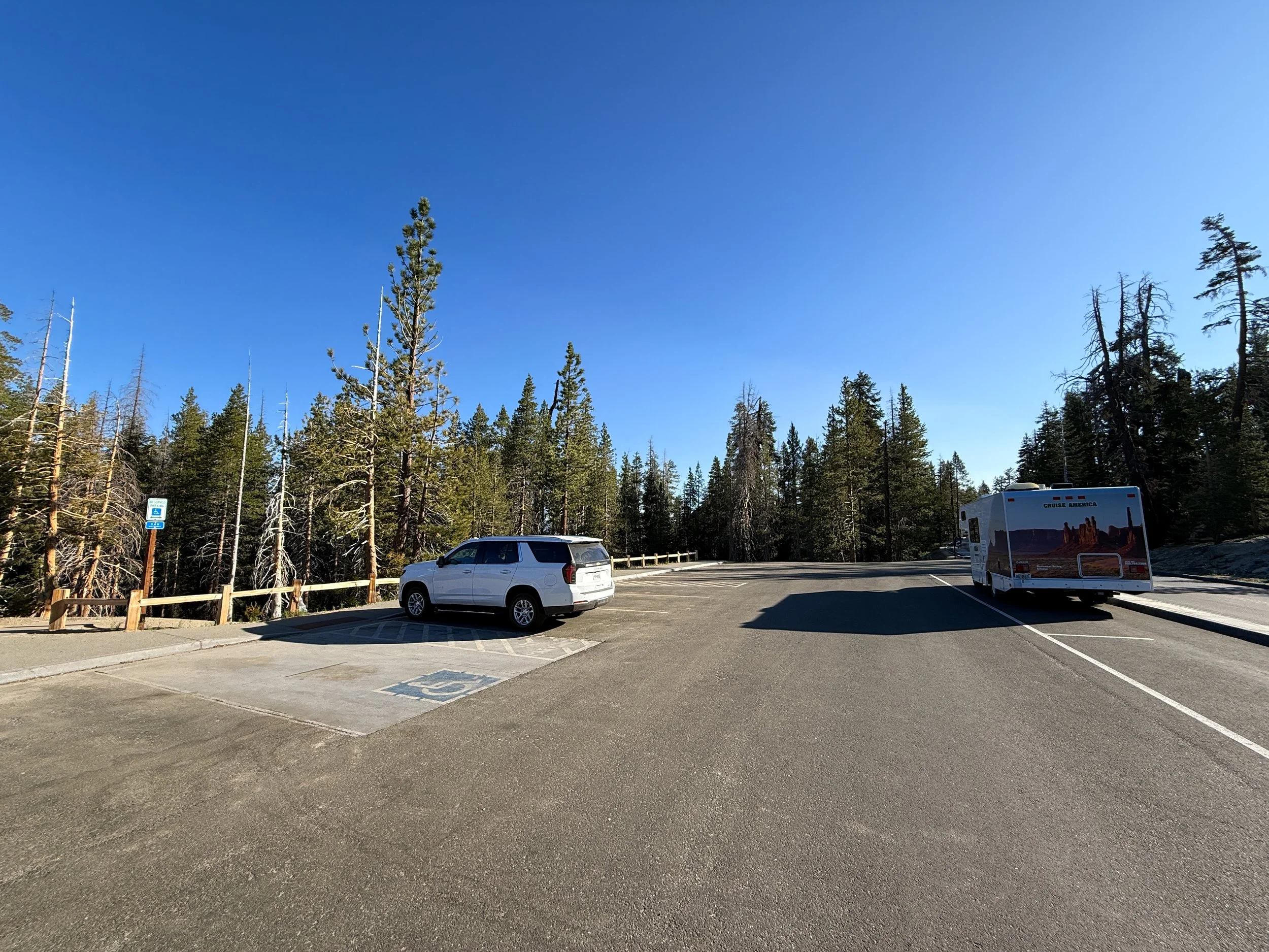 Parking for the Taft Point Trail is located in one of two parking areas that serve both Taft Point and the Sentinel Dome Trail, with the southern parking area being the closer of the two to the actual trail.