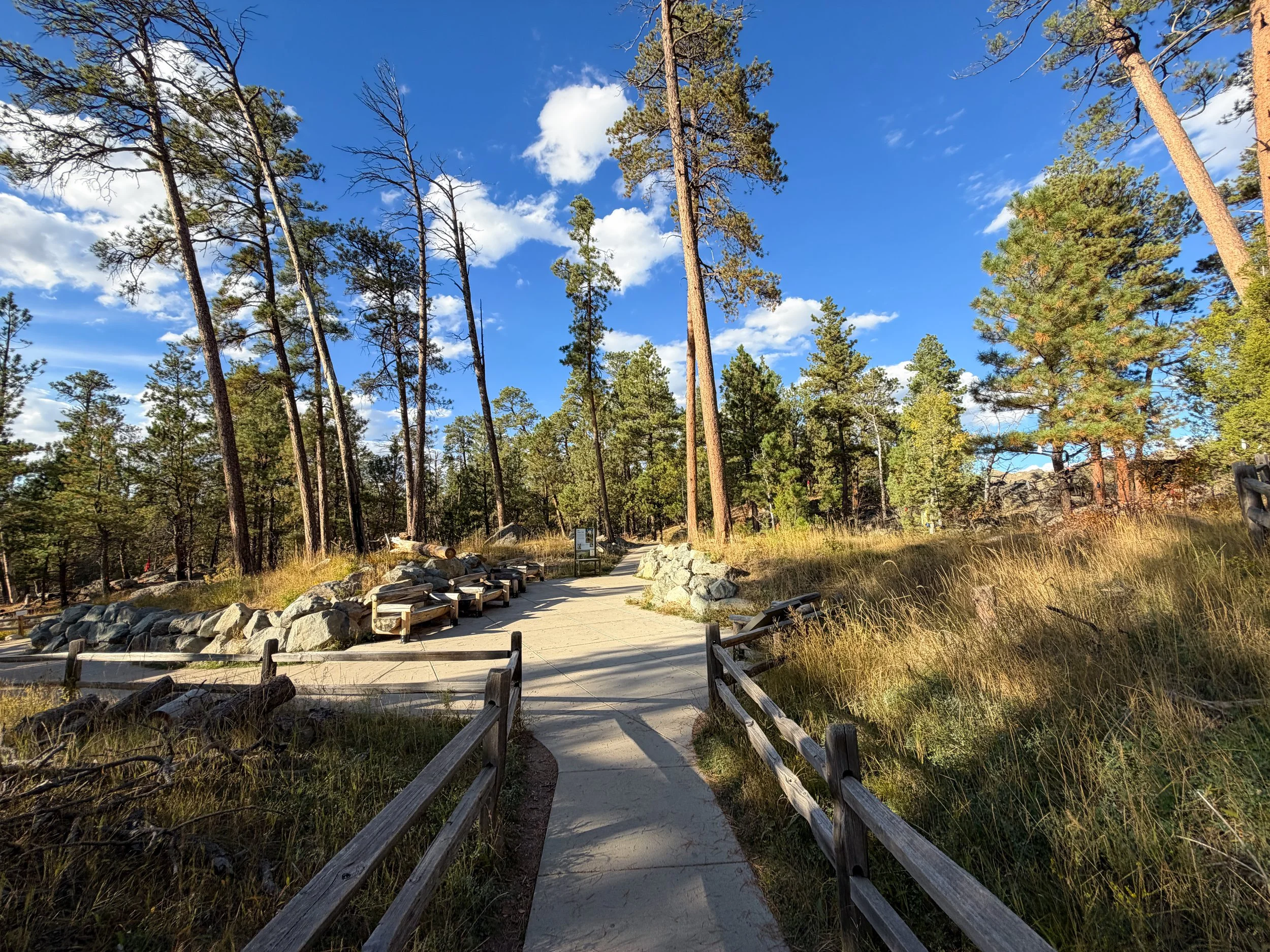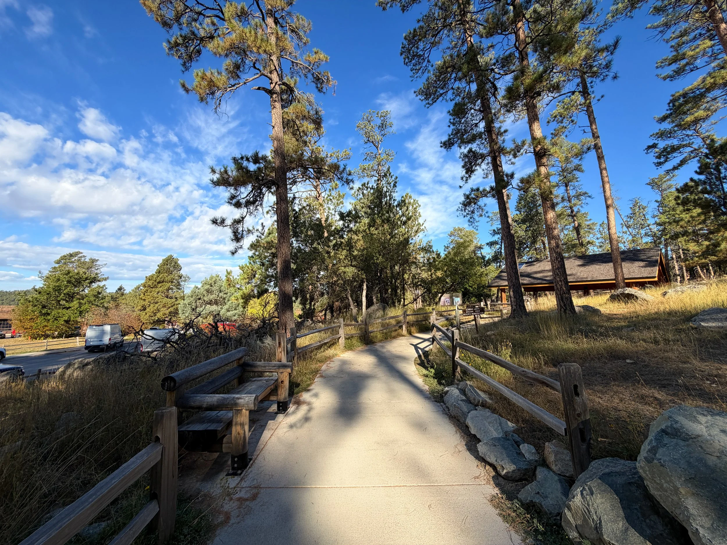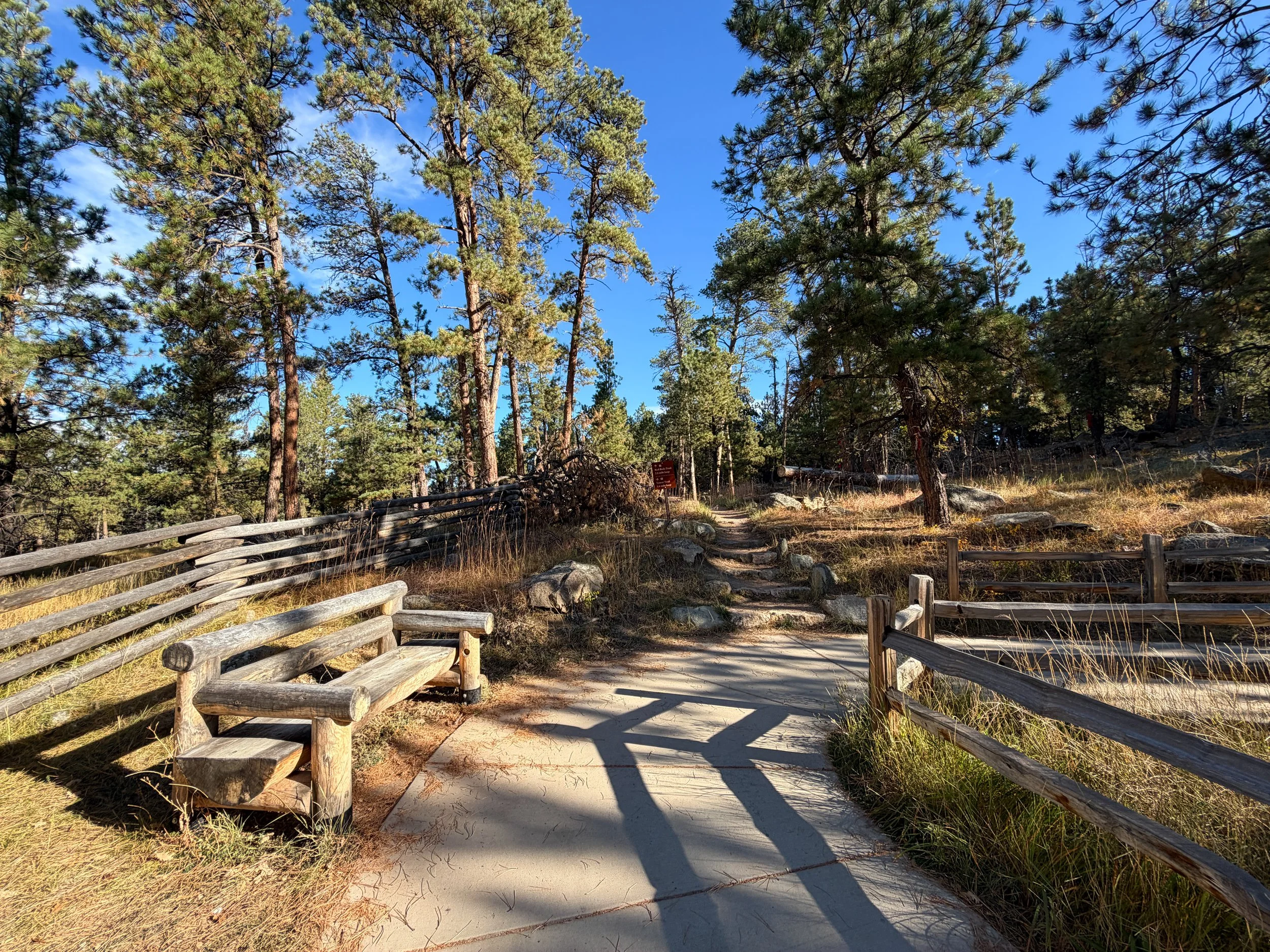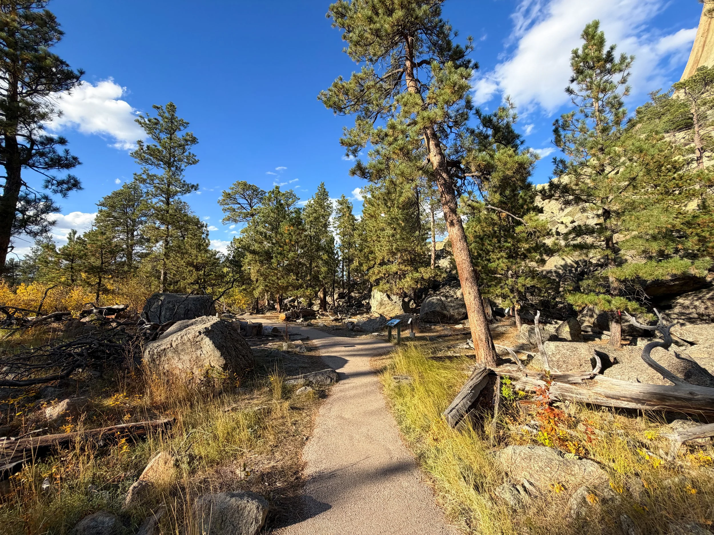It is here that visitors begin a gradual 0.1-mile (0.2 km) uphill hike to the start of the Devils Tower Loop, just up the hill.
