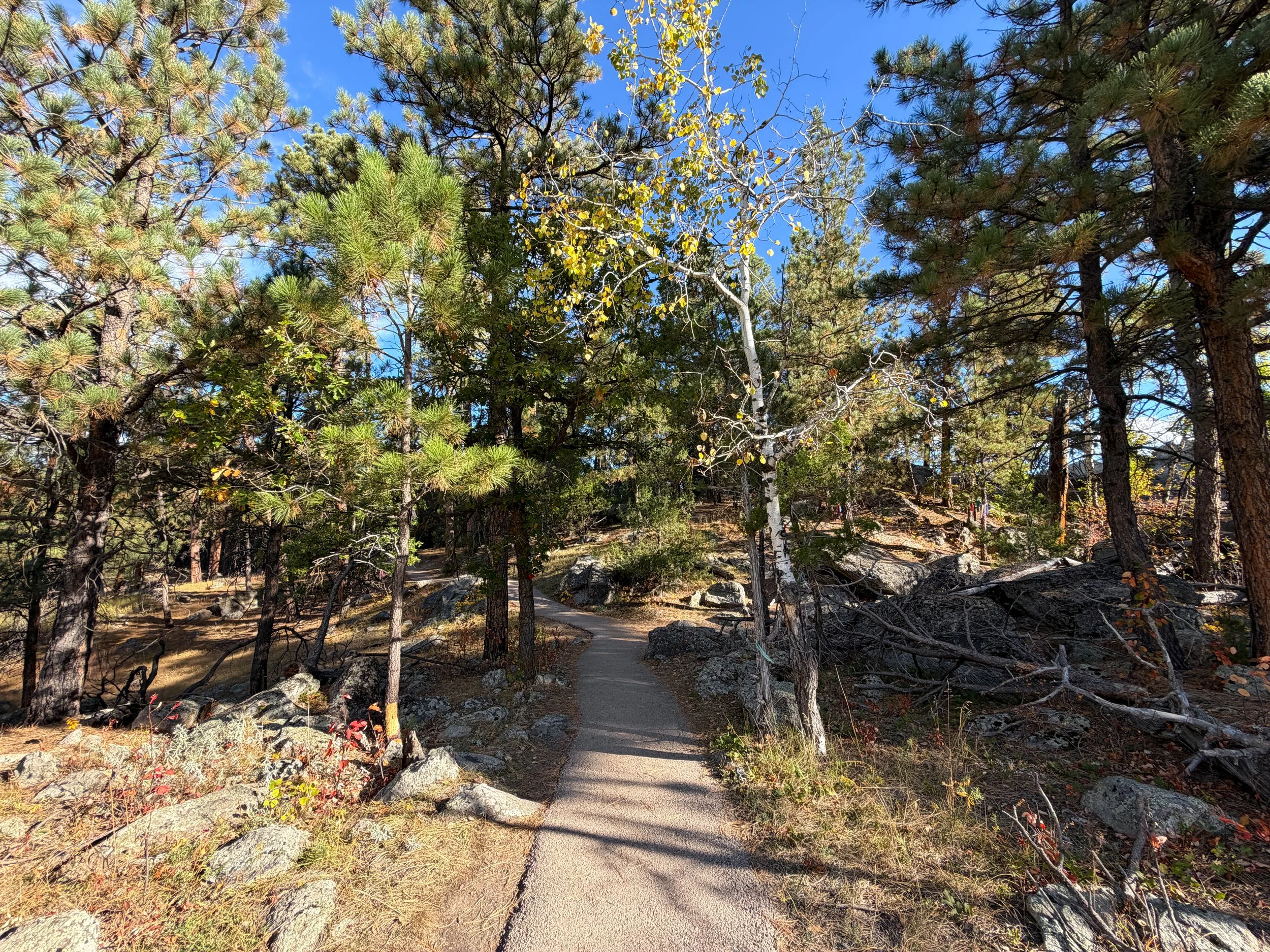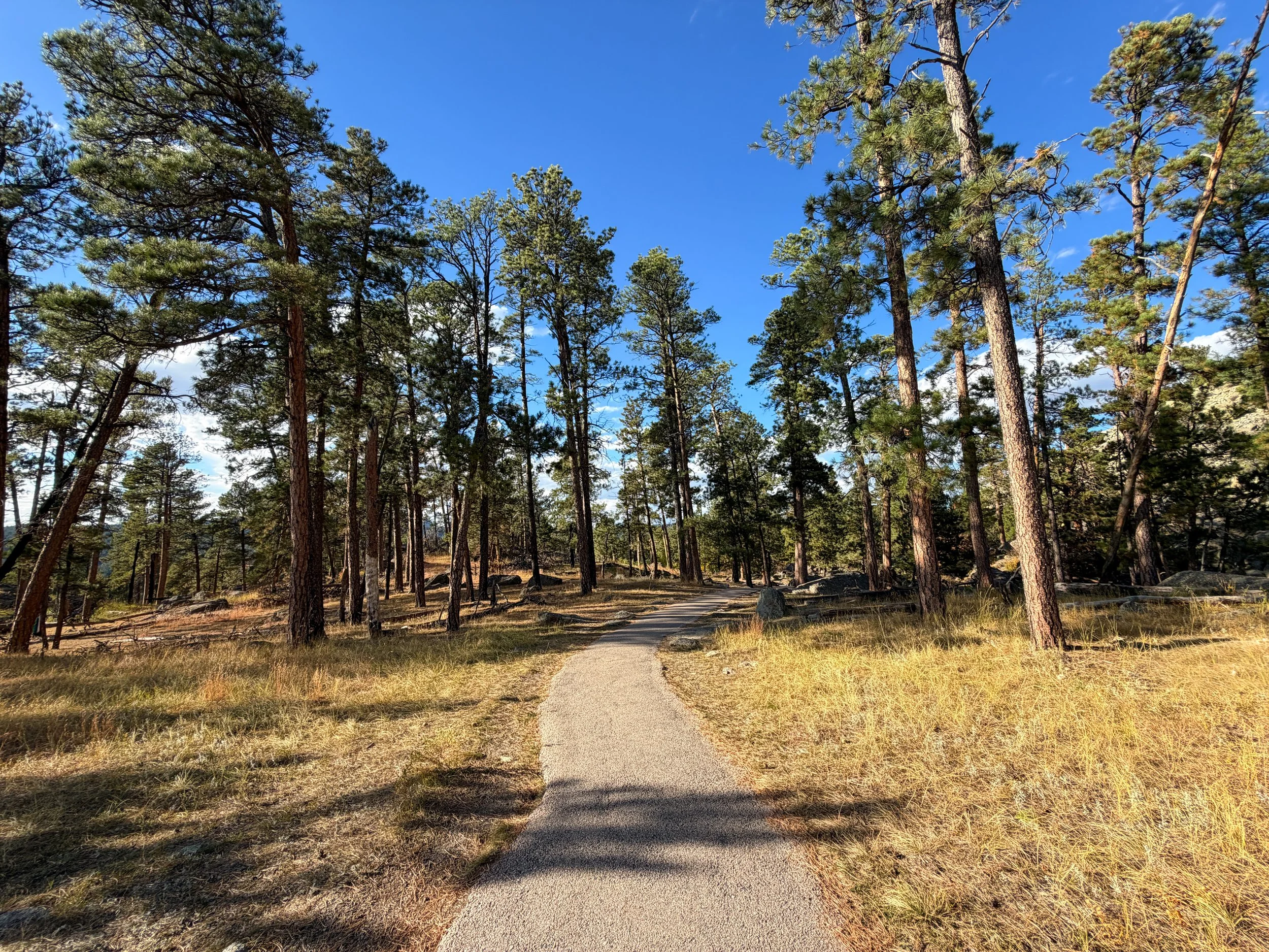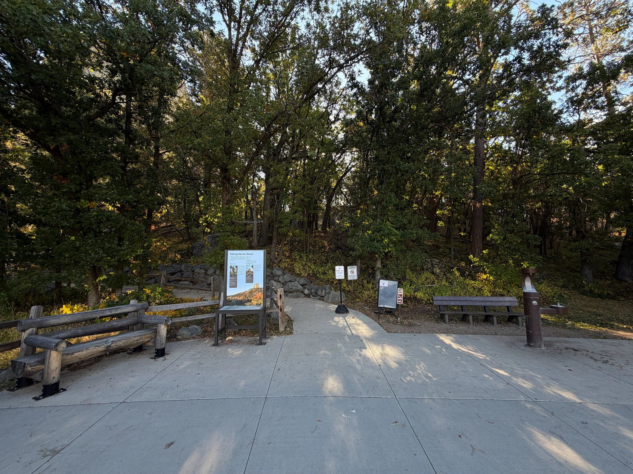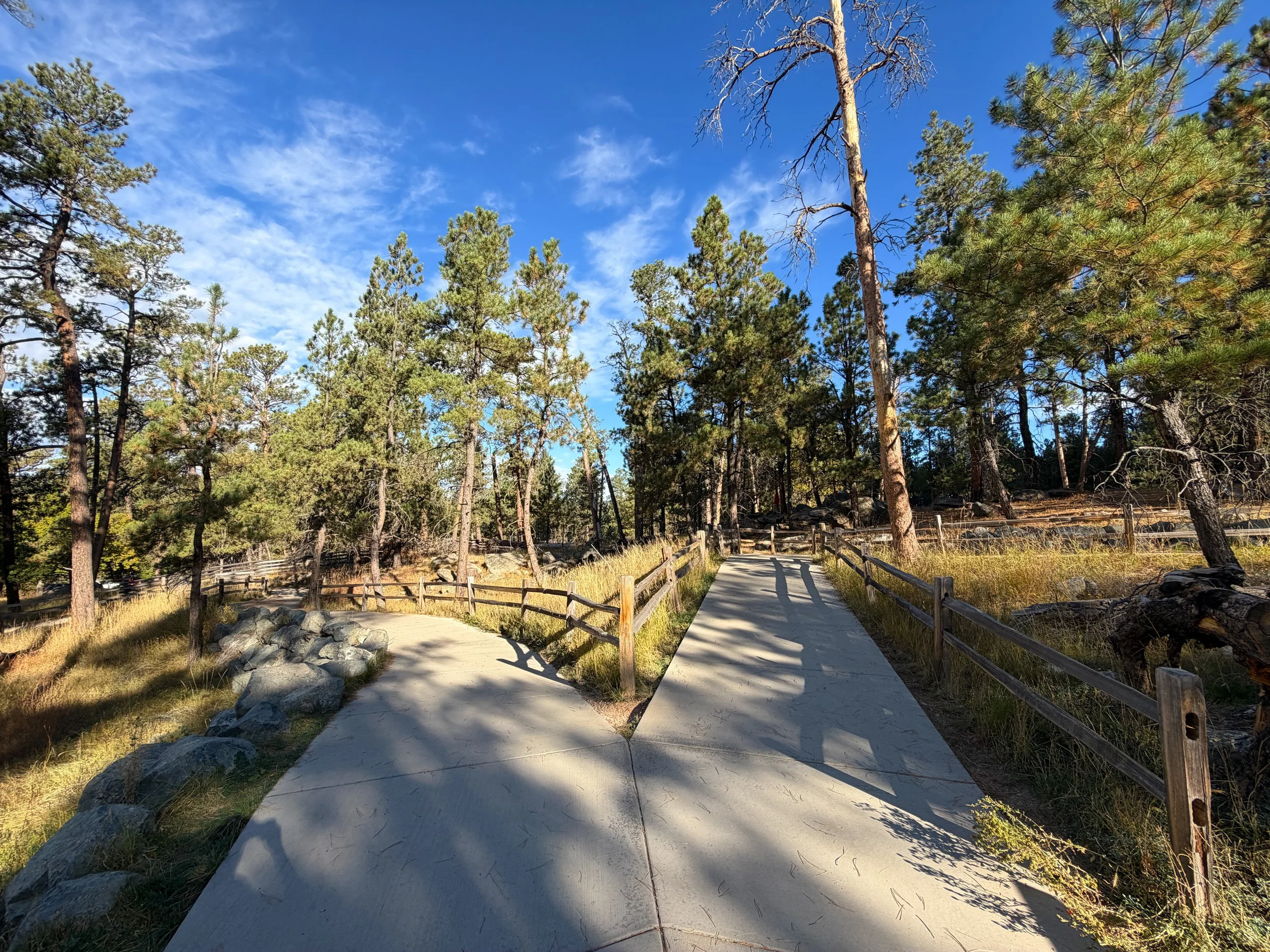 It is here that visitors begin a gradual 0.1-mile (0.2 km) uphill hike to the start of the Devils Tower Loop, just up the hill.