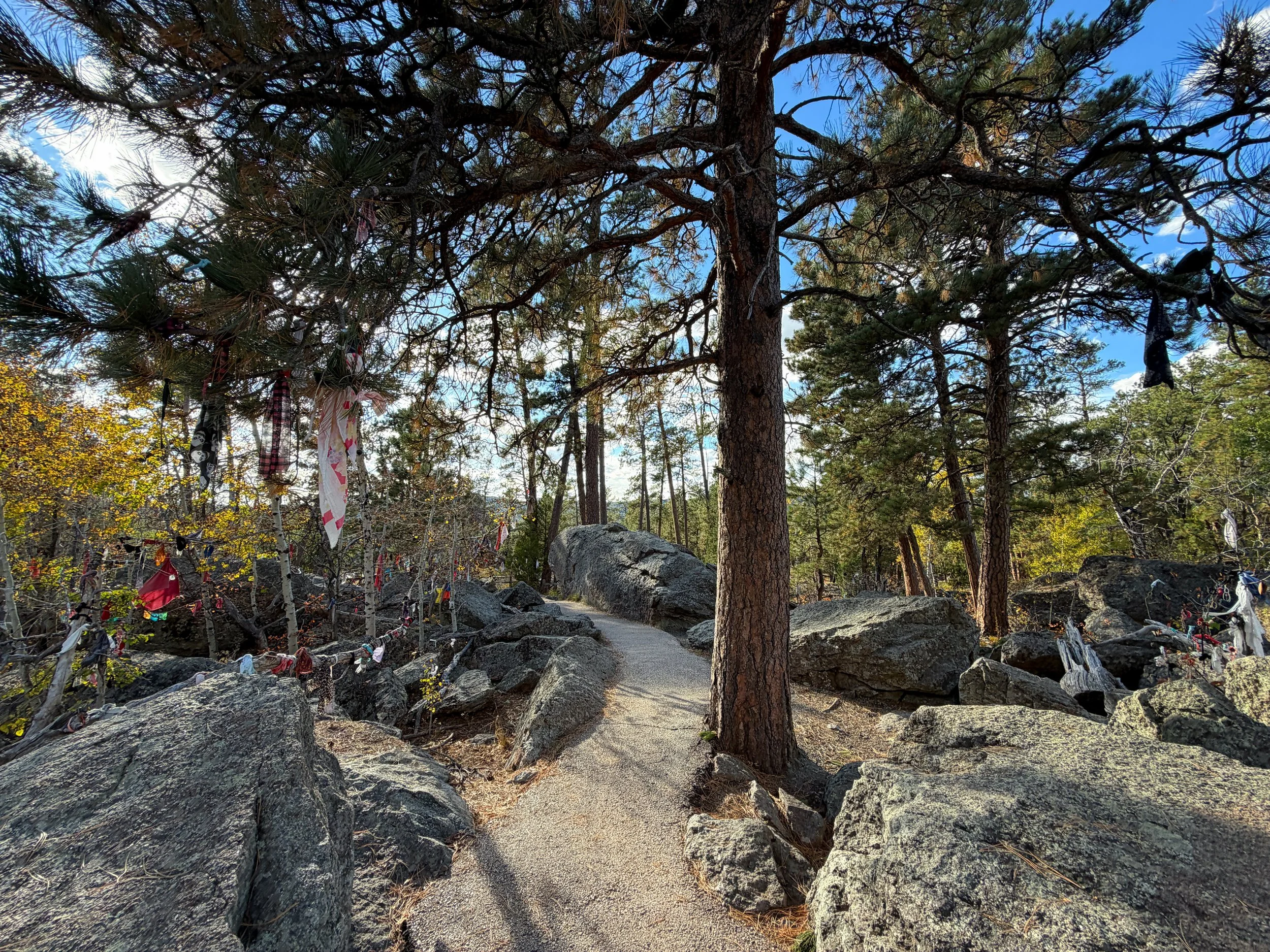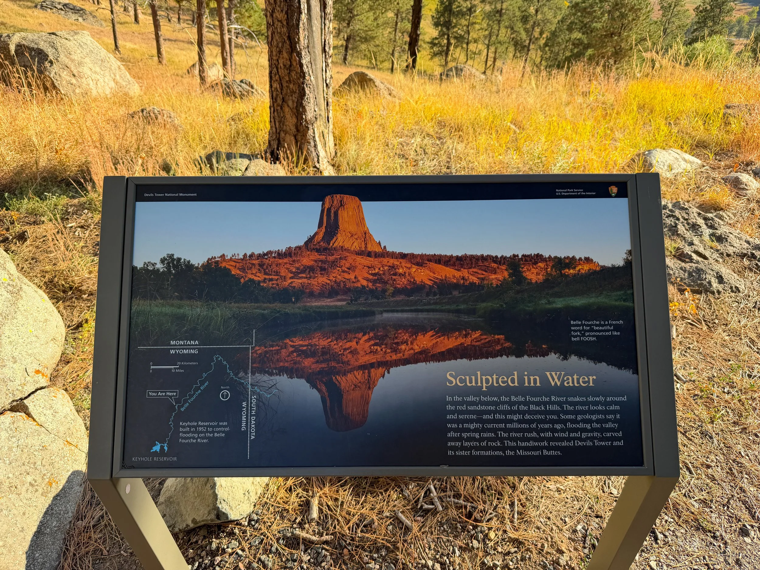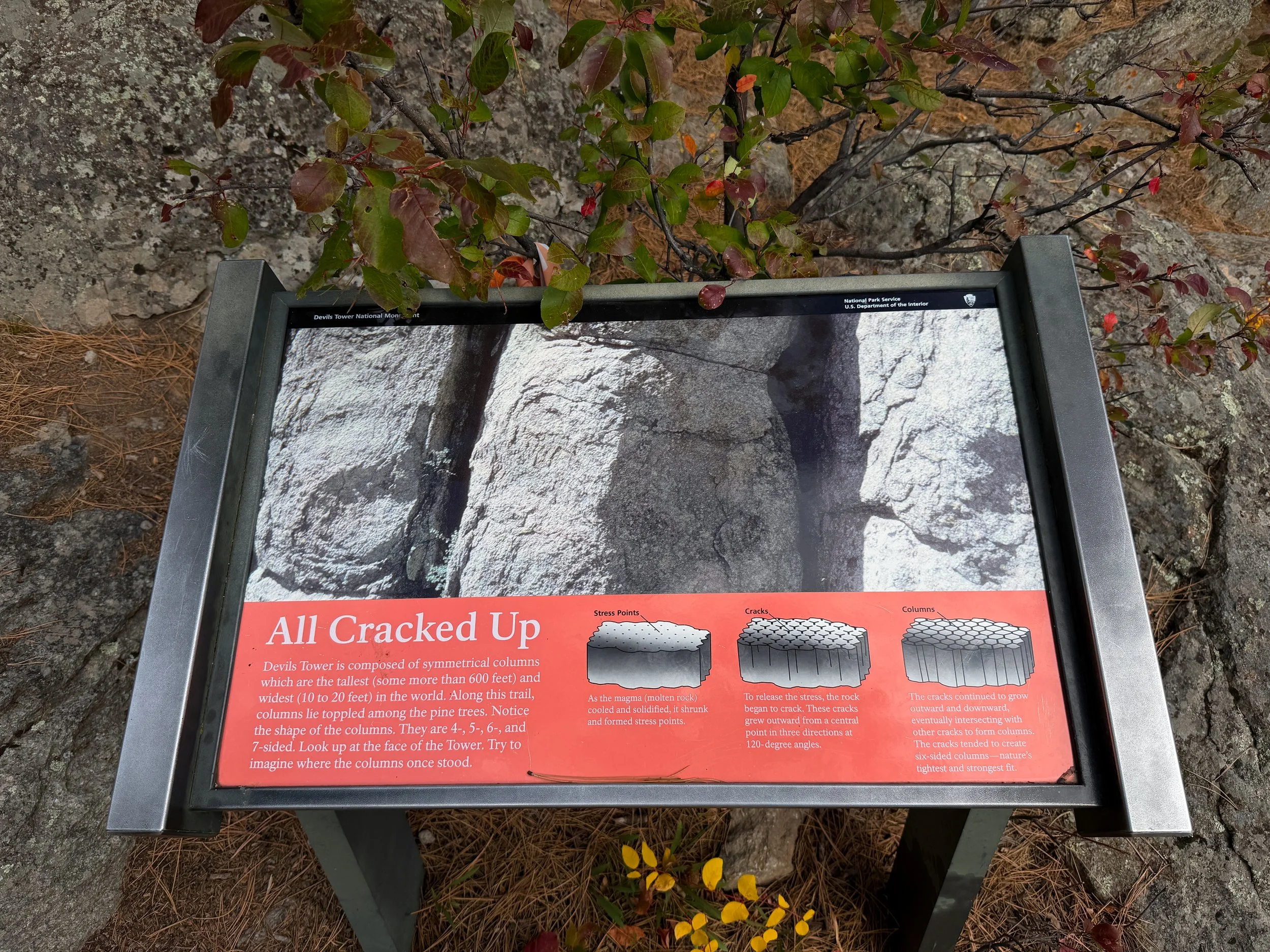 The halfway point is located along the eastern side of Devils Tower, and it means there is roughly 0.8 miles (1.3 km) left to return to the beginning of the loop.