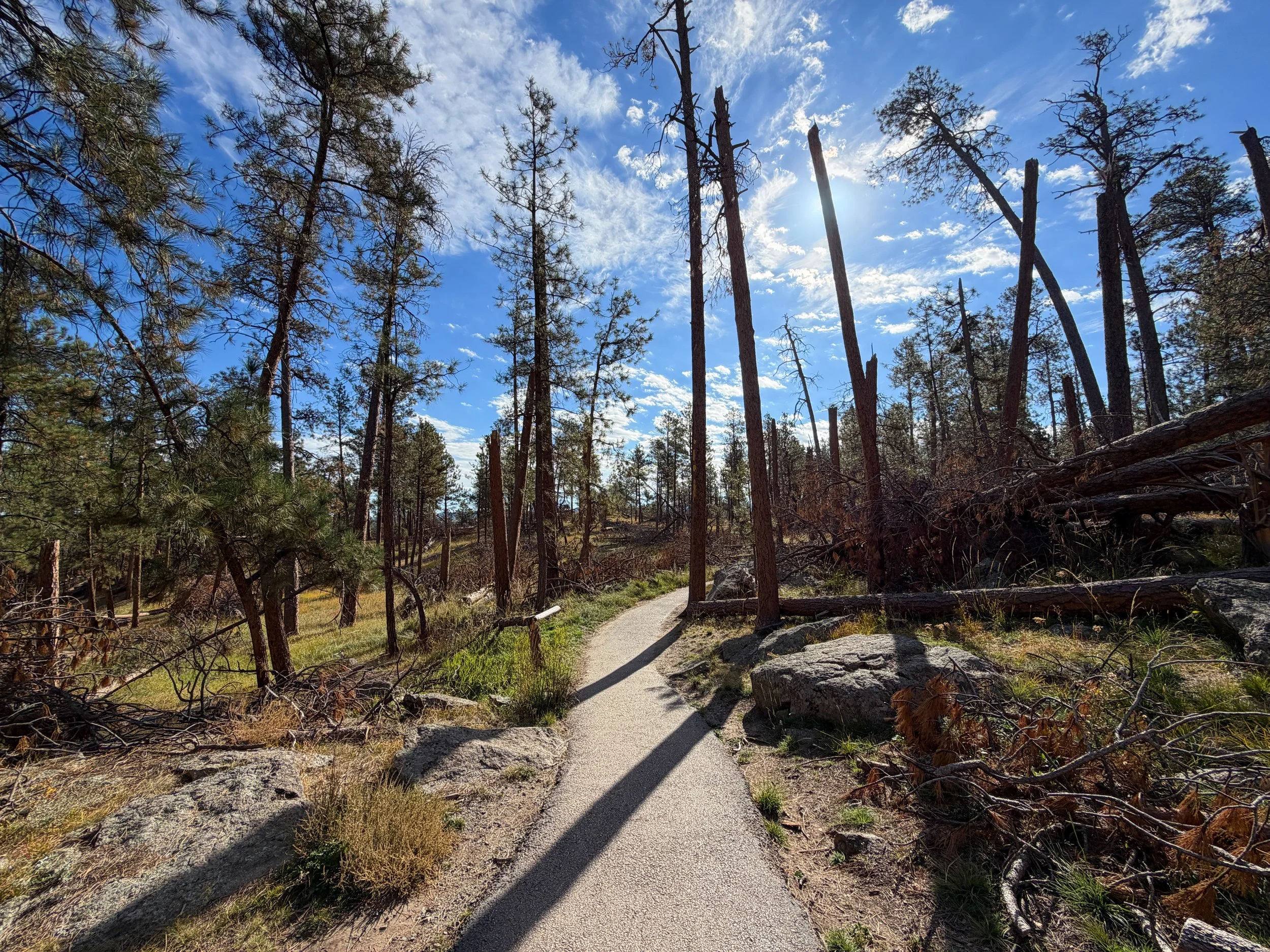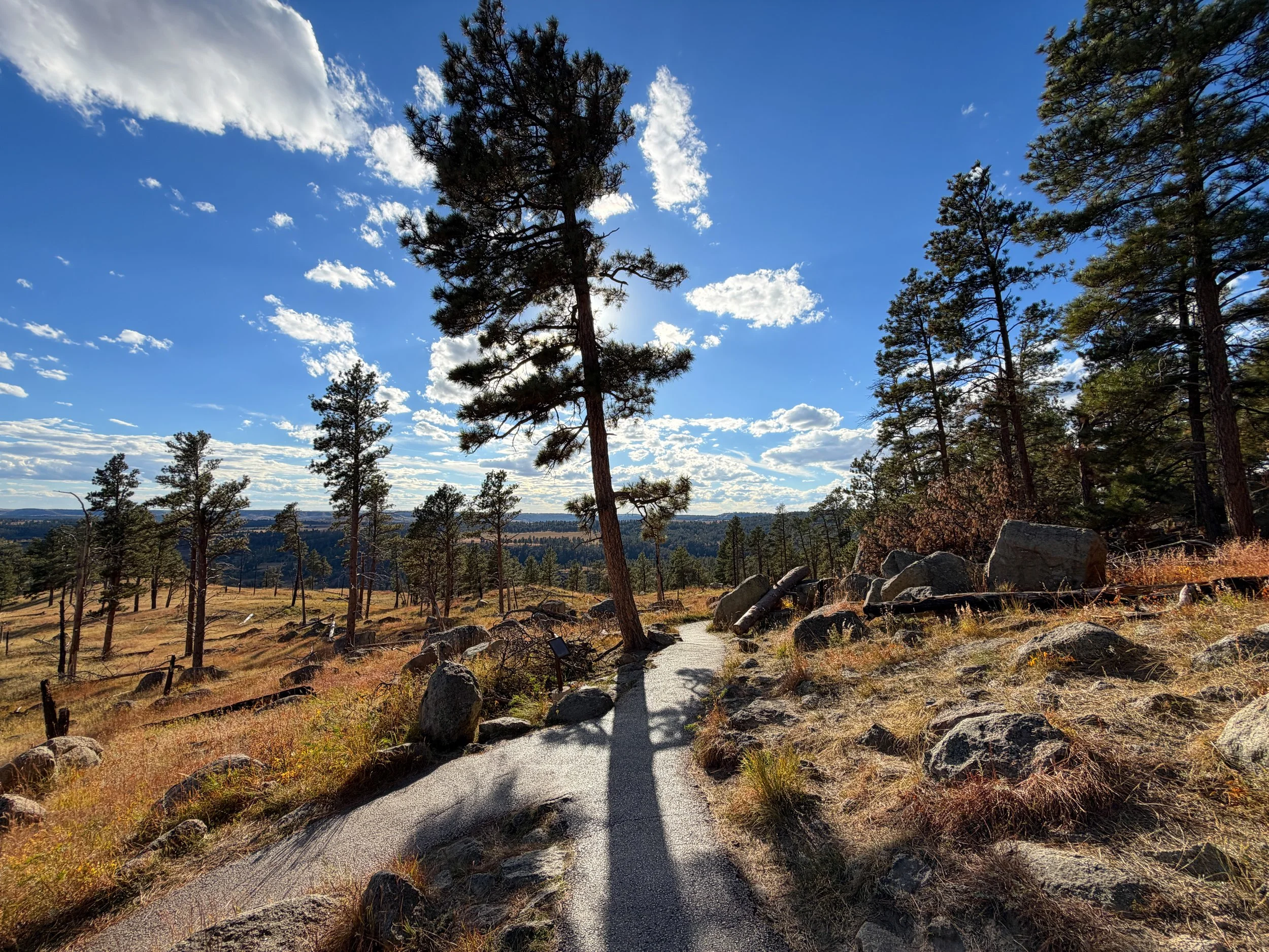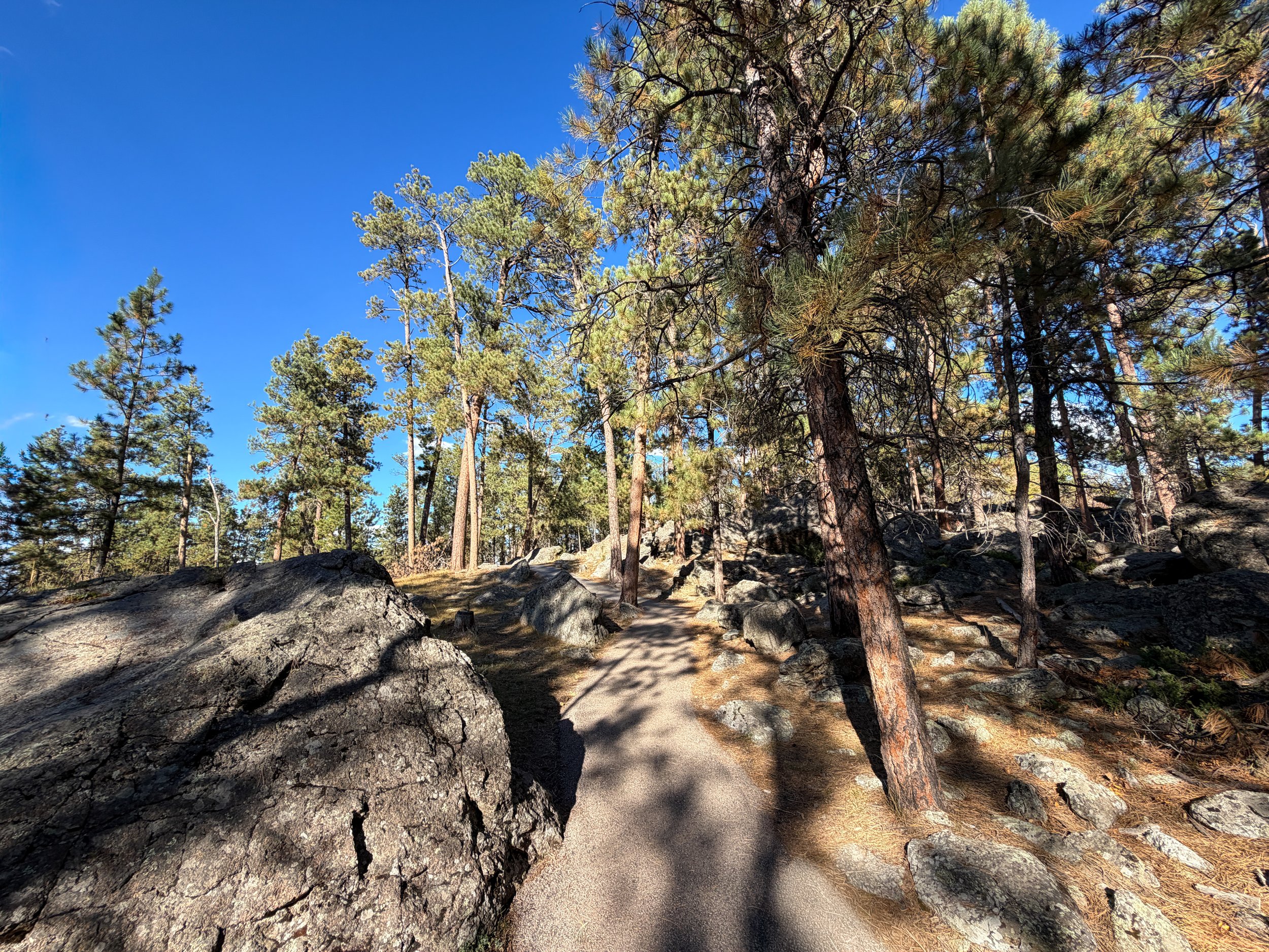 I always like to say that Ponderosa Pines are not known for providing the best shade, which is you may want to consider hiking in a hooded sun shirt, especially if you plan to explore other areas like Joyner Ridge when visiting Devils Tower National Monument.