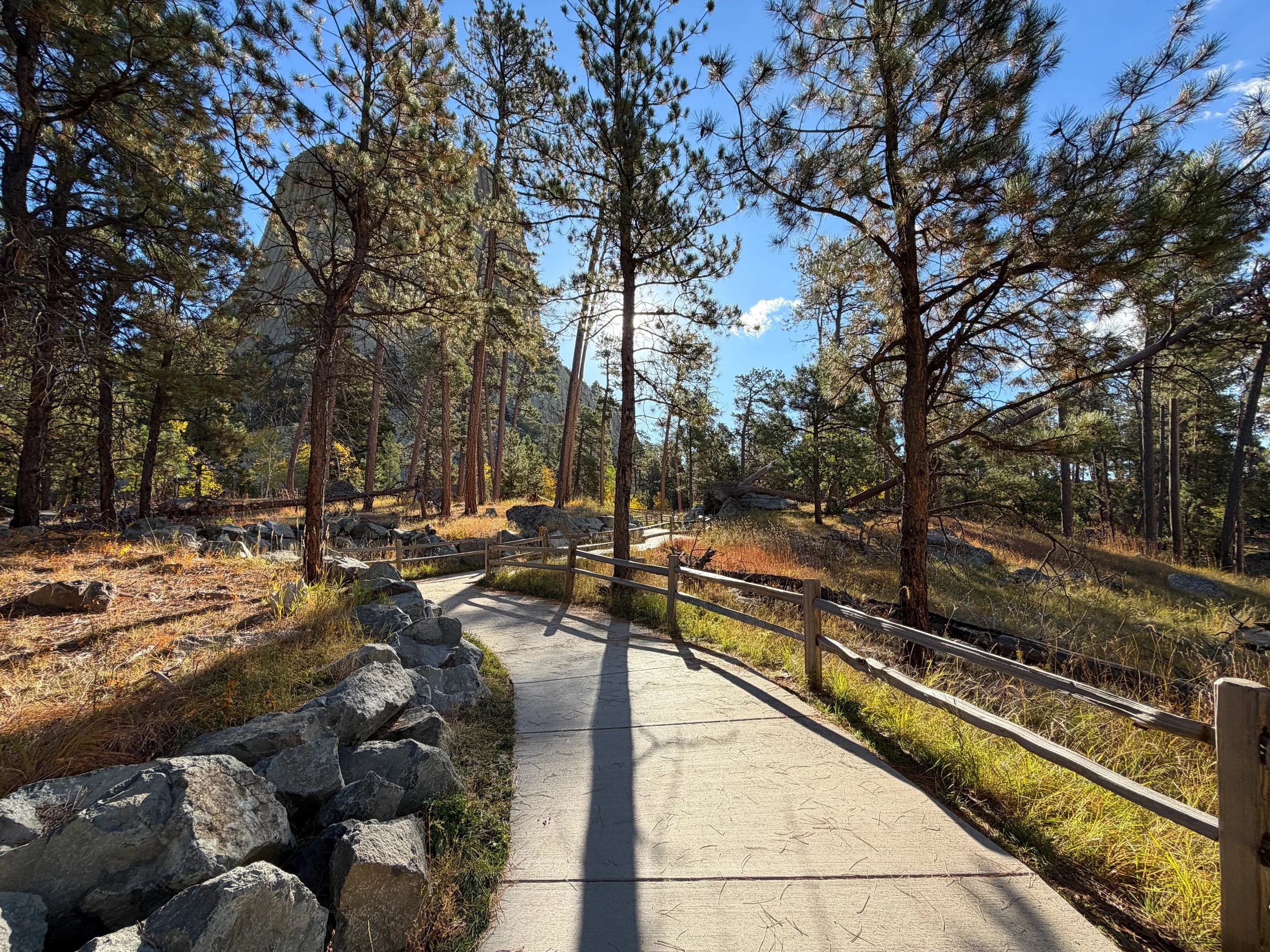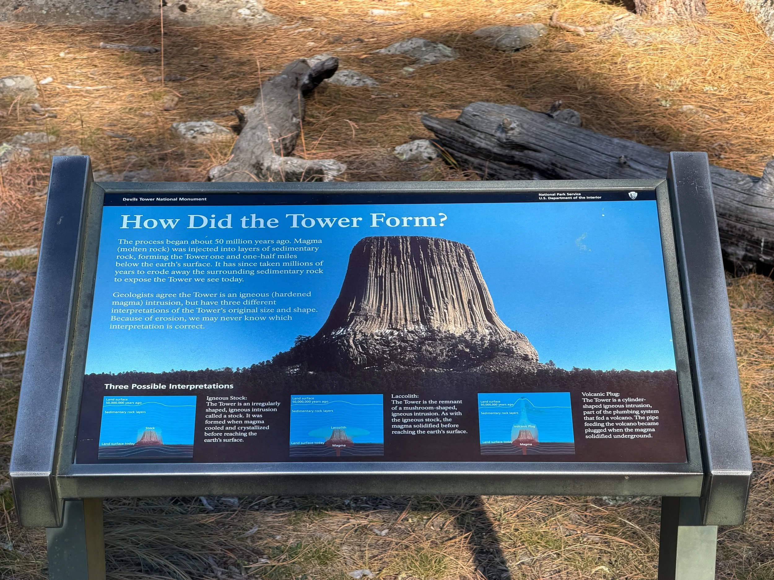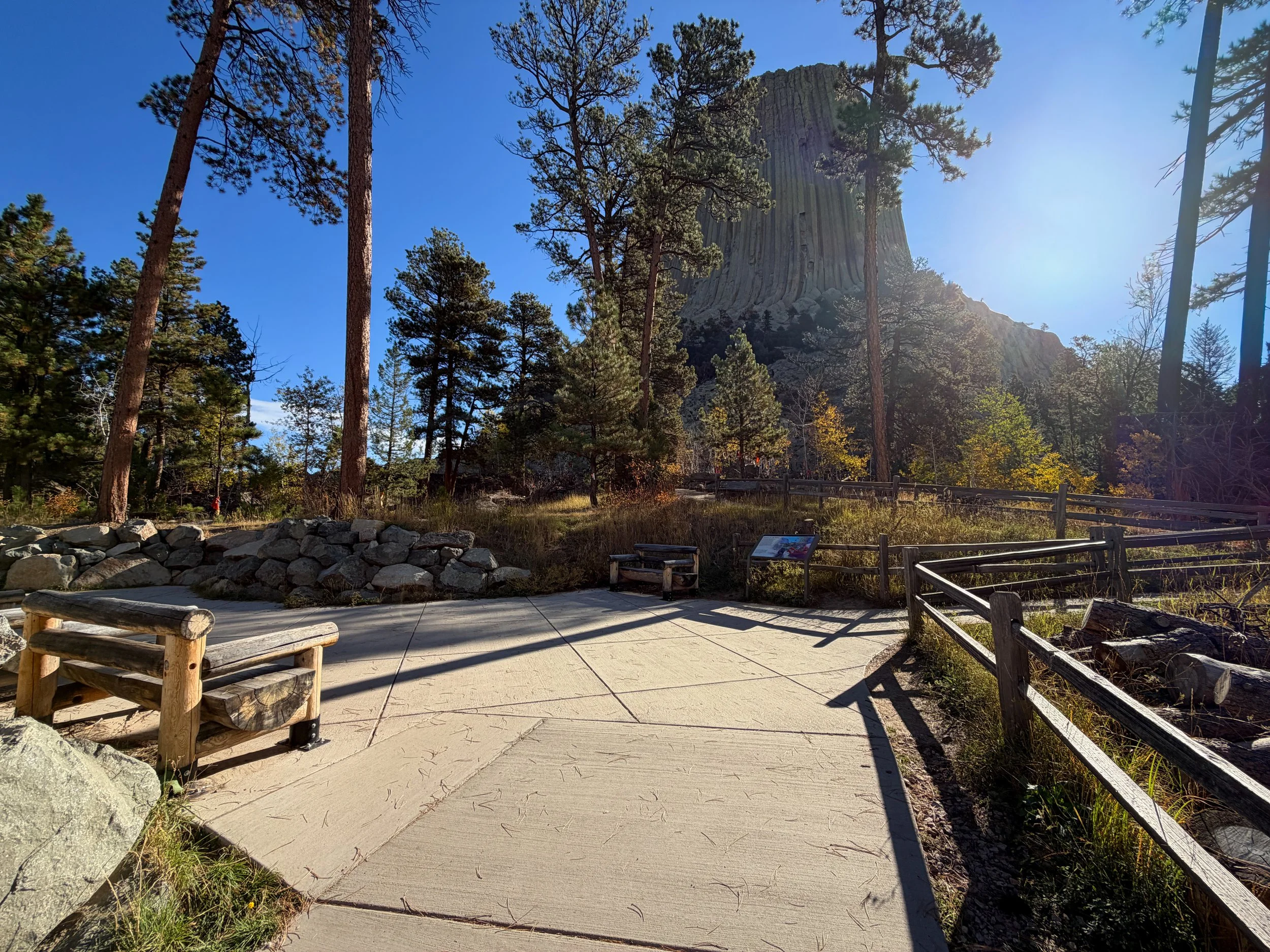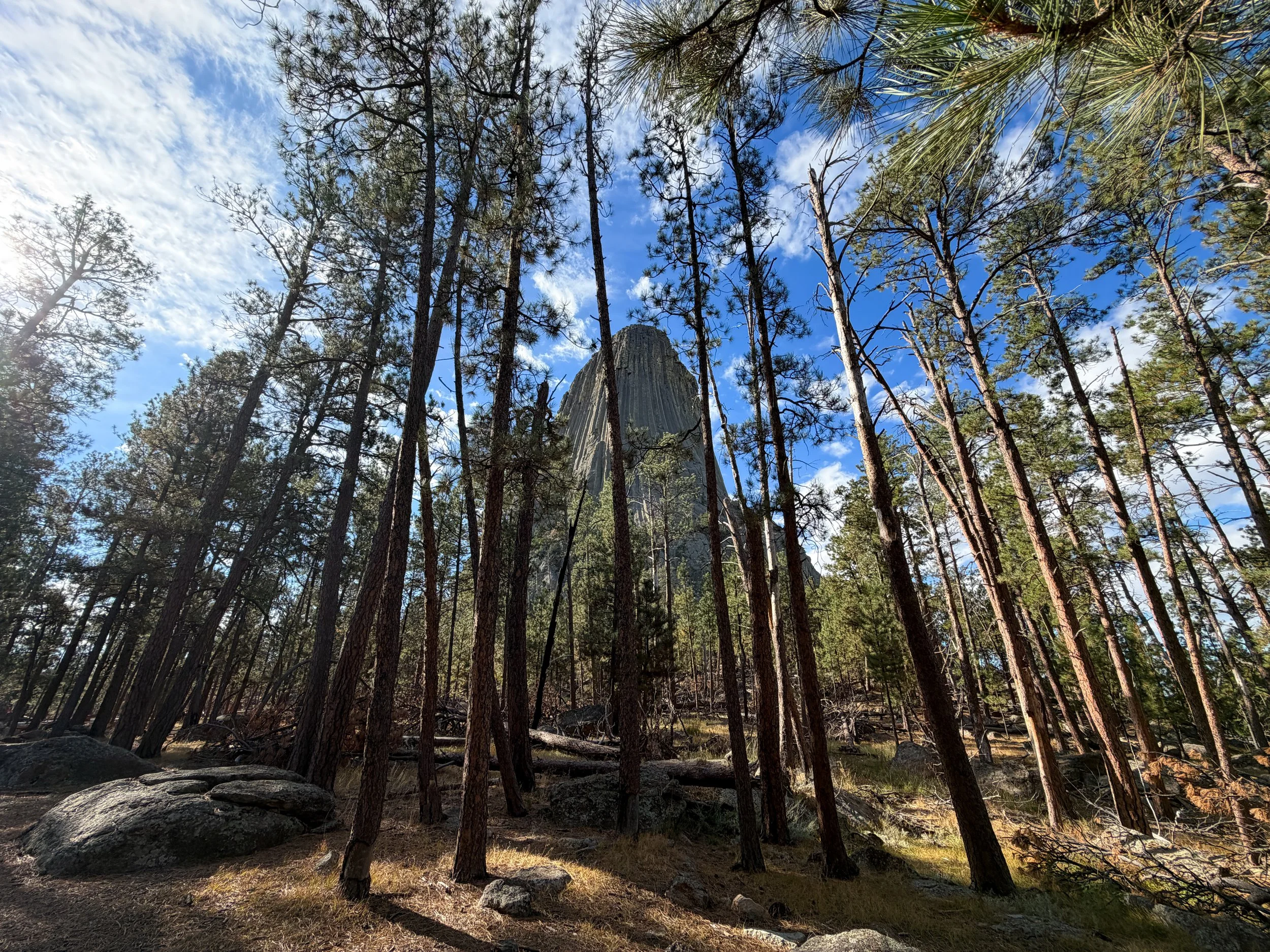 This first viewpoint on the northwest side of Devils Tower is the most open, as there are few trees blocking the views of the mountain in the distance!
