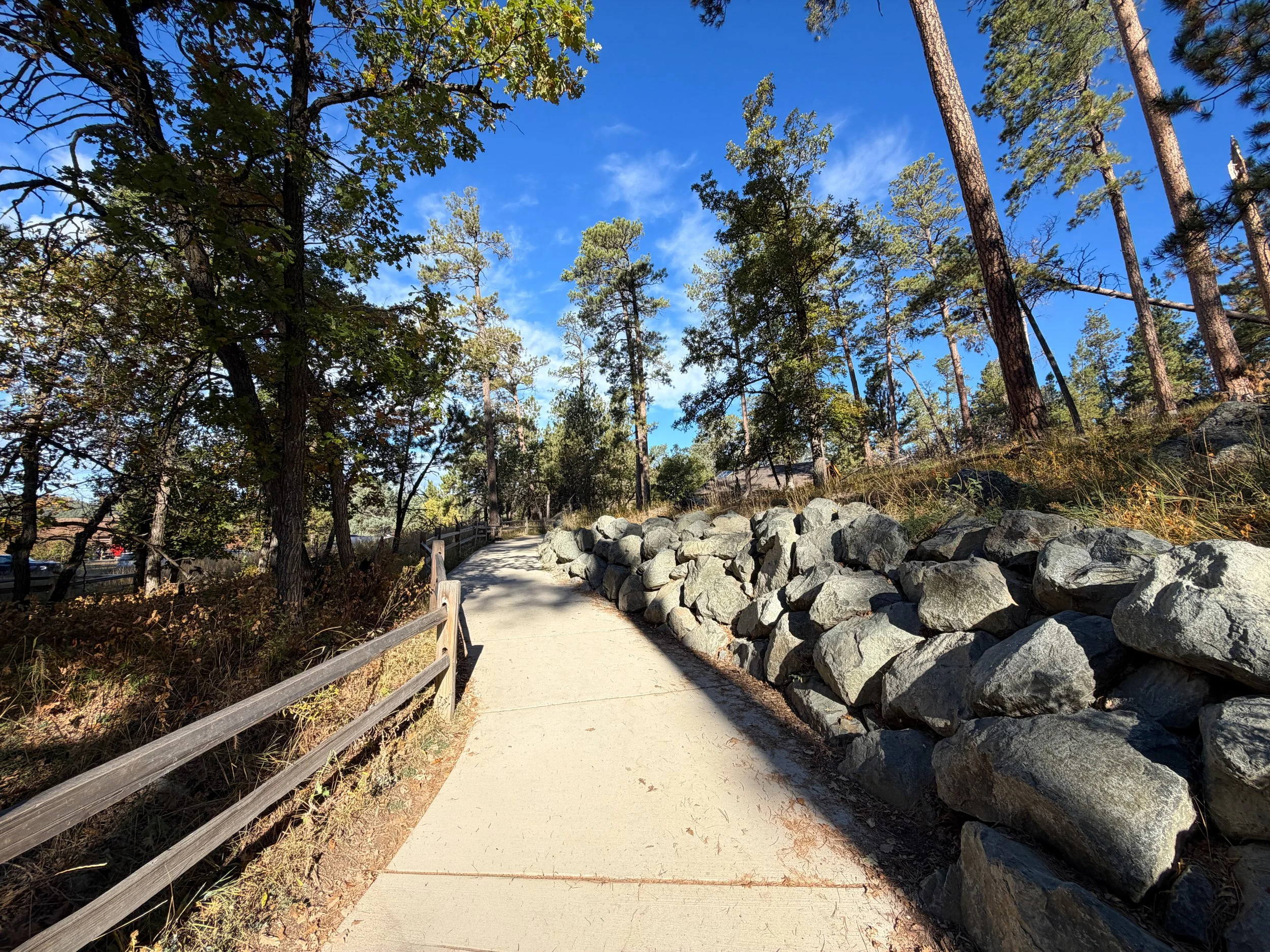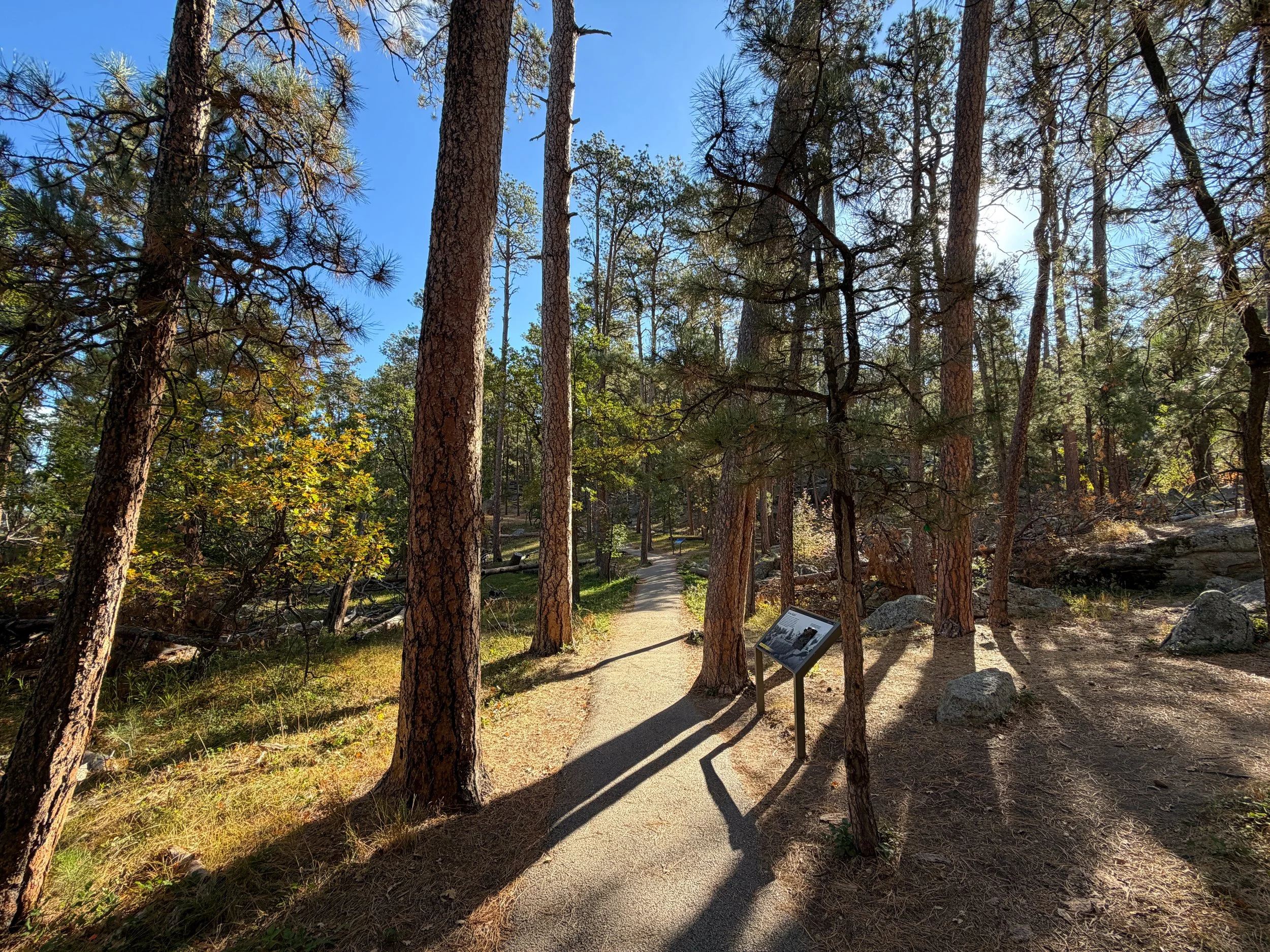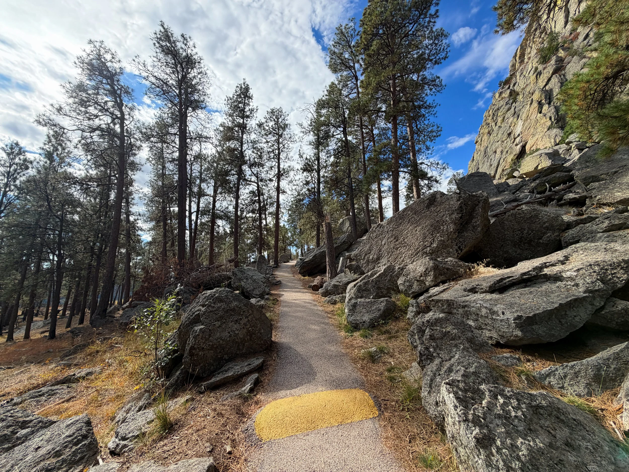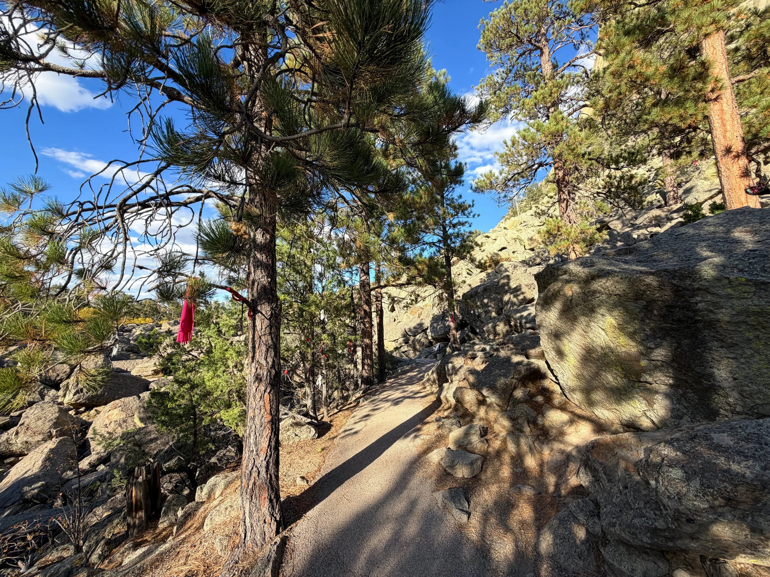 This is where I recommend slowing down to look for climbers in these first sections immediately following the prior two viewpoints, as there is a few good vantage points through the Ponderosa Pines to spot them high up the mountain!