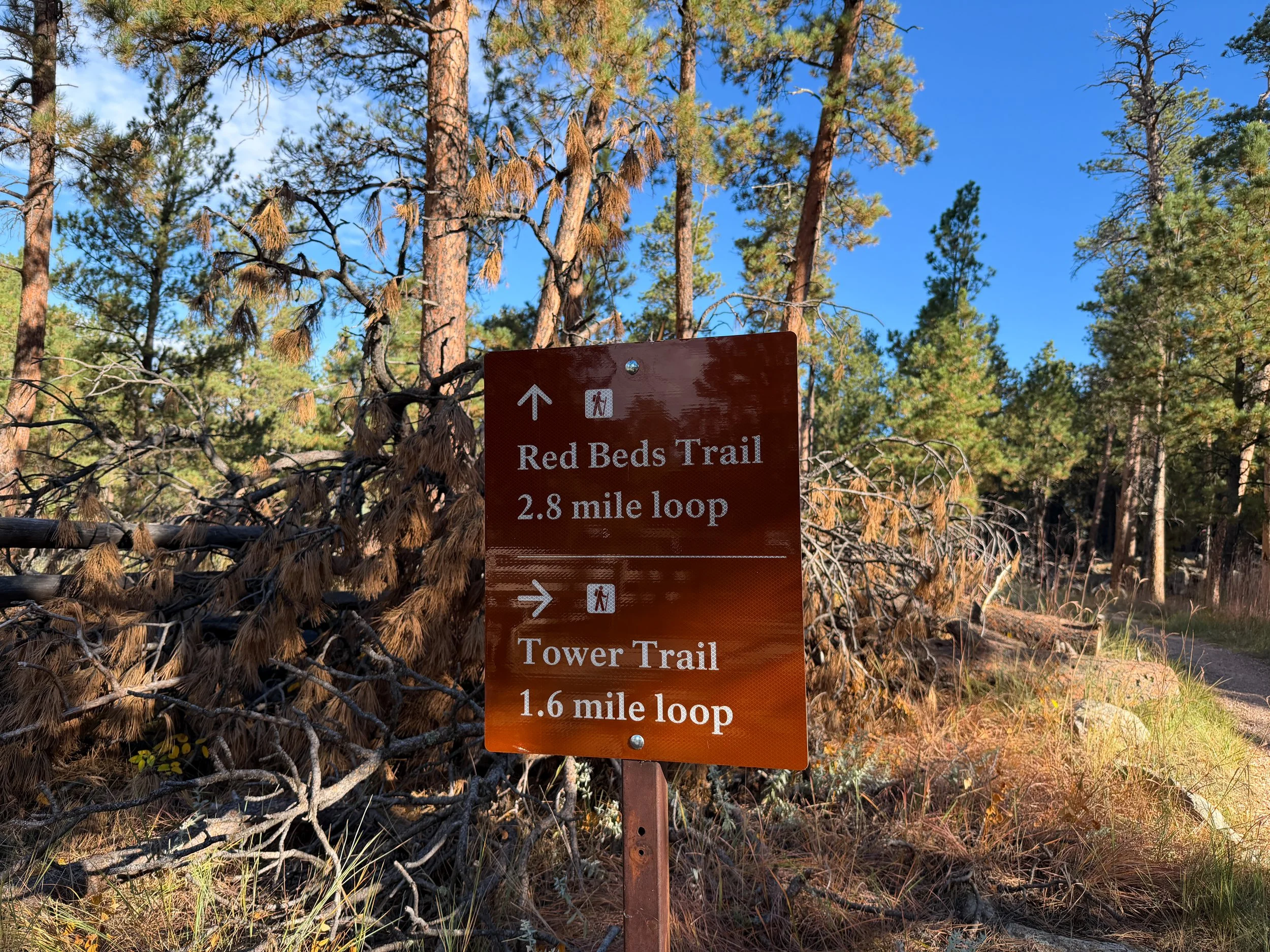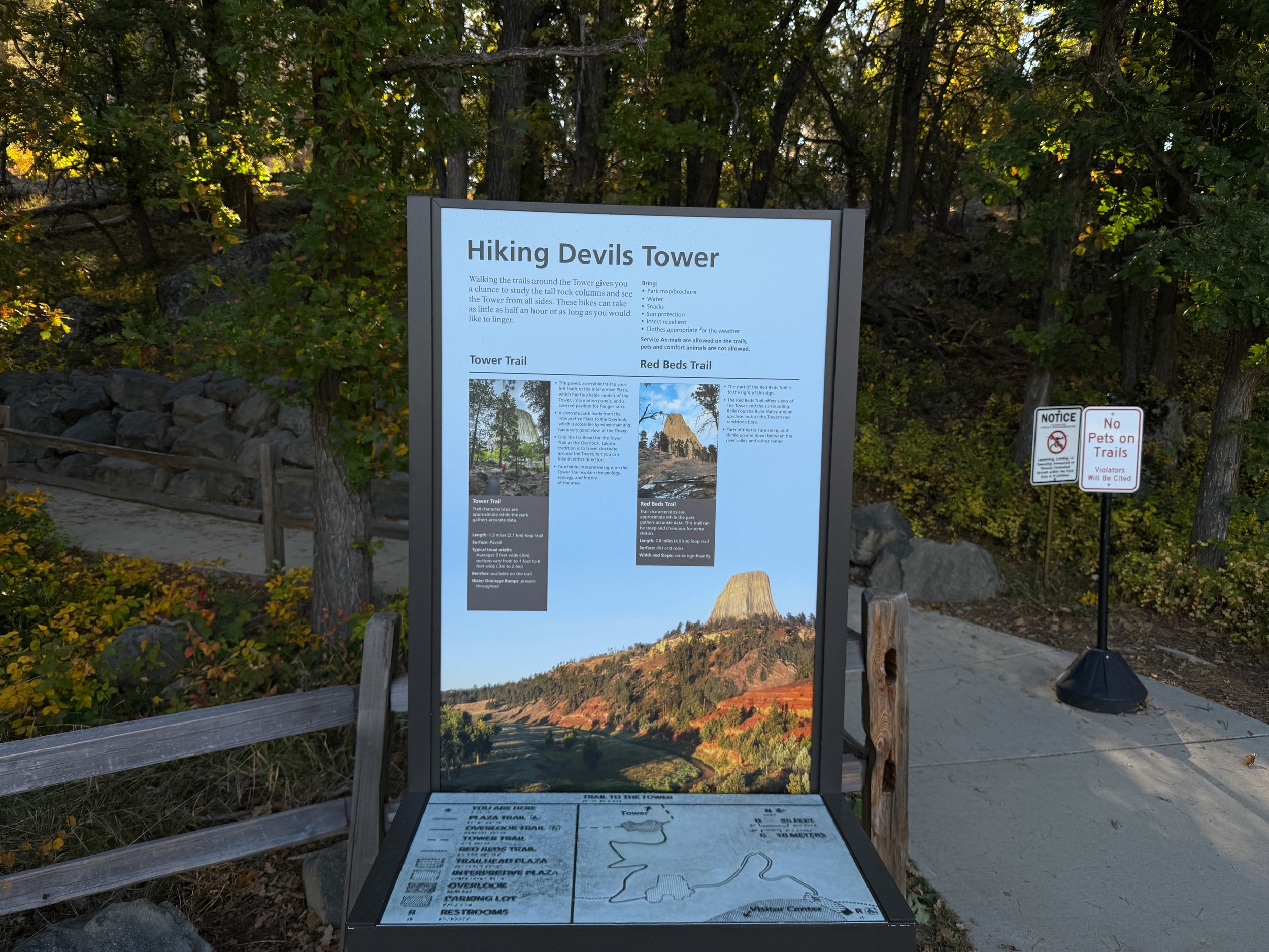 The Tower Trail begins adjacent to the Red Beds Trailhead, the slightly longer, less-trafficked loop around Devils Tower.