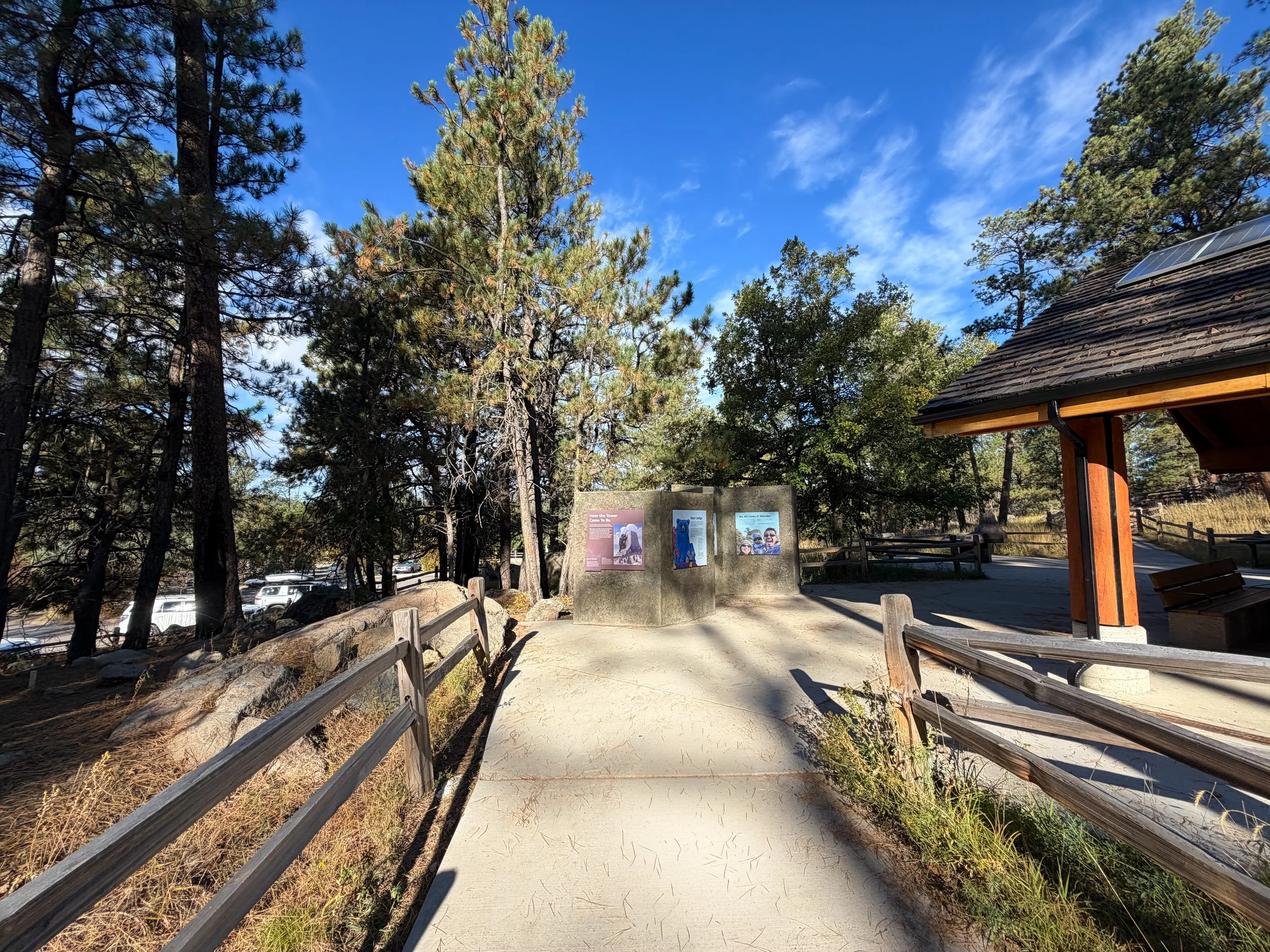Go straight past this pavilion to continue up to the start of the Devils Tower Loop.