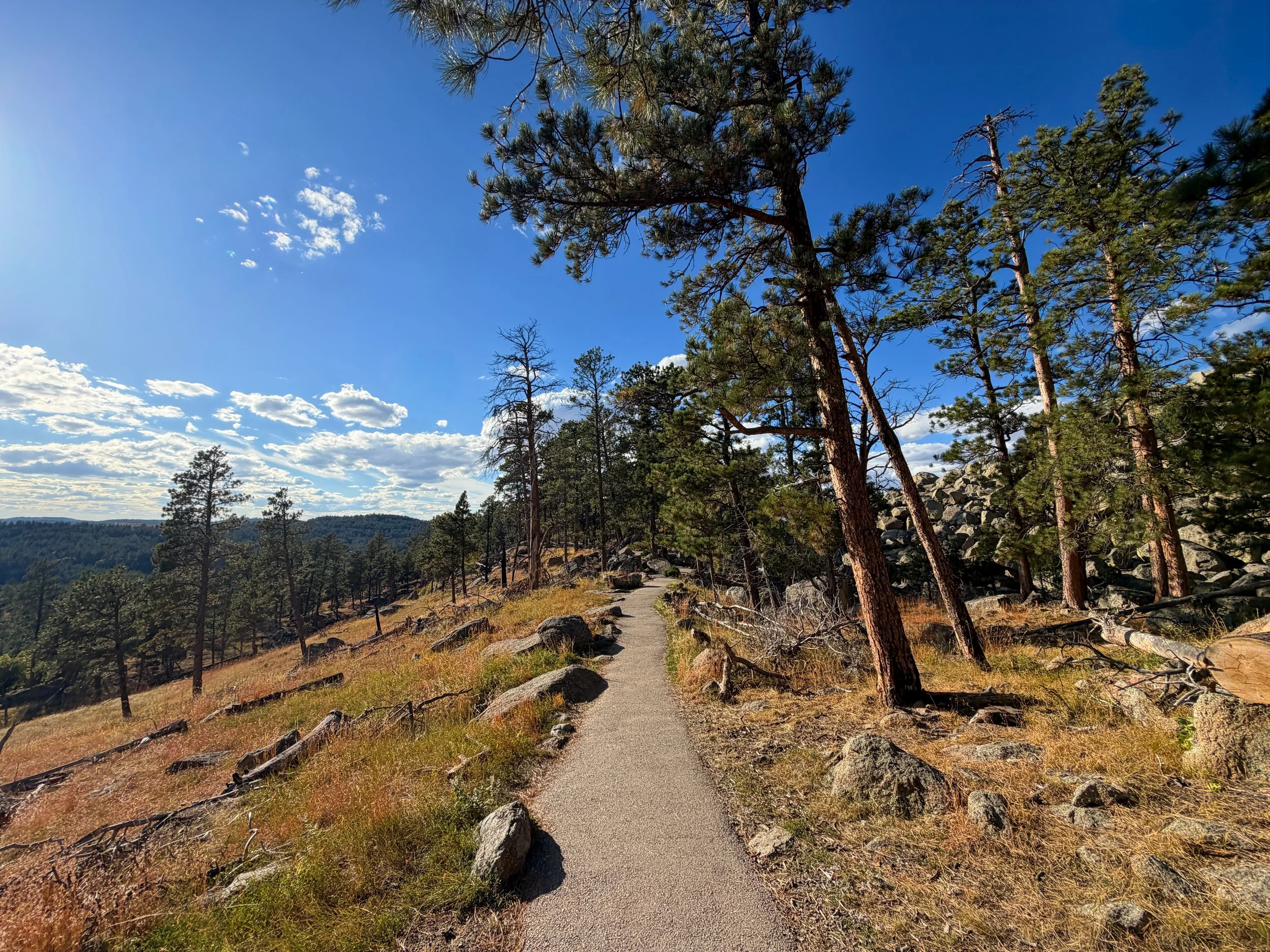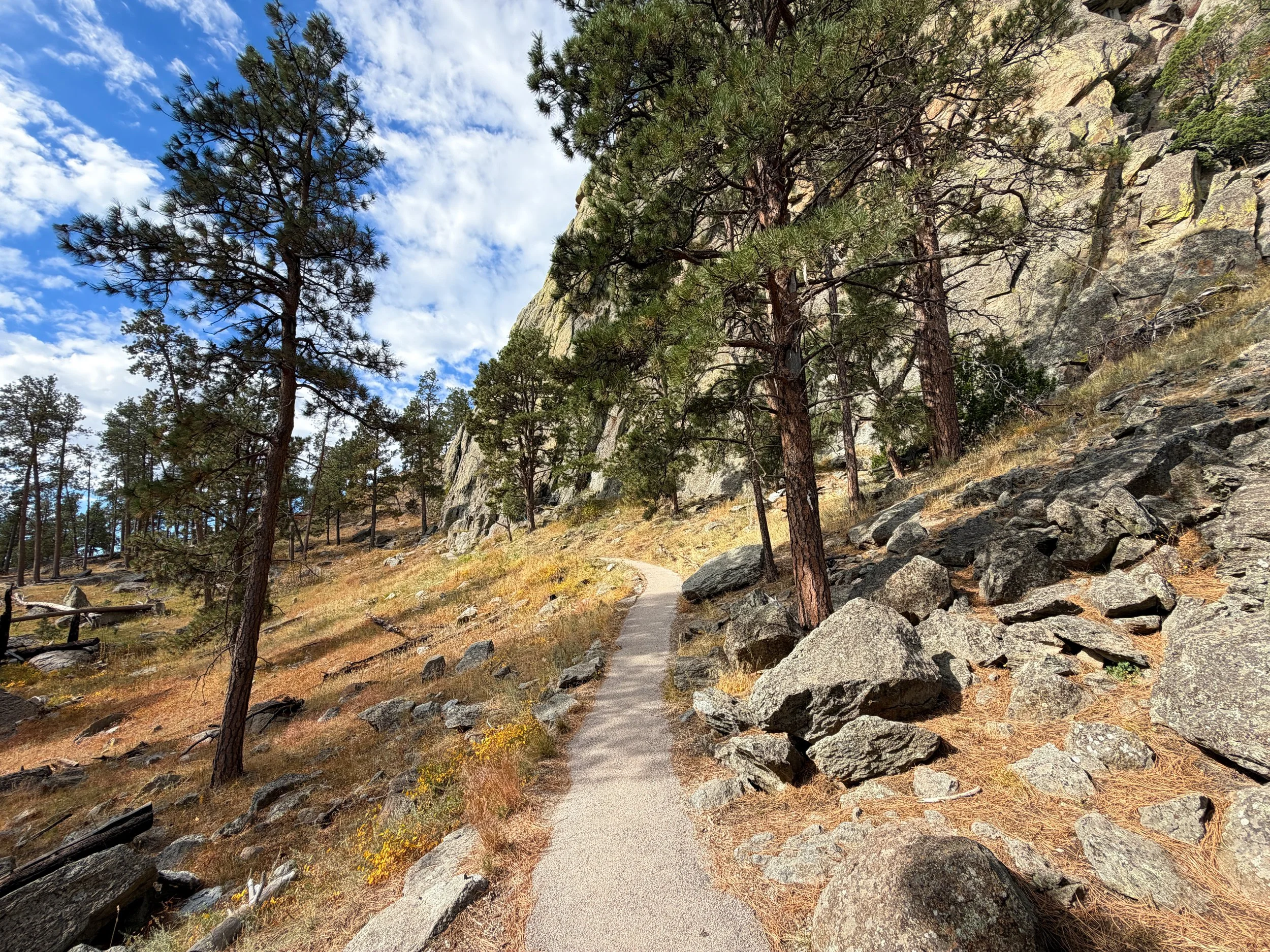 This short stretch along the southwest side of the loop is the closest the Tower Trail gets to Devils Tower, making it a great place to pause and look up at the mountain!